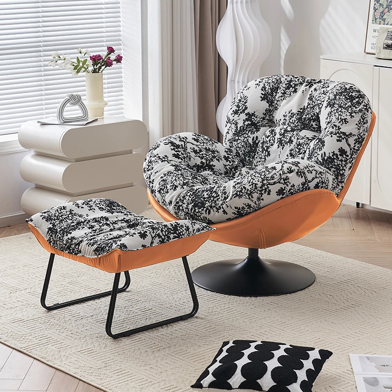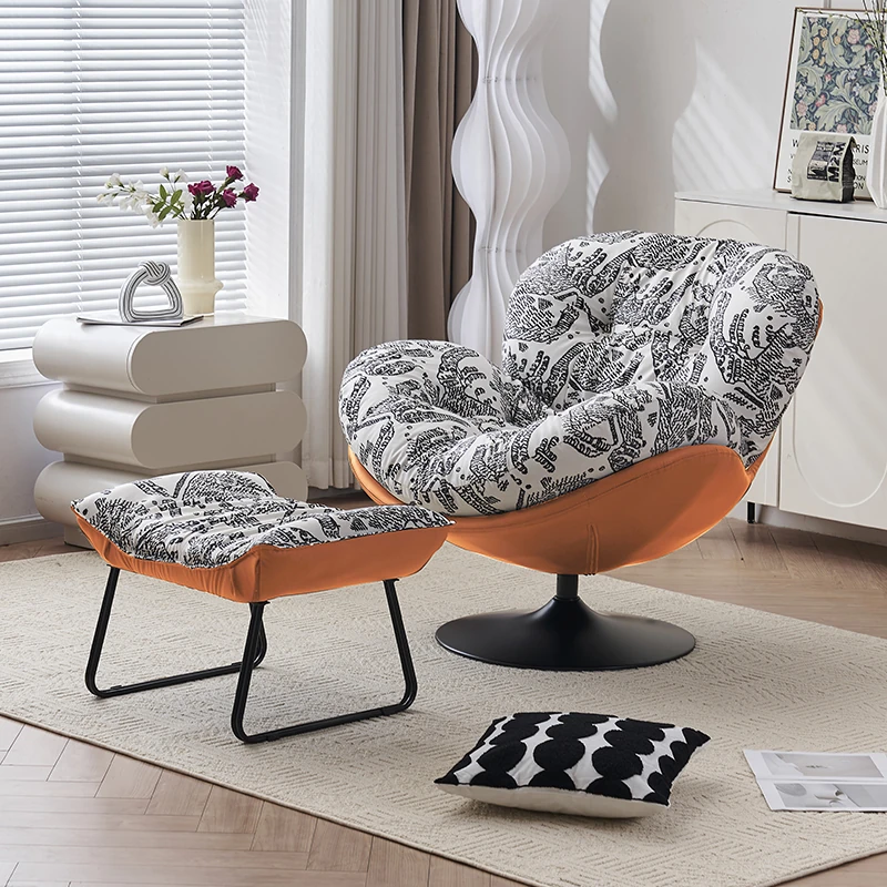 レトロなヒョウ柄布—オレンジの猫の爪皮【回転可能】+フットスツール