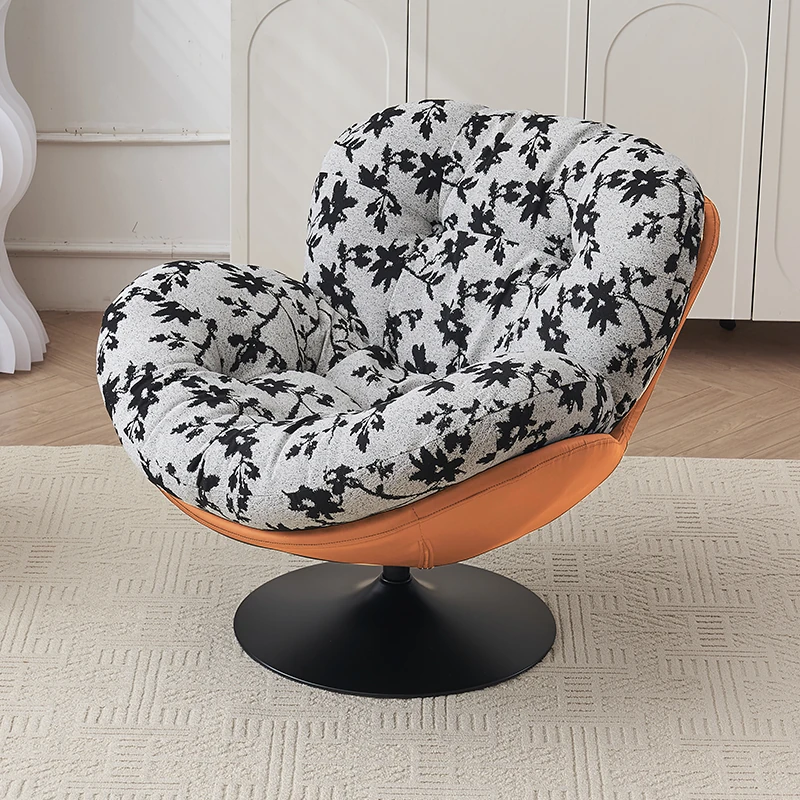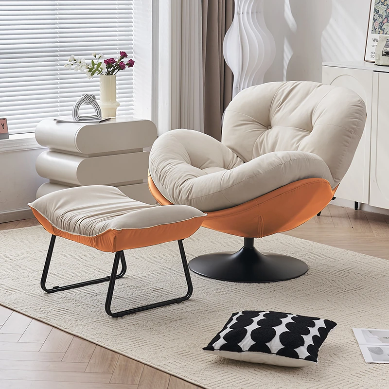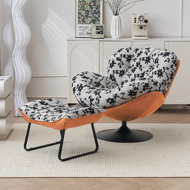 水墨の花枝—オレンジの猫の爪皮【回転可能】+フットスツール