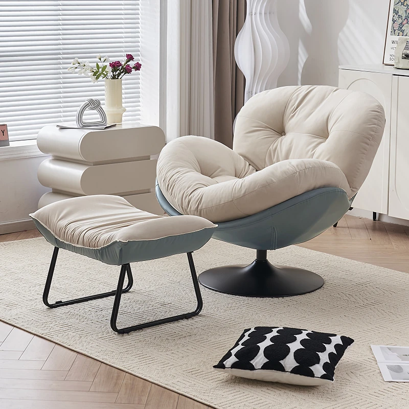 アイボリーのスエード—灰色の猫の爪皮【回転可能】+フットスツール