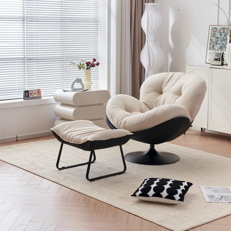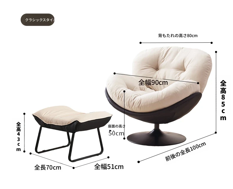 アイボリーのスエード—黒猫の爪皮【回転可能】+フットスツール