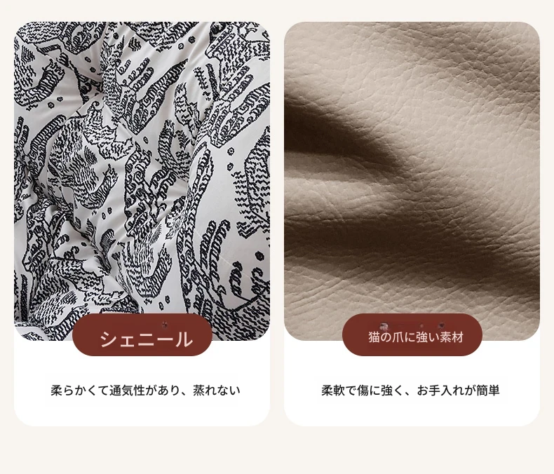 アイボリーのスエード—茶色の猫の爪皮のパッチワーク【回転可能】