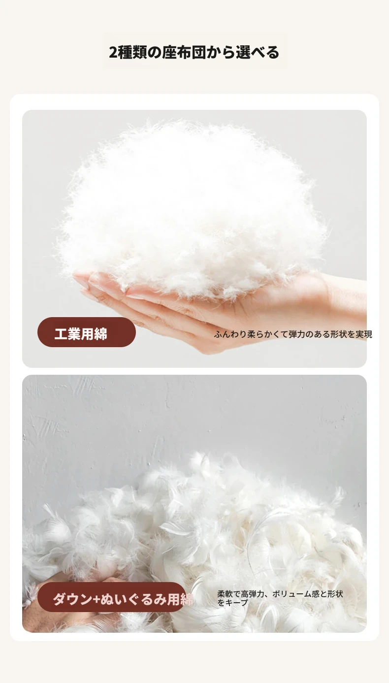 【ダウン+ぬいぐるみタイプ】アイボリーのスエード—黒猫の爪皮のパッチワーク【一人用+フットスツール】