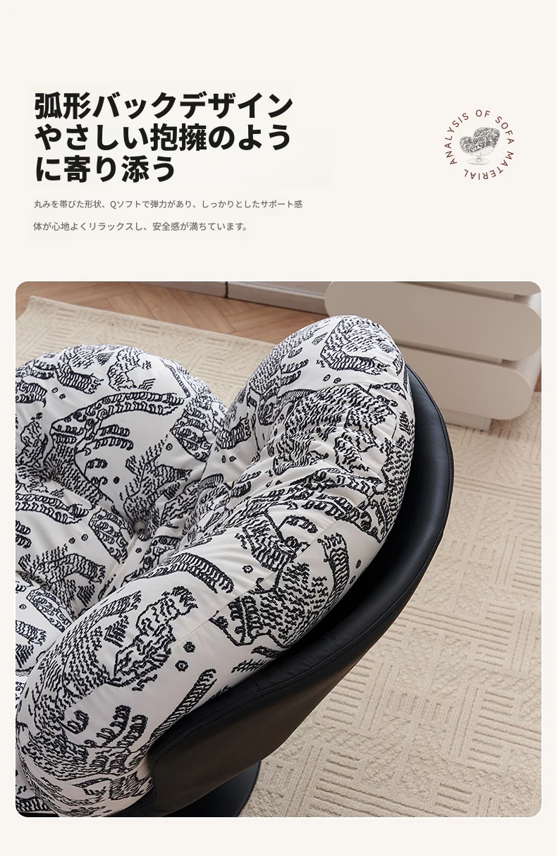 レトロなヒョウ柄布—黒猫の爪皮【回転可能】+フットスツール