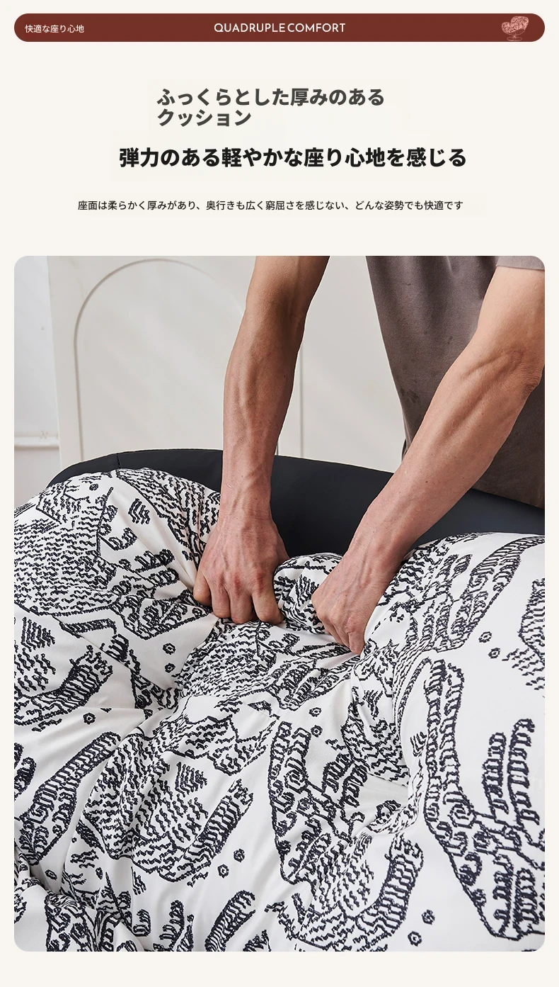 【ダウン+ぬいぐるみタイプ】水墨の花枝—黒猫の爪皮のパッチワーク【一人用+フットスツール】