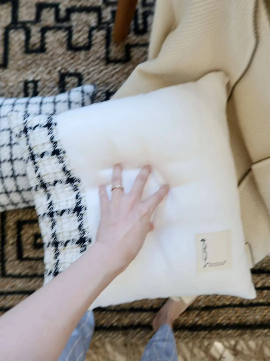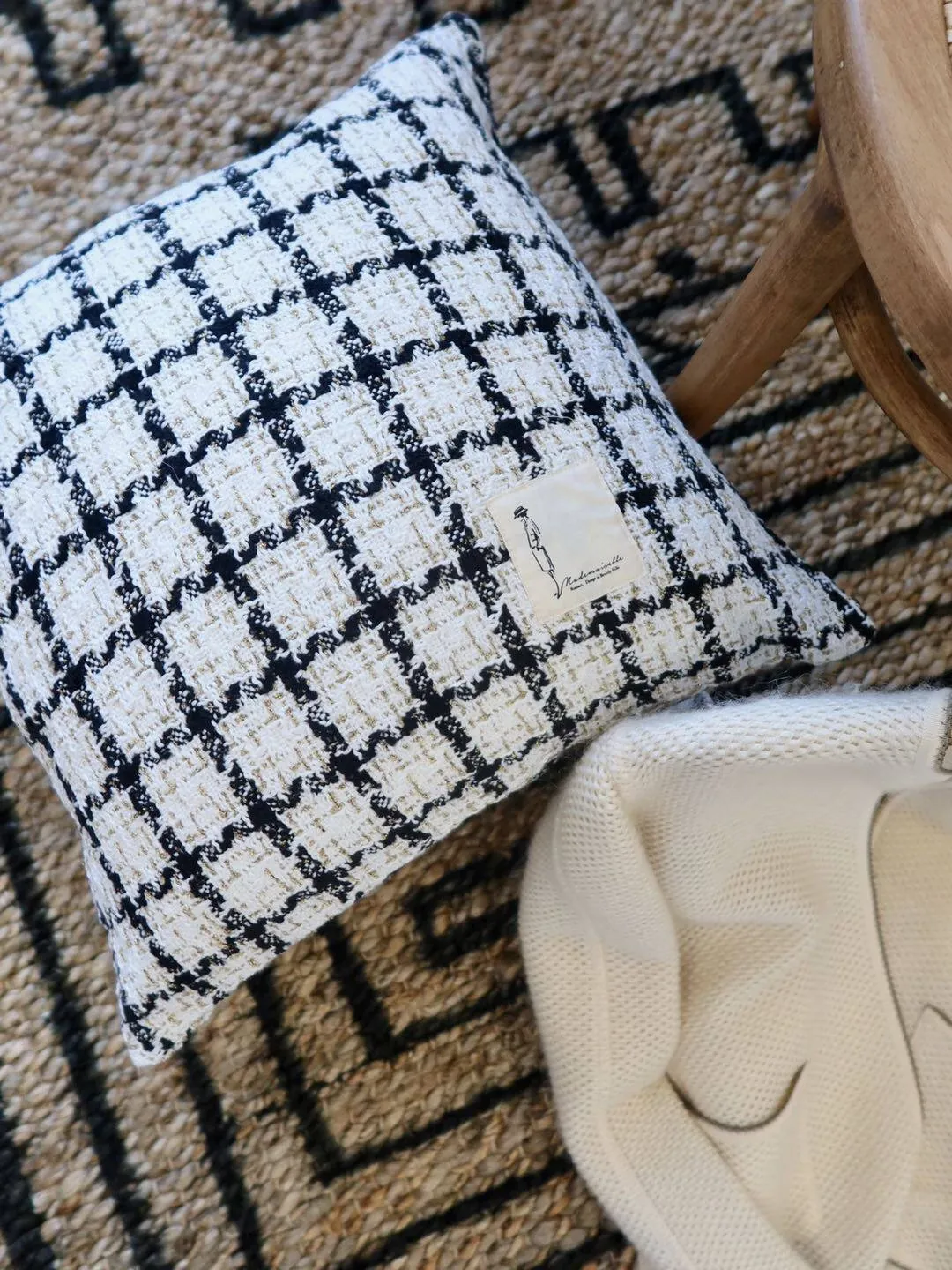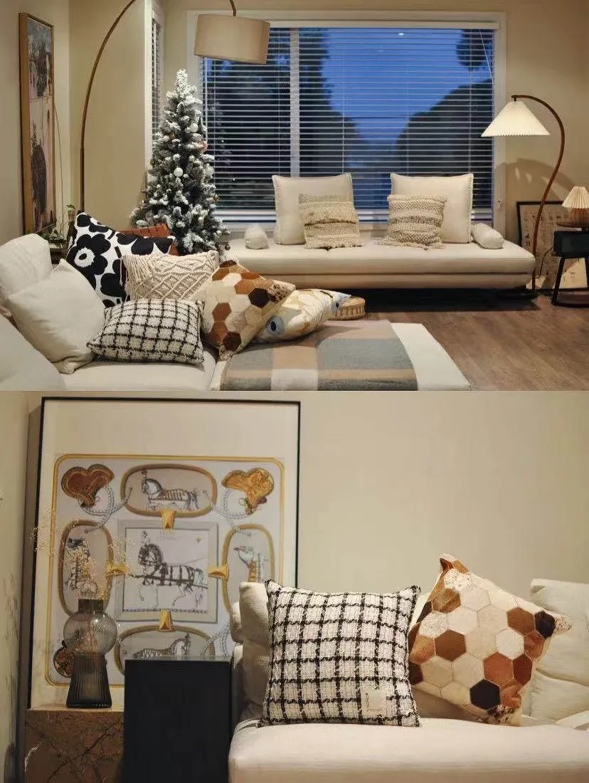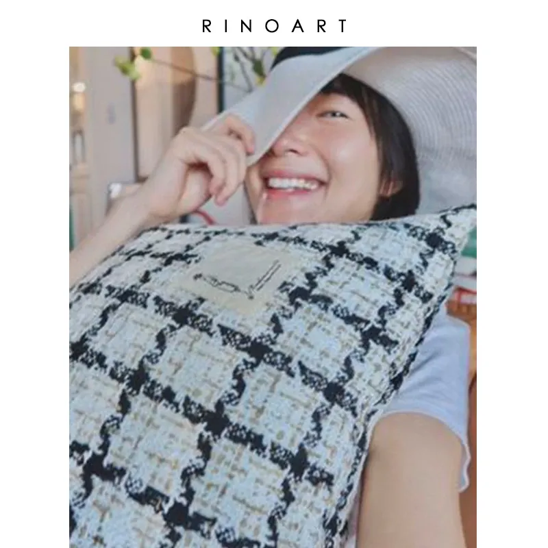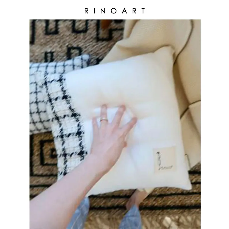 犀牛生活CocoCushion シンプルアート ブラック&ホワイト ウール編み ヨーロピアンスタイル クッション ソファ用 柔らかい抱き枕 で、リラックスした空間を演出!
