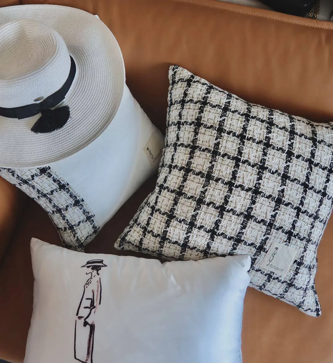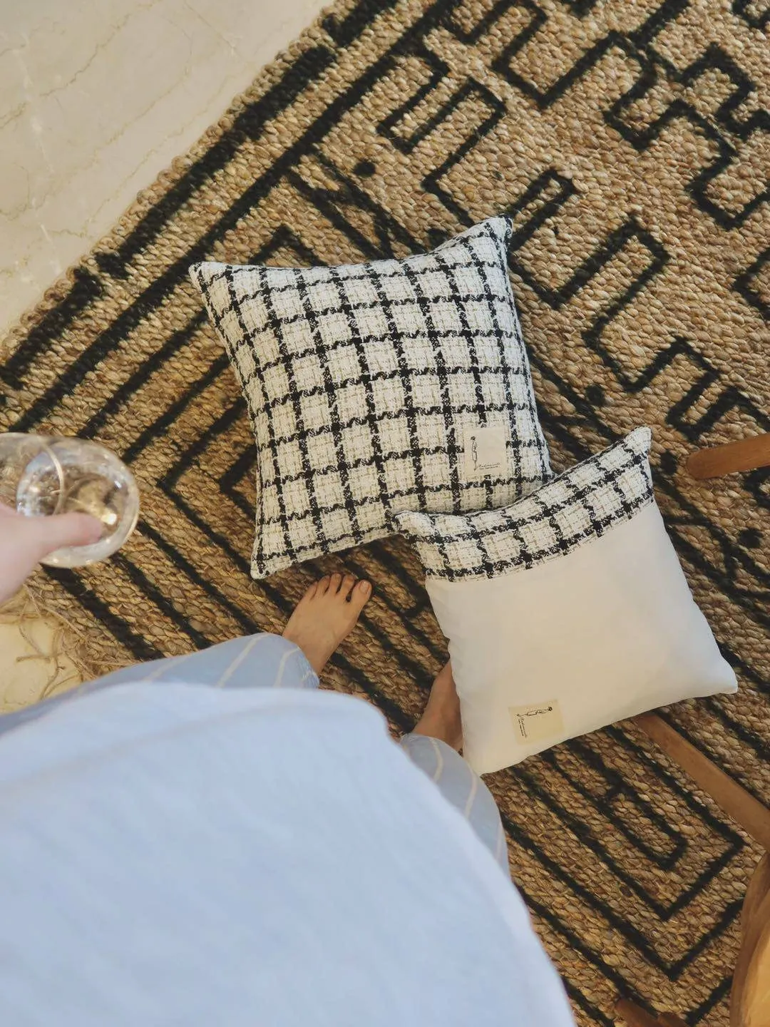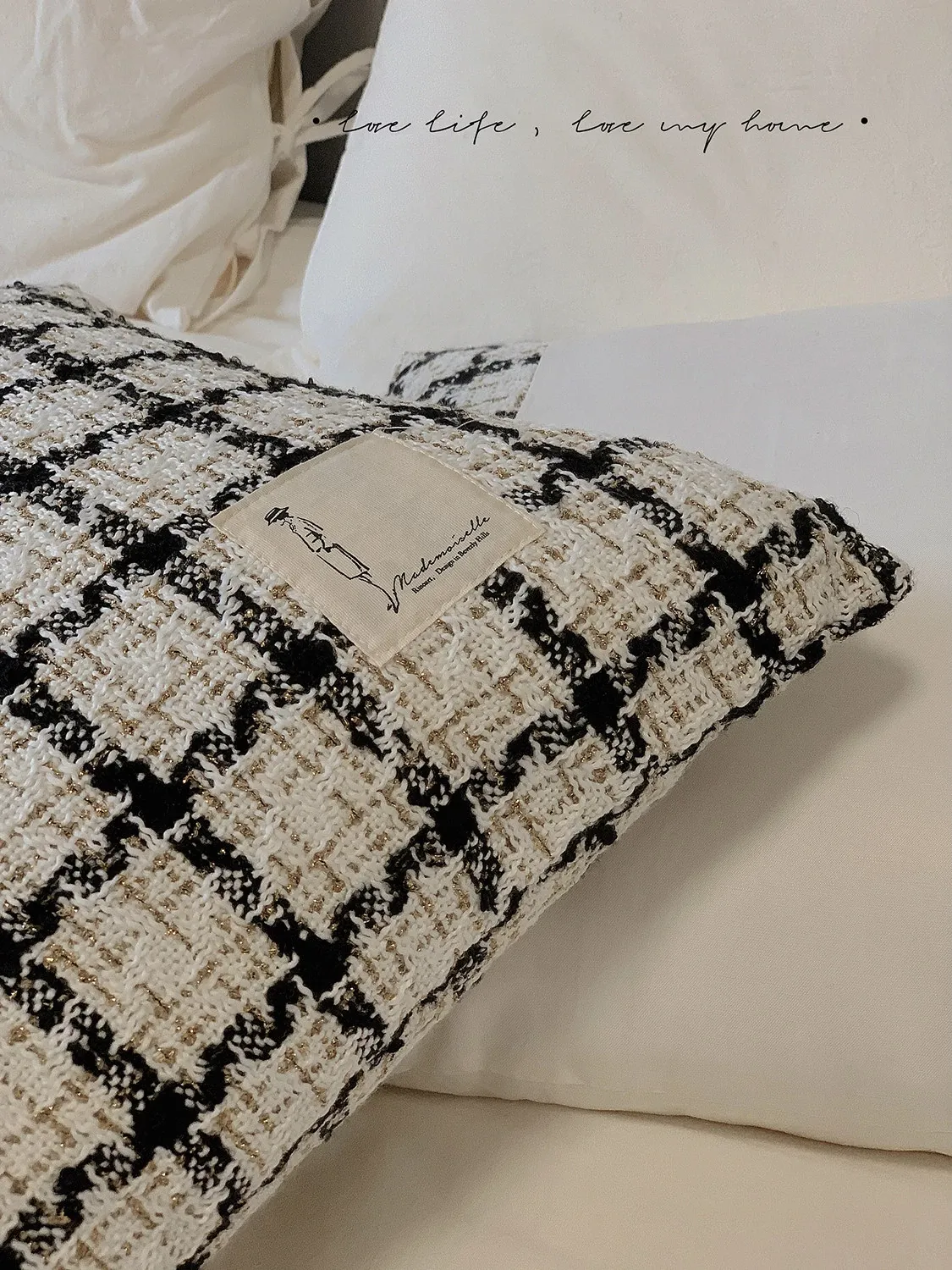 犀牛生活CocoCushion シンプルアート ブラック&ホワイト ウール編み ヨーロピアンスタイル クッション ソファ用 柔らかい抱き枕 で、リラックスした空間を演出!