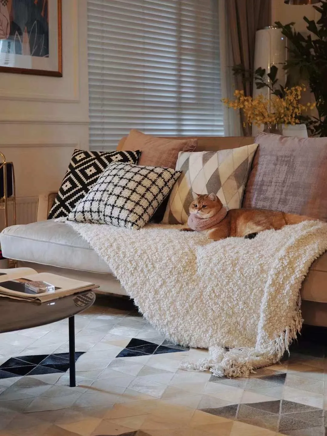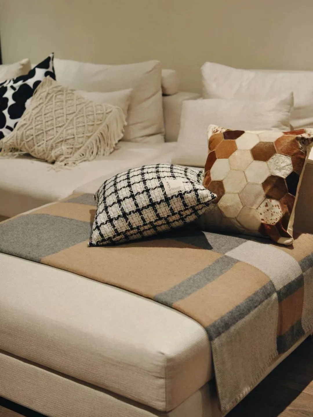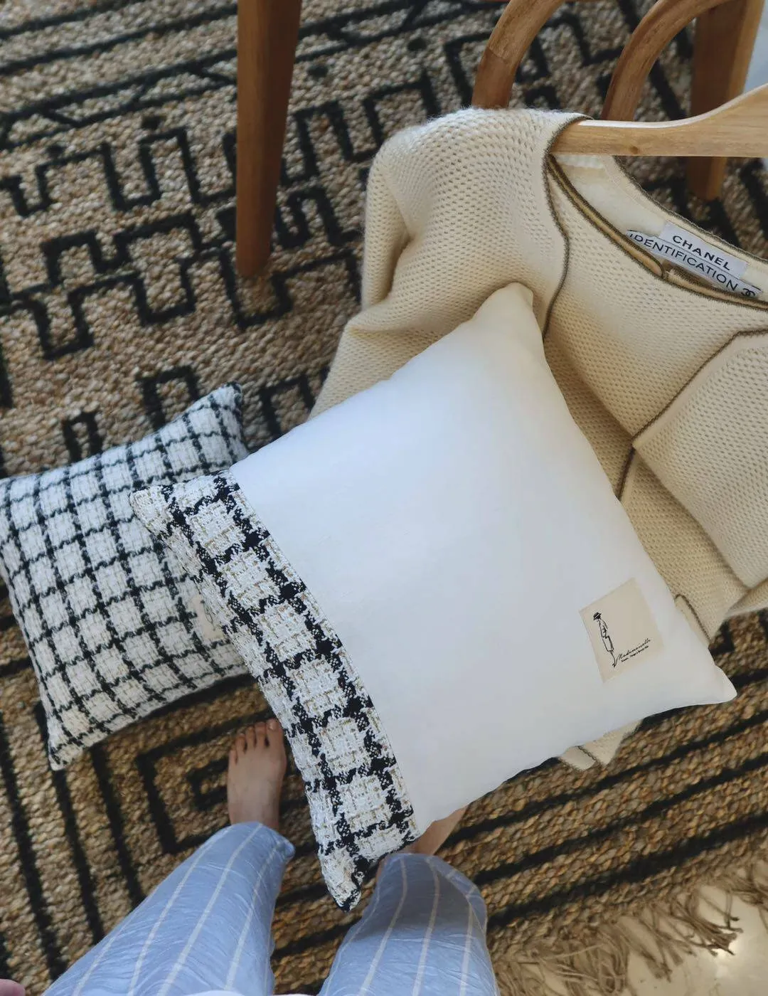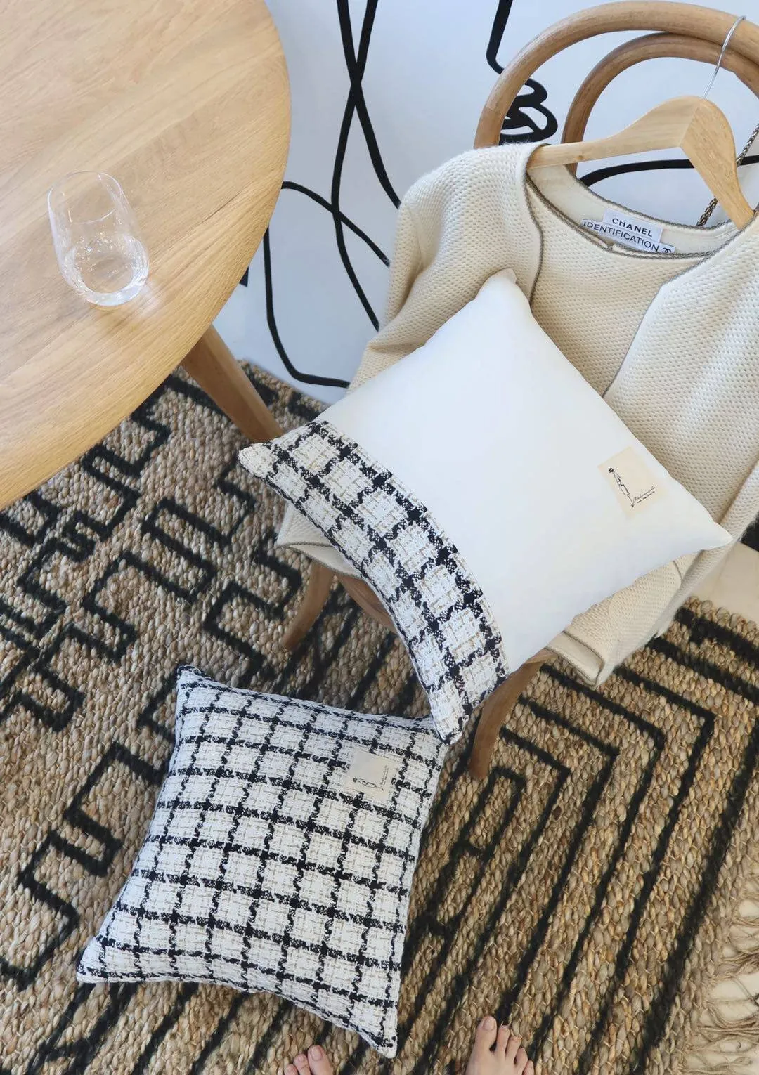 犀牛生活CocoCushion シンプルアート ブラック&ホワイト ウール編み ヨーロピアンスタイル クッション ソファ用 柔らかい抱き枕 で、リラックスした空間を演出!