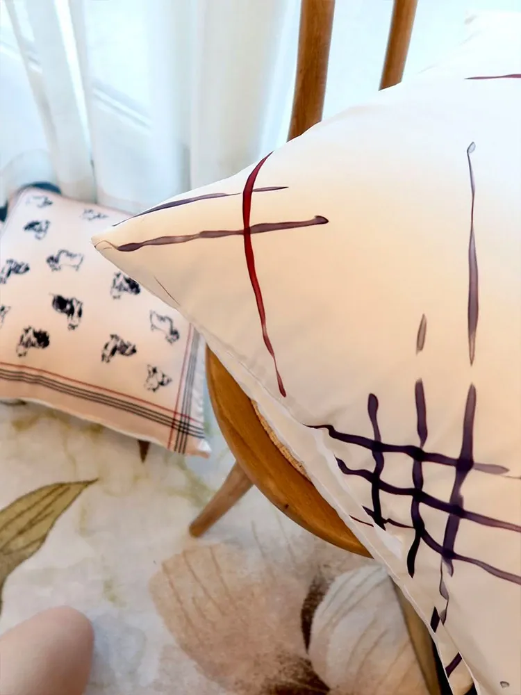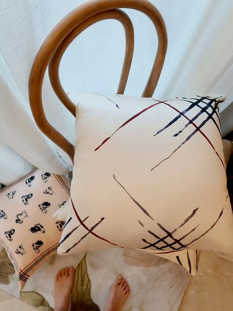 北欧スタイルのシンプル手描きデザイン!シルクのような肌触りのクッション、リビングやソファにぴったりな背当てクッション付き。おしゃれな空間を演出しましょう!