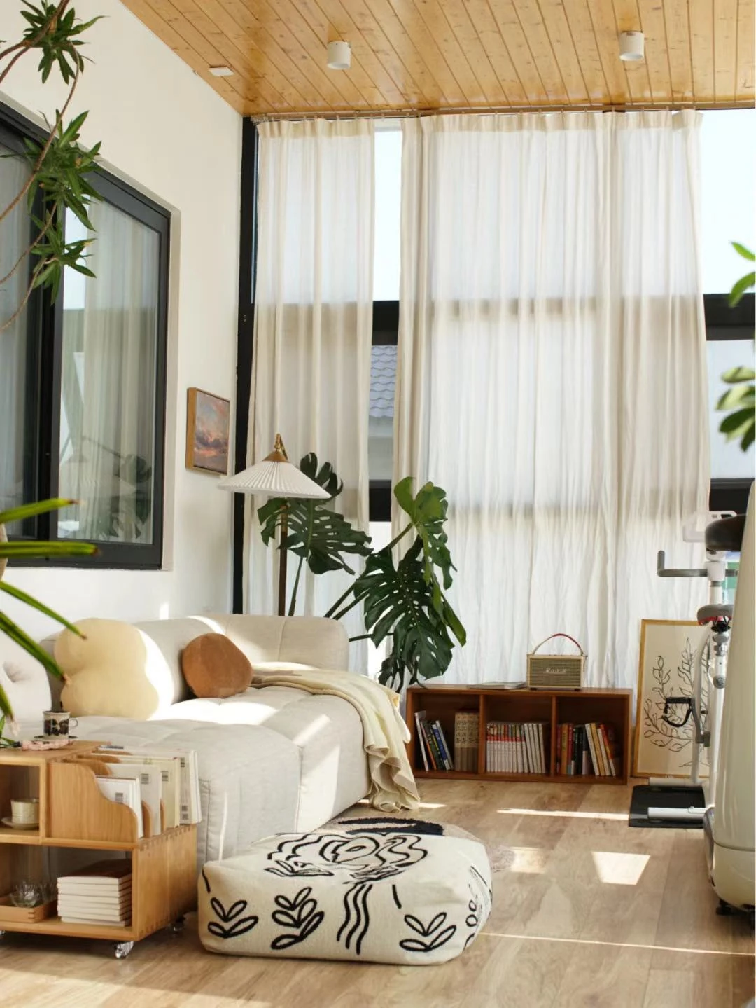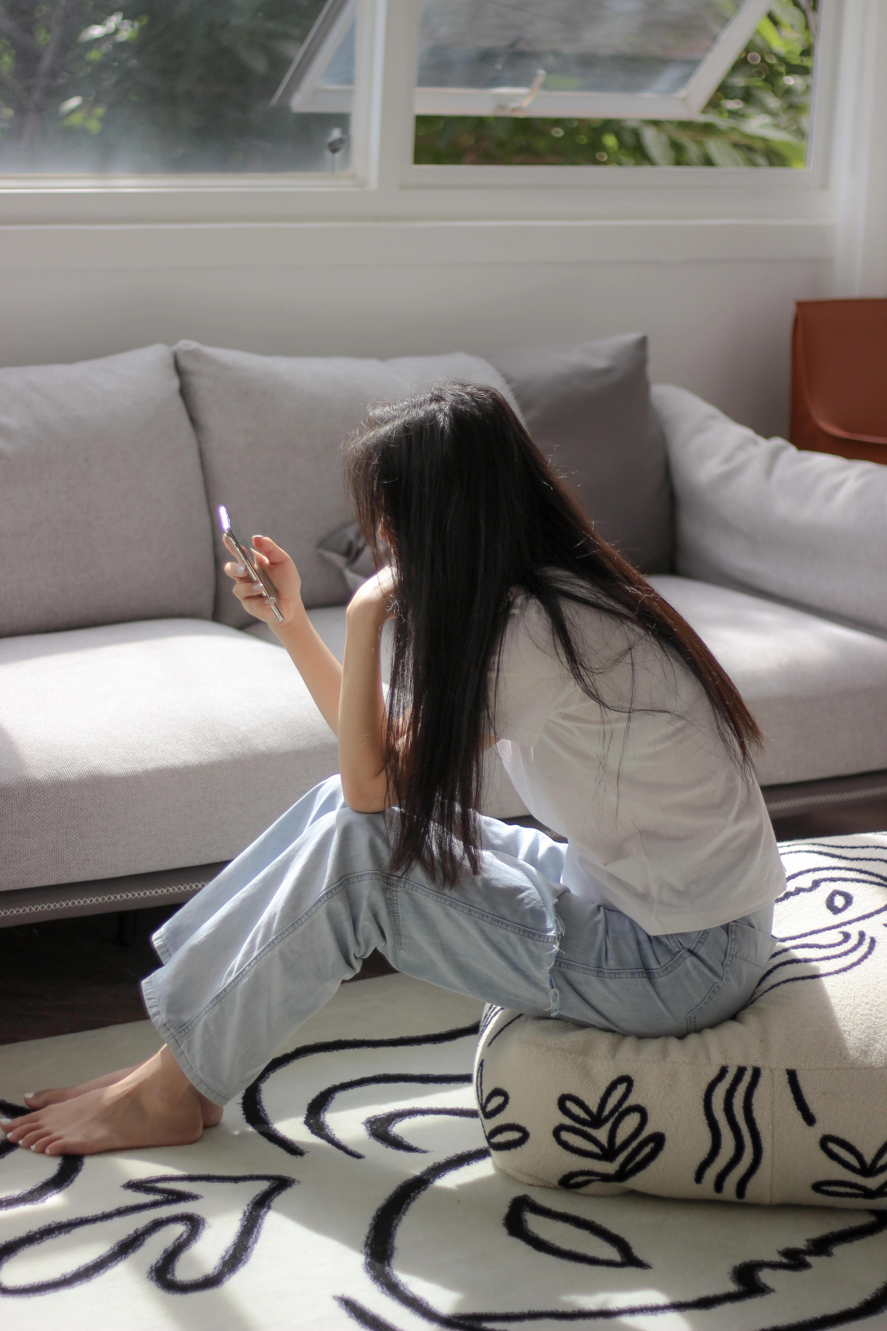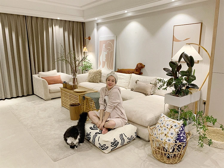 クリームカラーの一人用リラックスソファチェア|家庭用ソフトパックスツール|コンパクトなくつろぎ用低椅子|ネイルチェアにも最適!あなたのくつろぎ空間を演出します。