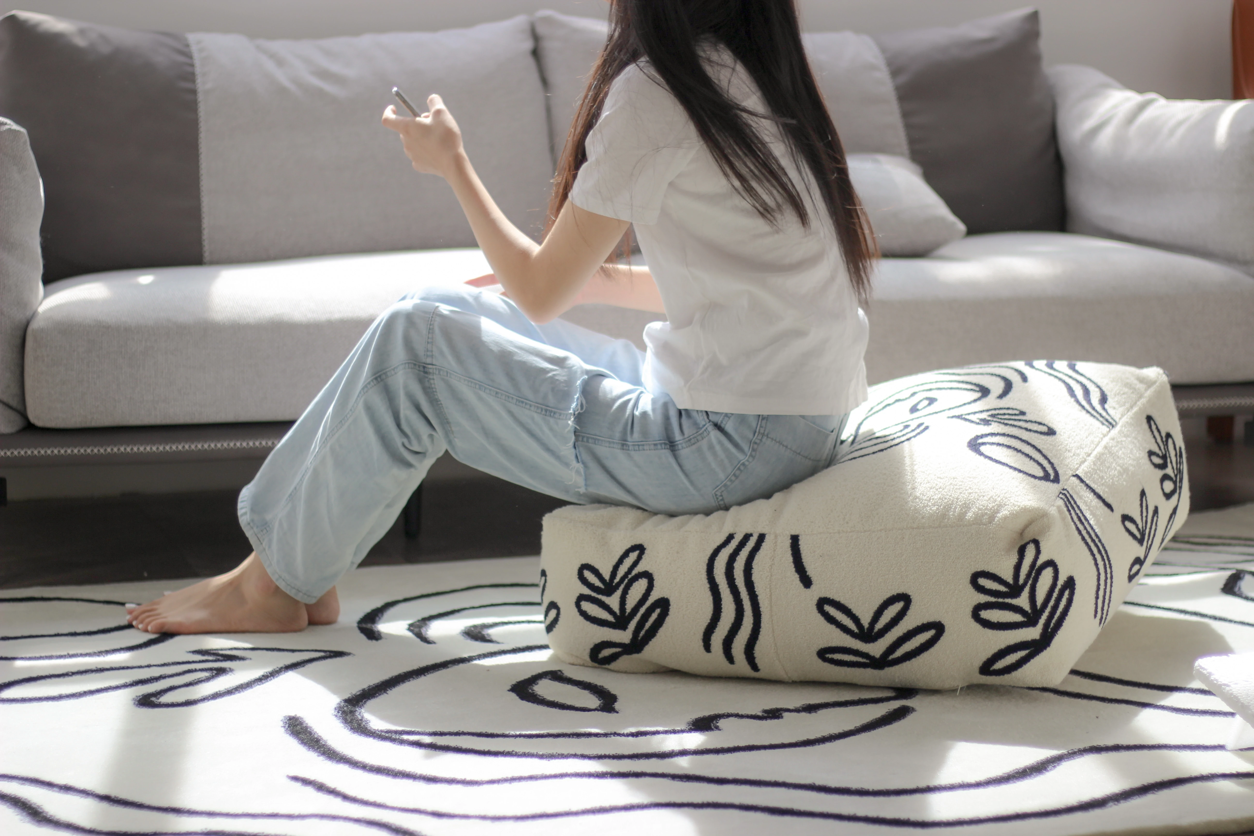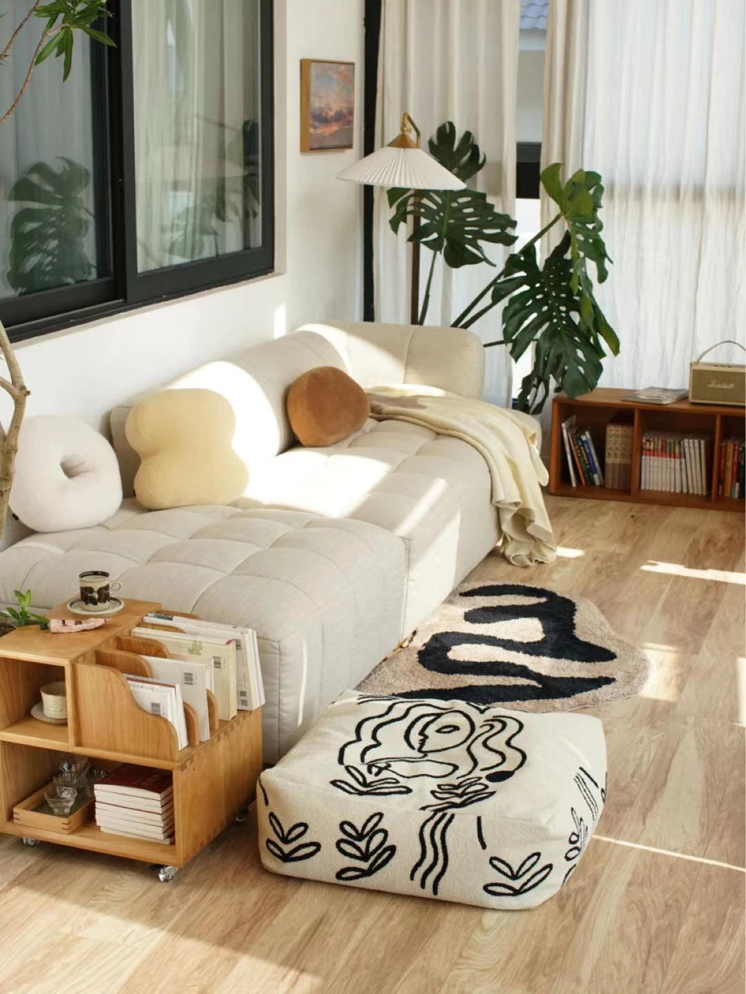 ライノライフ ピカソ風 おしゃれなファブリック製のリラックスソファ スタイリッシュなデザインで洗える家用スツール くつろぎのひと時に最適!