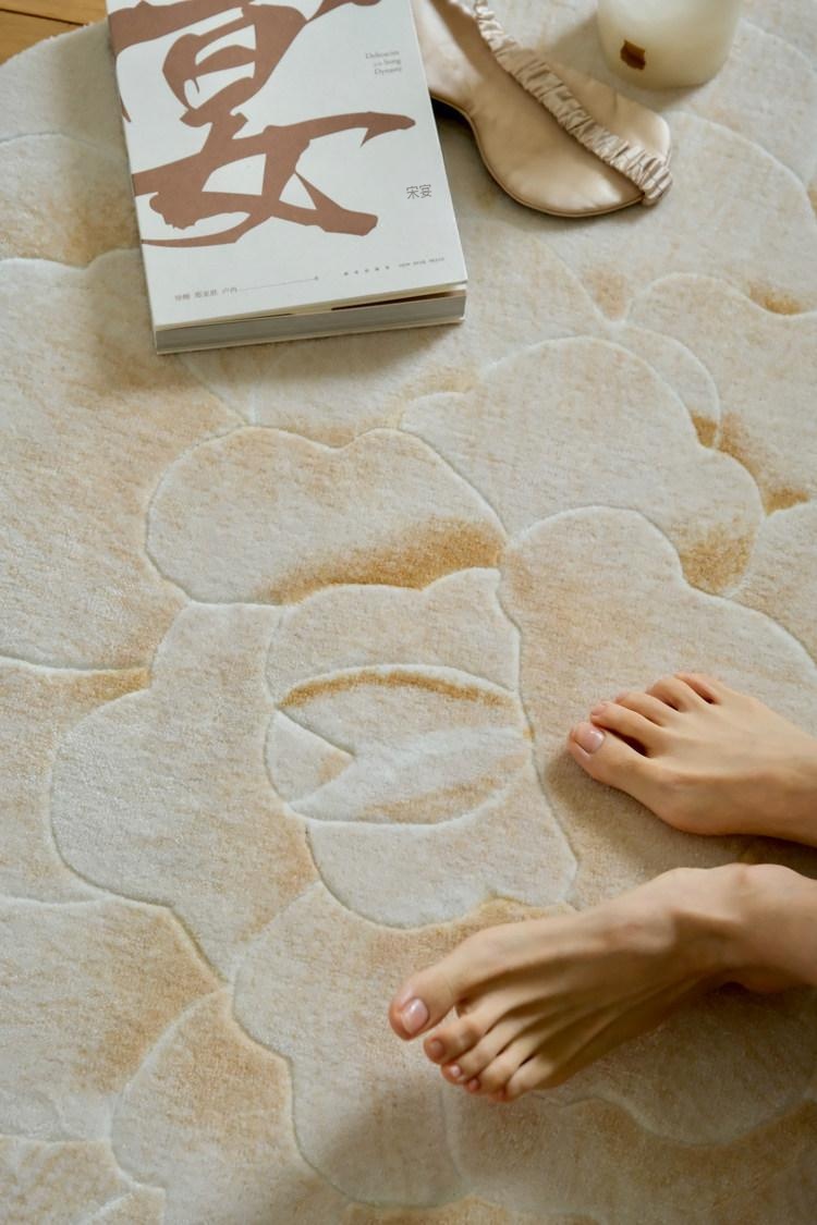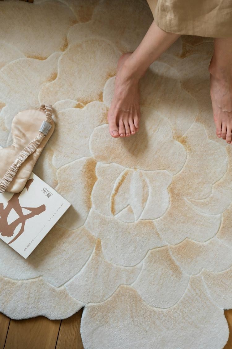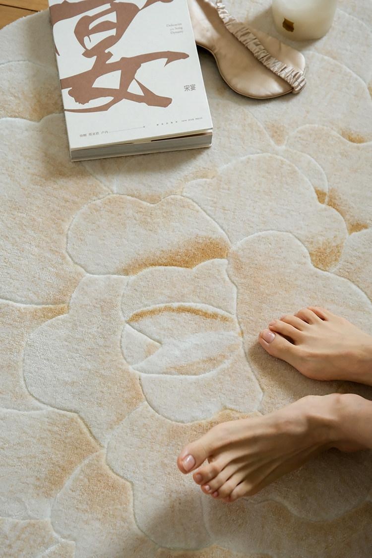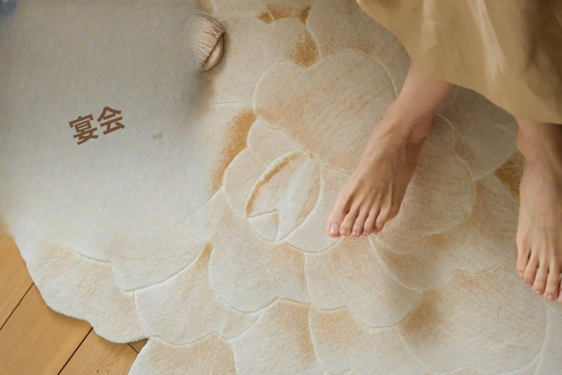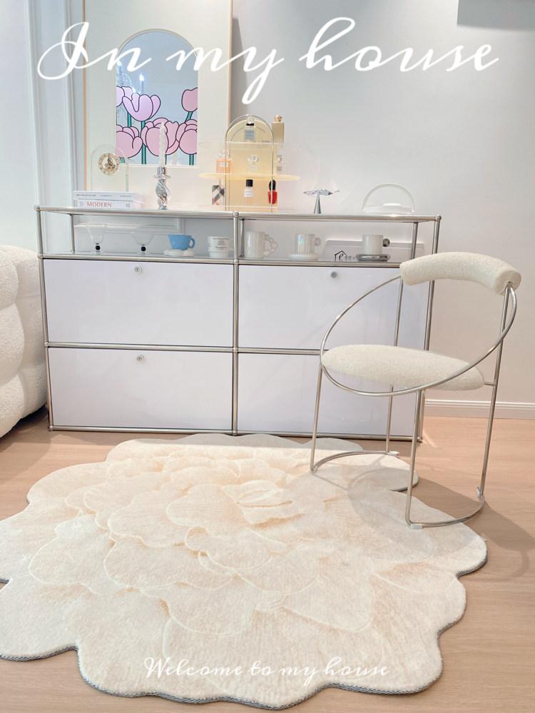 若奈 V*lentino「金絲白牡丹」立体手雕ベッドサイドマット・玄関マット・鏡前ミニカーペット - 高級感あふれるデザインで、あなたの空間に優雅さをプラス!