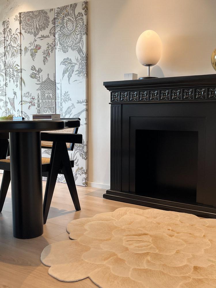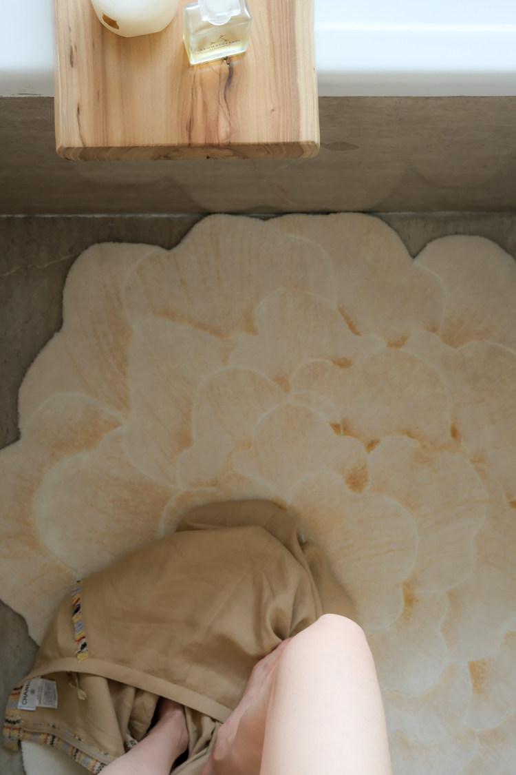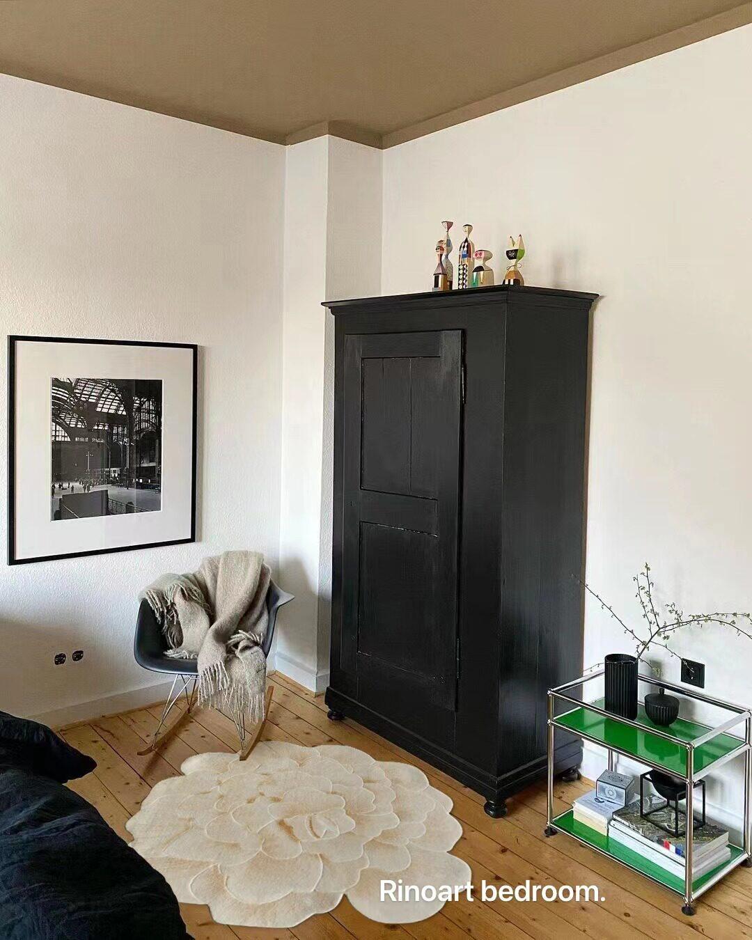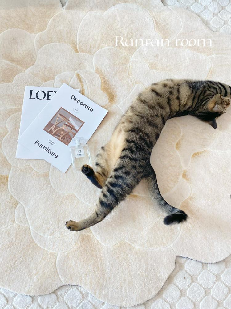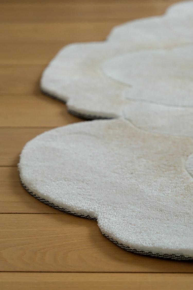 若奈 V*lentino「金絲白牡丹」立体手雕ベッドサイドマット・玄関マット・鏡前ミニカーペット - 高級感あふれるデザインで、あなたの空間に優雅さをプラス!