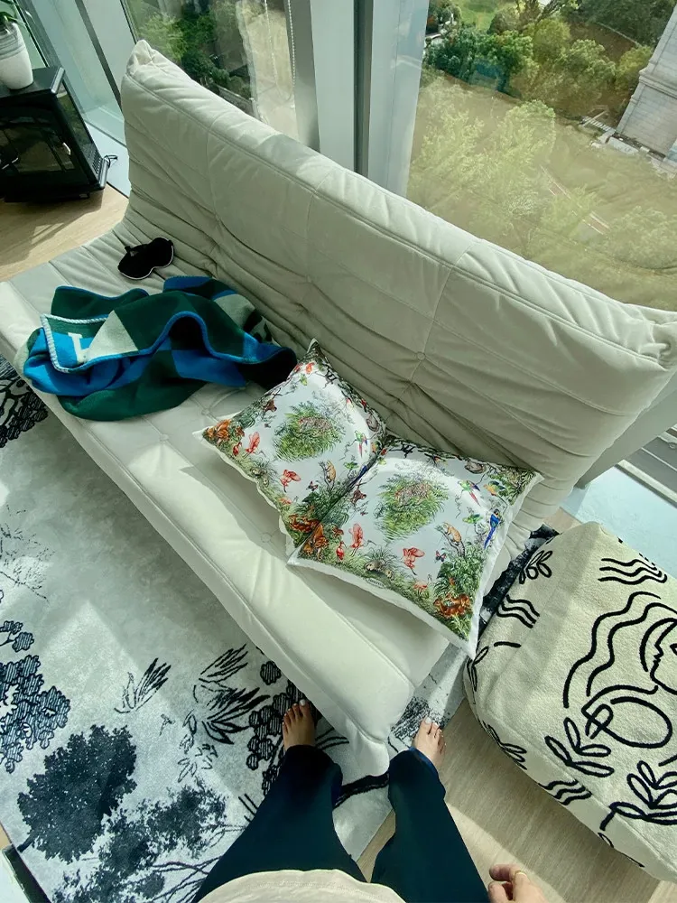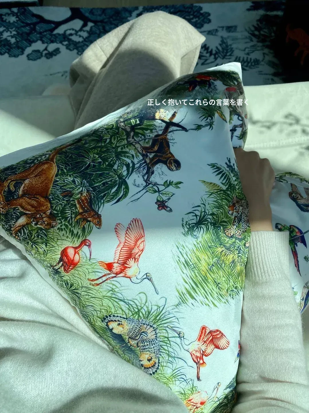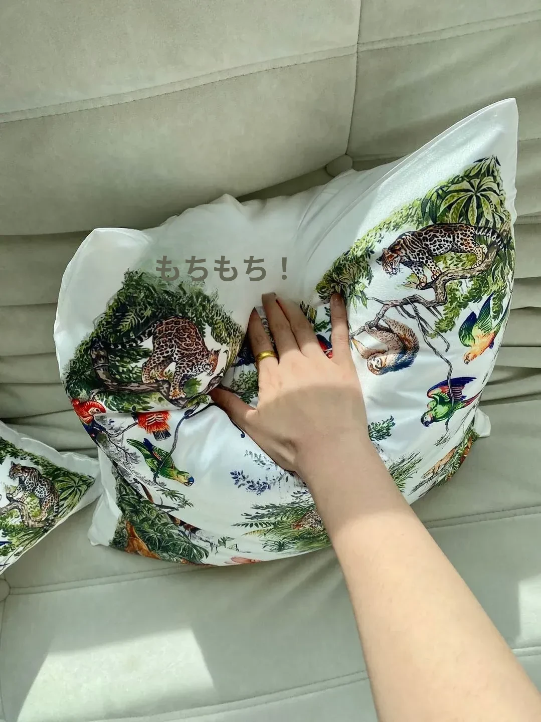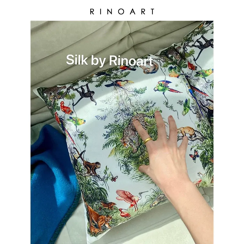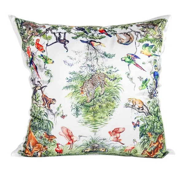 Rinoart若奈 ジャングルデザインのクッション - ソファ用クッションカバー付き、洗えるお昼寝用枕、オフィスでのリラックスに最適!