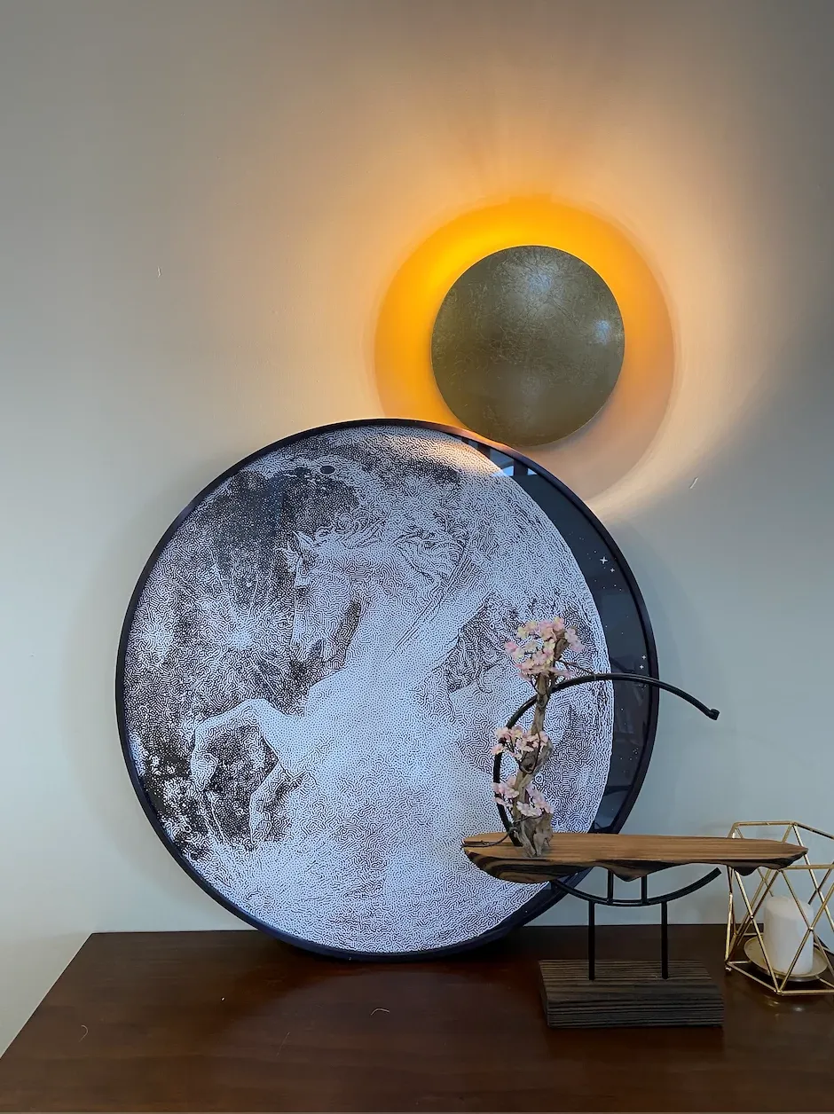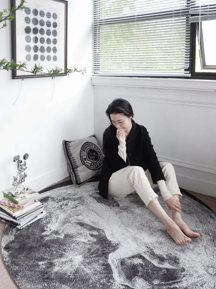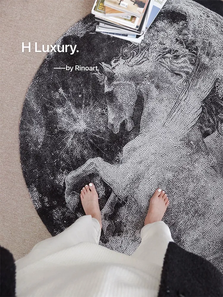 若奈RINOART「星月白馬」ラウンドカーペット - アメリカンスタイルのリビングや寝室にぴったり!書斎にも最適な家庭用ラグで、優雅な空間を演出します。