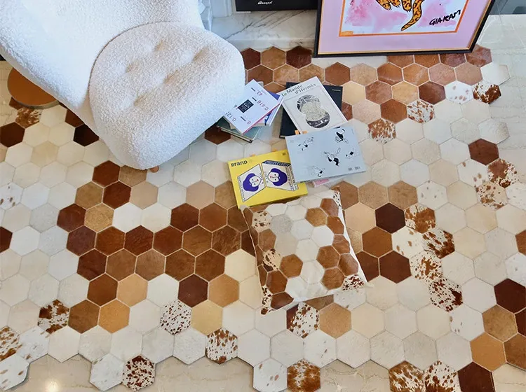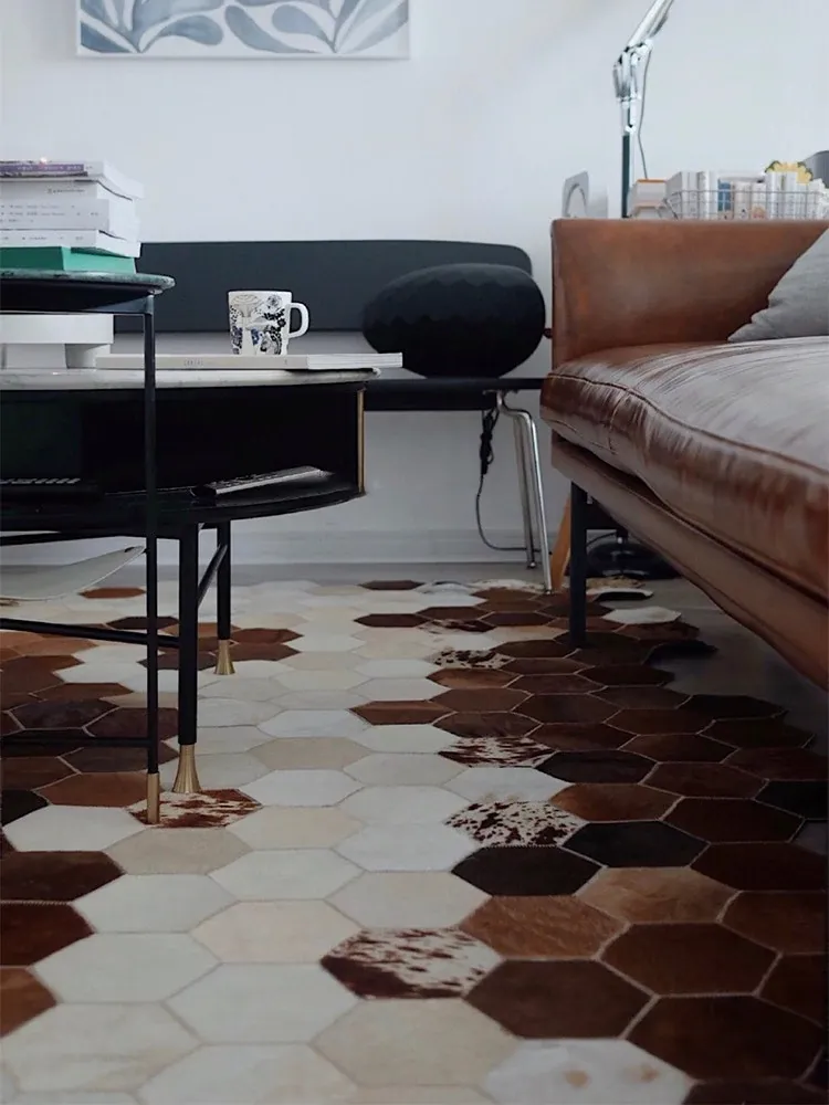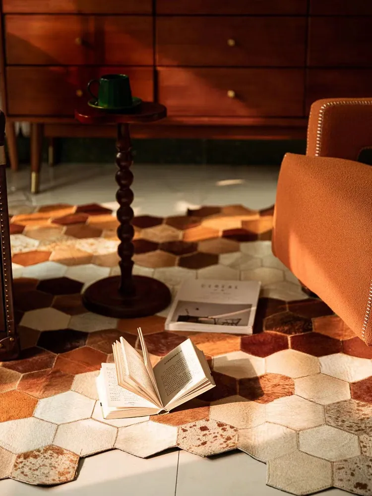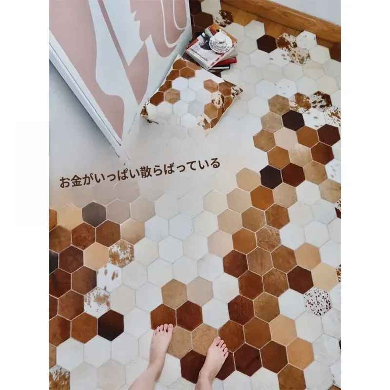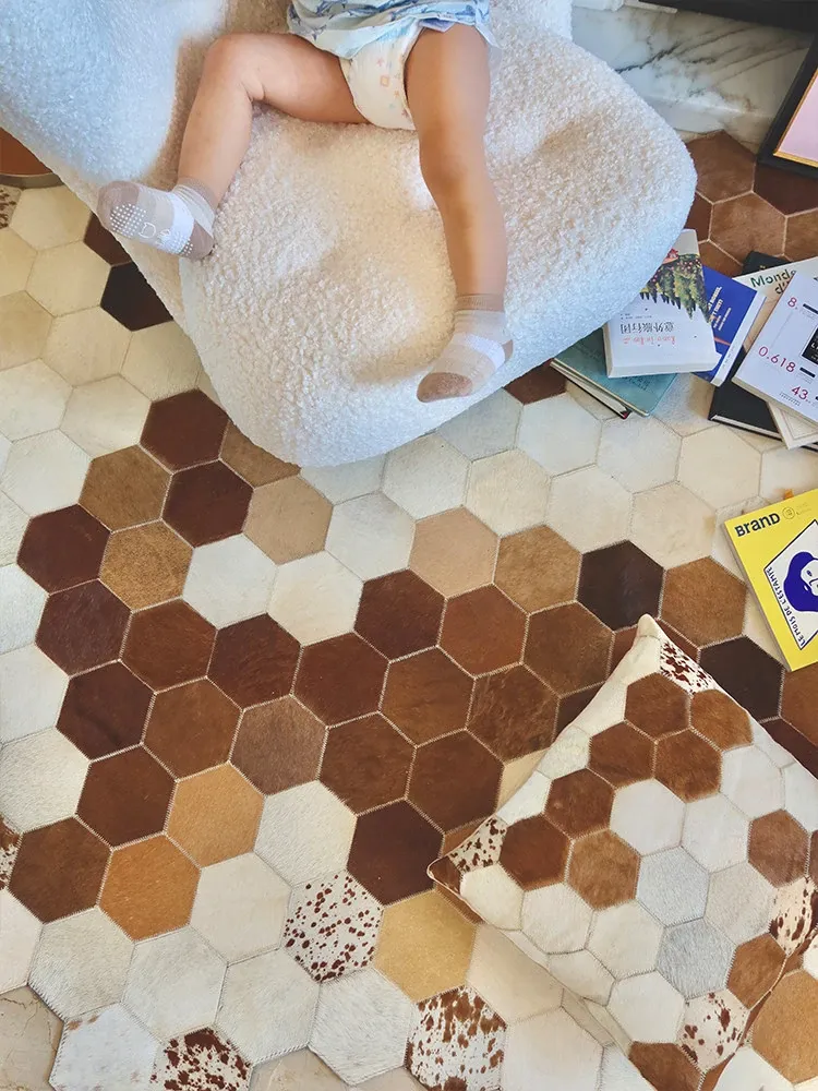 若奈 Rionart 豪華なオーストラリアンカウレザー製の天然ラグ - 寝室やリビングルームにぴったりな広々としたデザインで、贅沢な雰囲気を演出します。