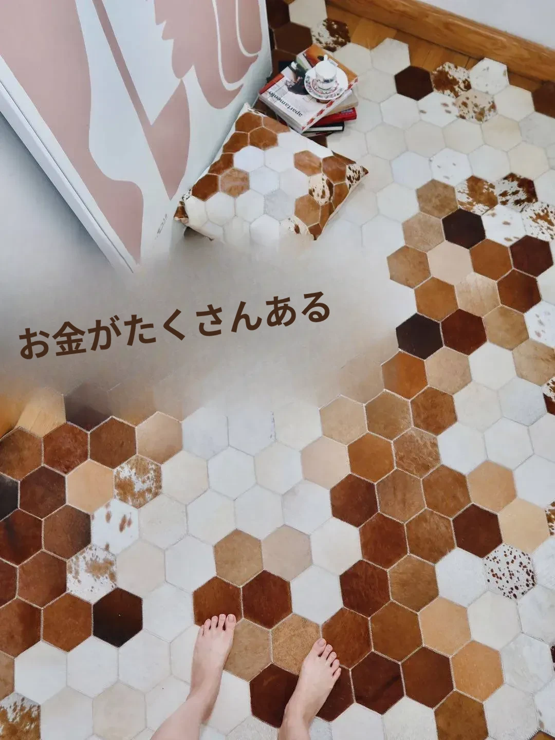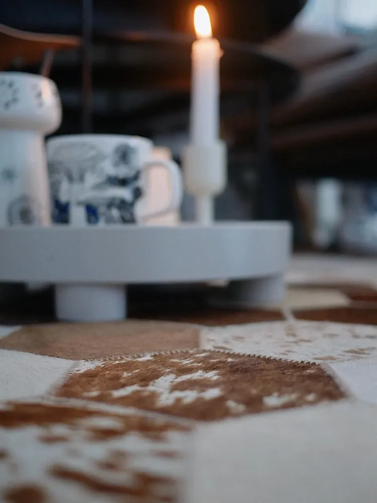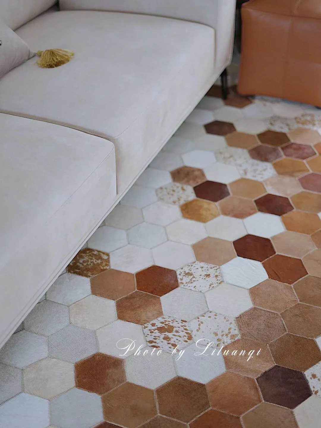 若奈 Rionart 豪華なオーストラリアンカウレザー製の天然ラグ - 寝室やリビングルームにぴったりな広々としたデザインで、贅沢な雰囲気を演出します。