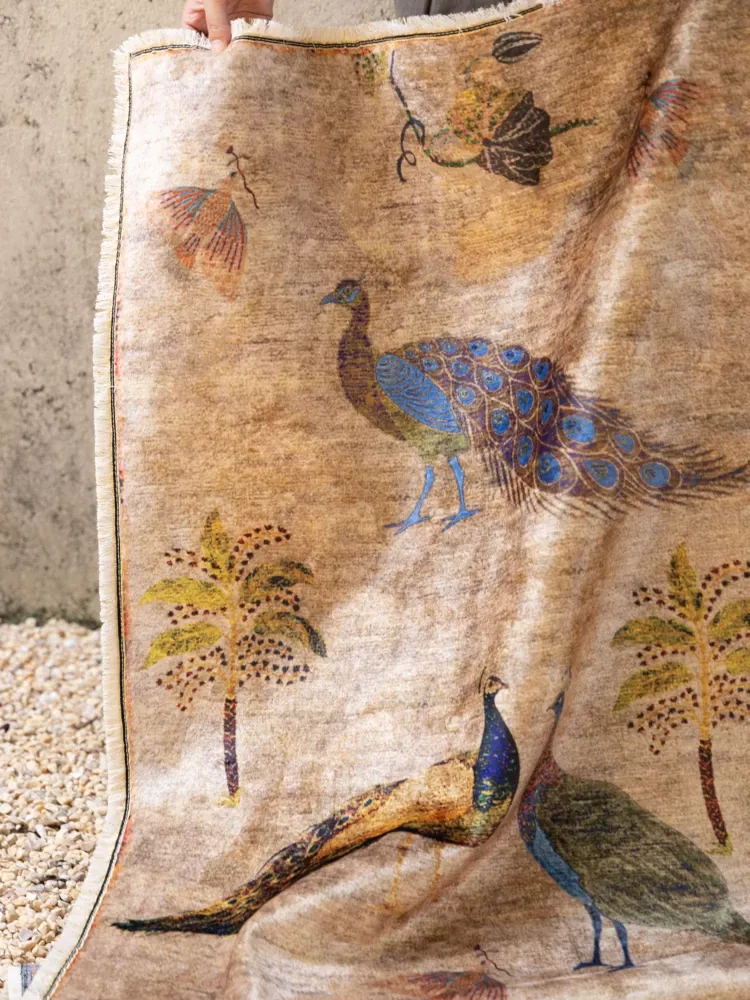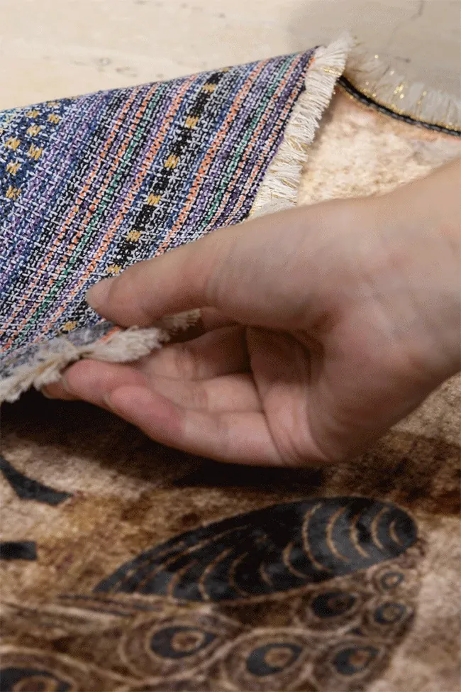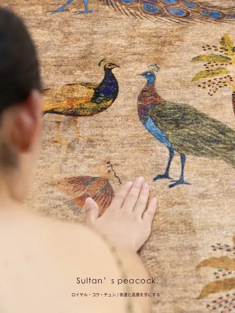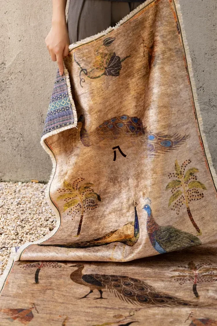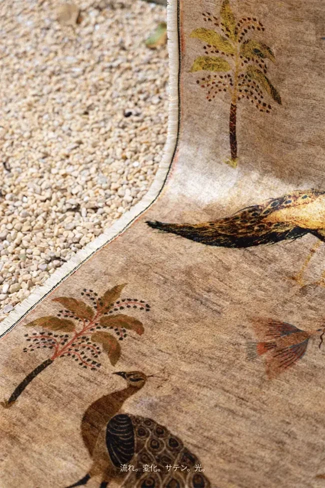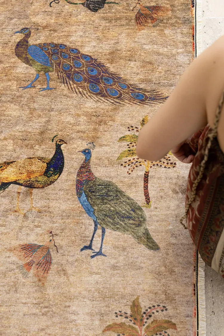 若奈アンティークカーペットシリーズ「ラッキー・ガーデン」ペルシャカラーの洗えるベルベット感の廊下カーペット - 豪華なデザインでお部屋を華やかに演出!