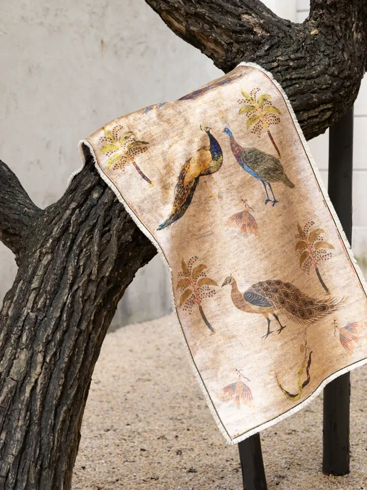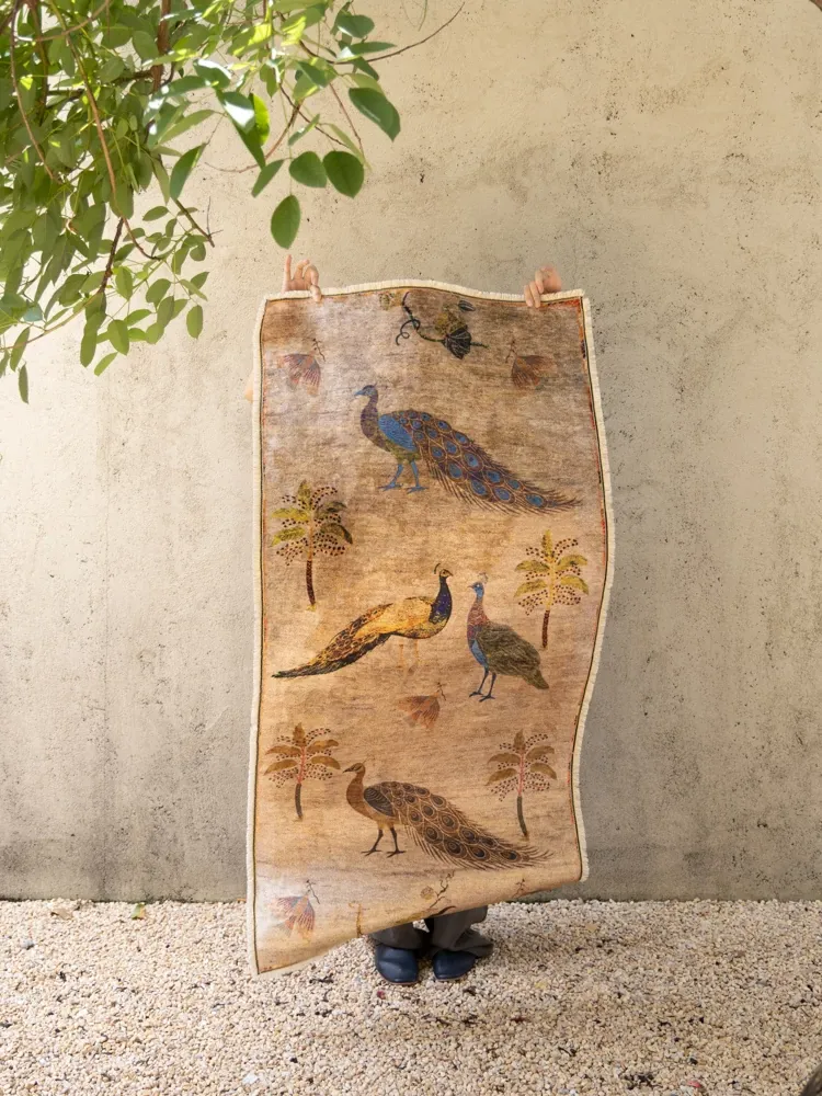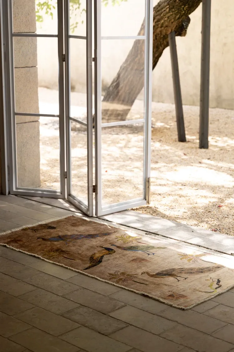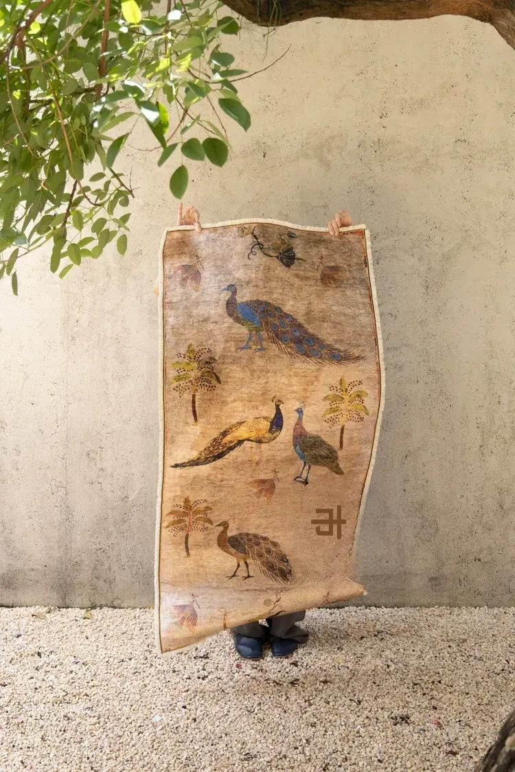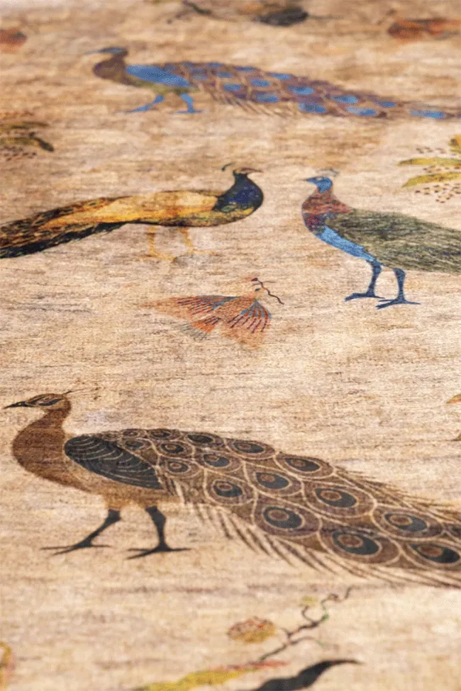 若奈アンティークカーペットシリーズ「ラッキー・ガーデン」ペルシャカラーの洗えるベルベット感の廊下カーペット - 豪華なデザインでお部屋を華やかに演出!