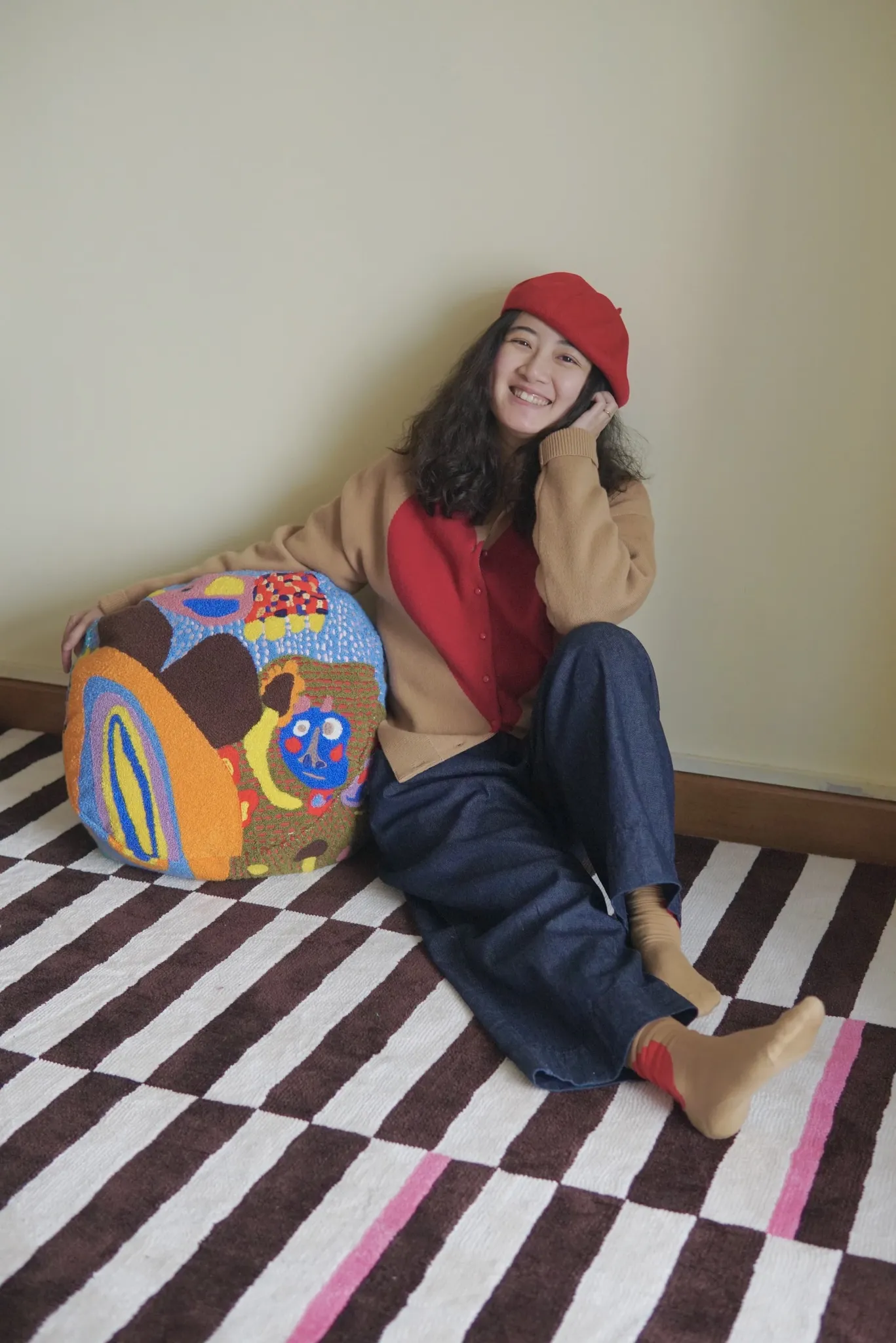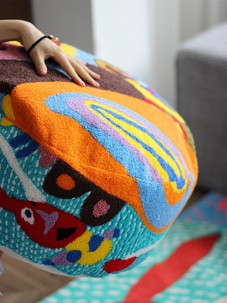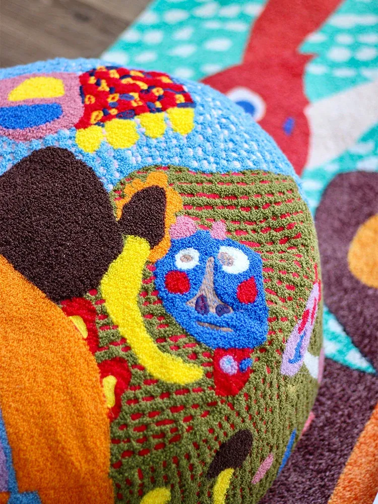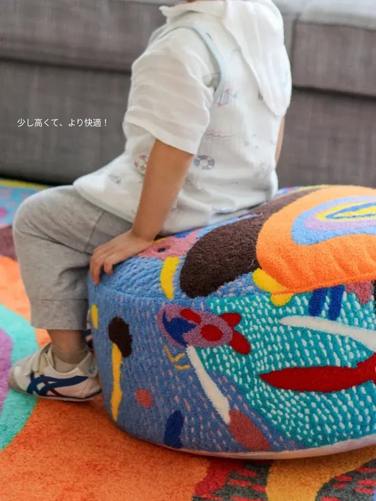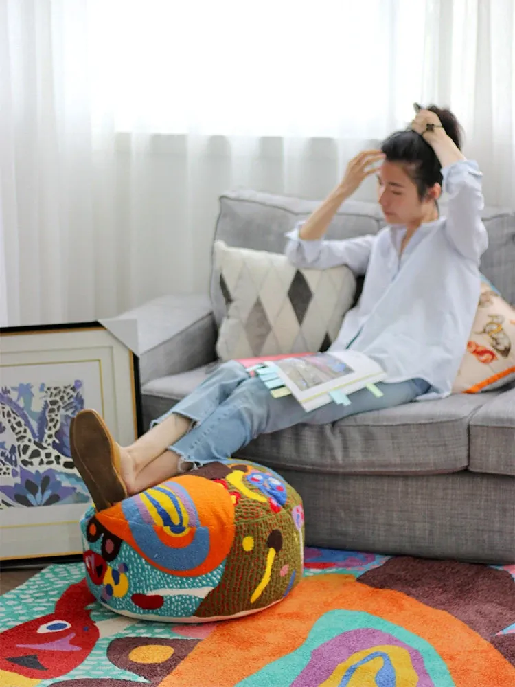 Rona Artist | Sister Mai's "Rainbow Ears" Wool 3D Embroidered Children's Stool - Removable and Washable Soft Ottoman