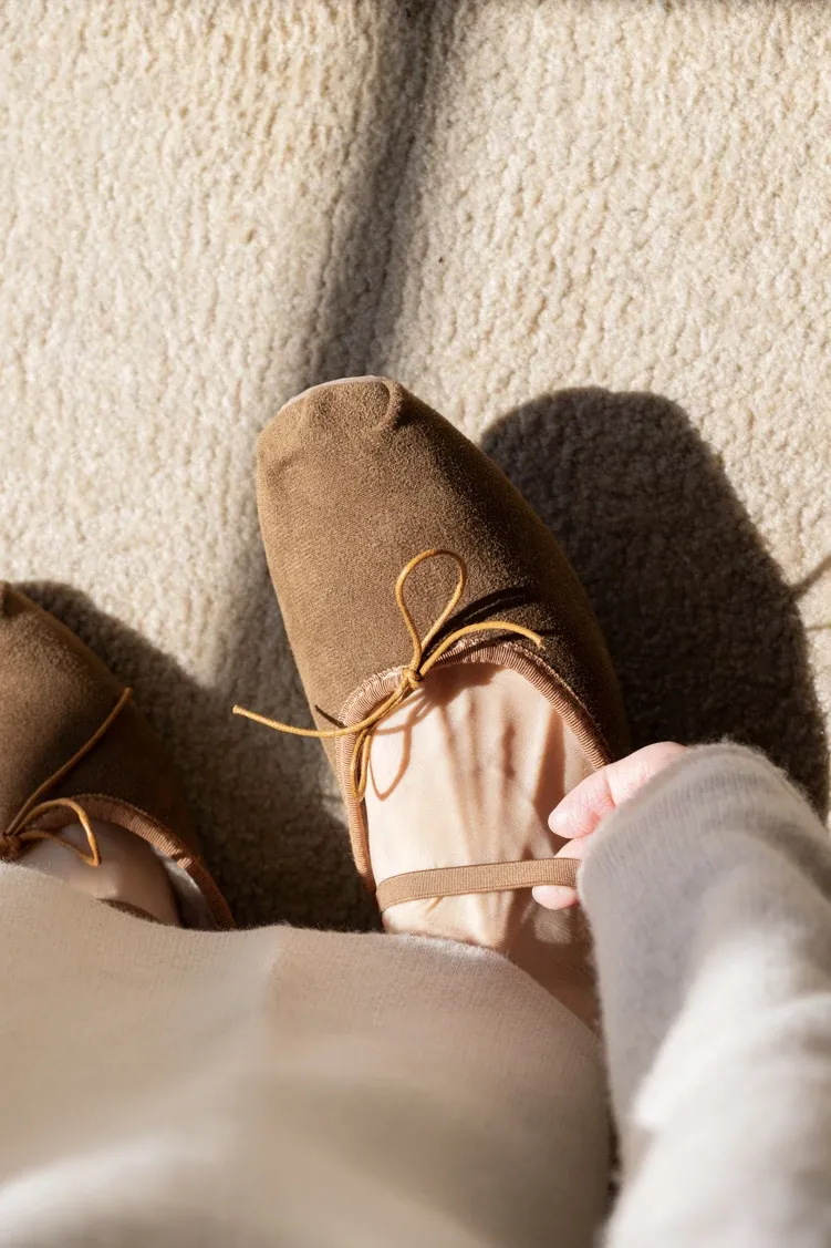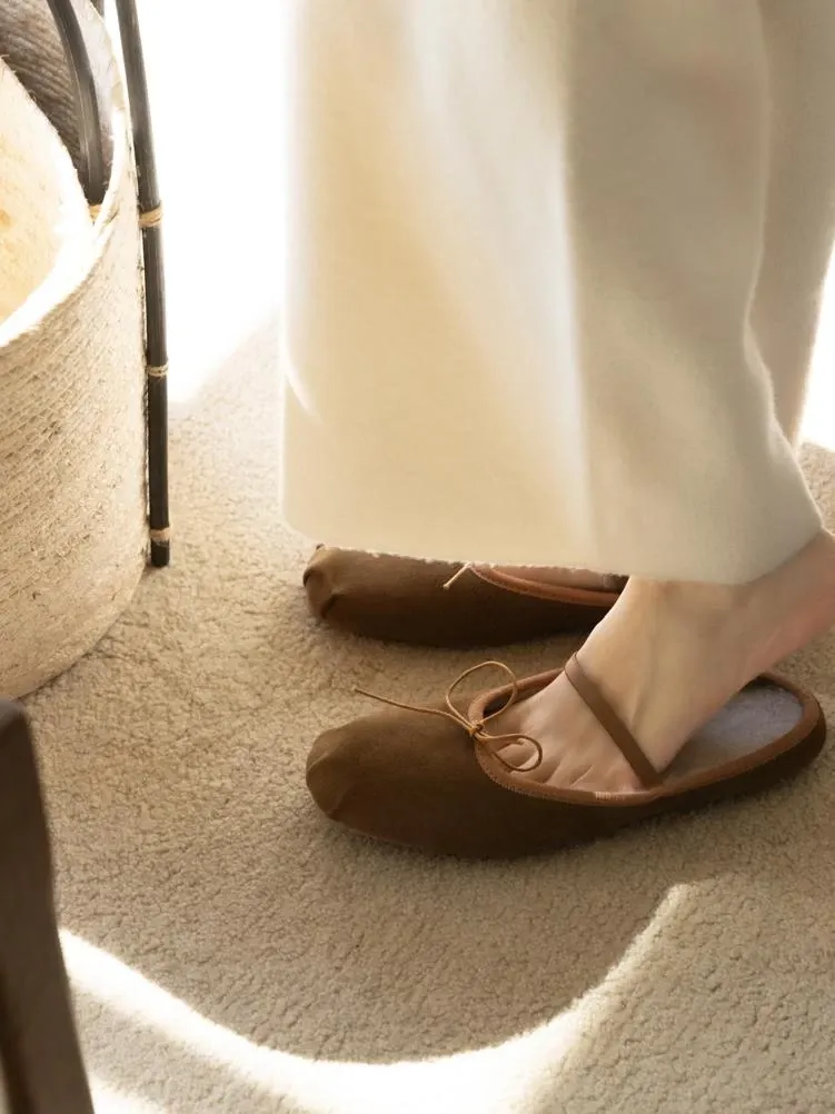 若奈 秋冬限定!ふんわり裏起毛の麦わらブラウン Miuバレエルームシューズ「3way」旅行・散歩にも最適な一足!