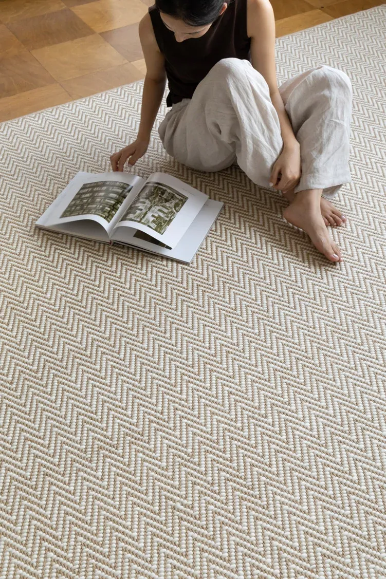若奈ラグ バングラデシュ輸入シリーズ / Lora pian@人字織りの麻と輸入ウールのベッドサイドマット