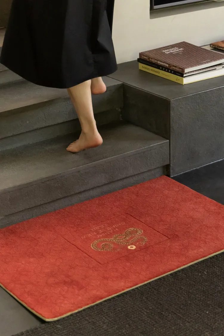 若奈カーペット「金の蛇が財を迎える」吉兆の玄関マット - リビングや寝室にぴったりの縁起の良いデザイン!