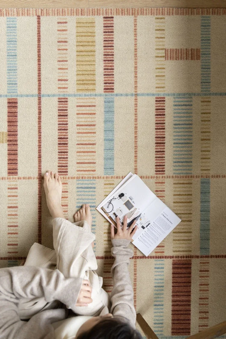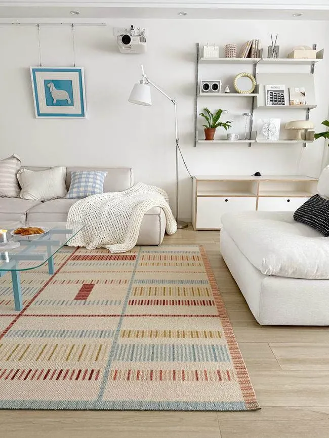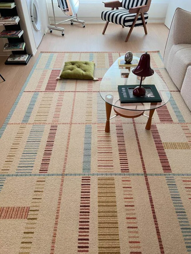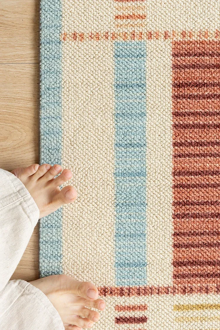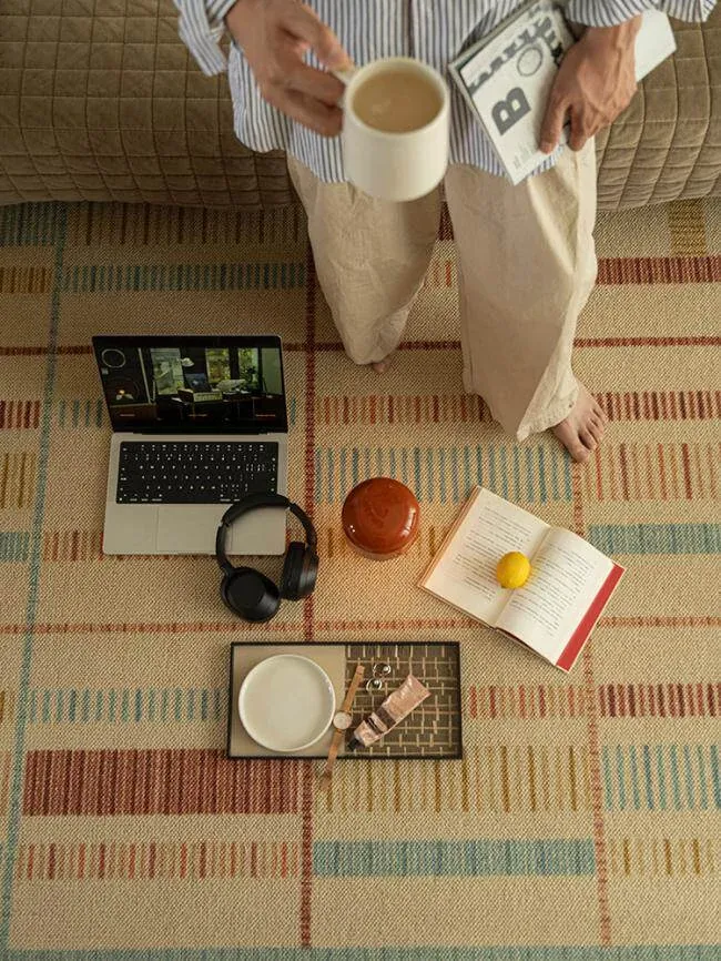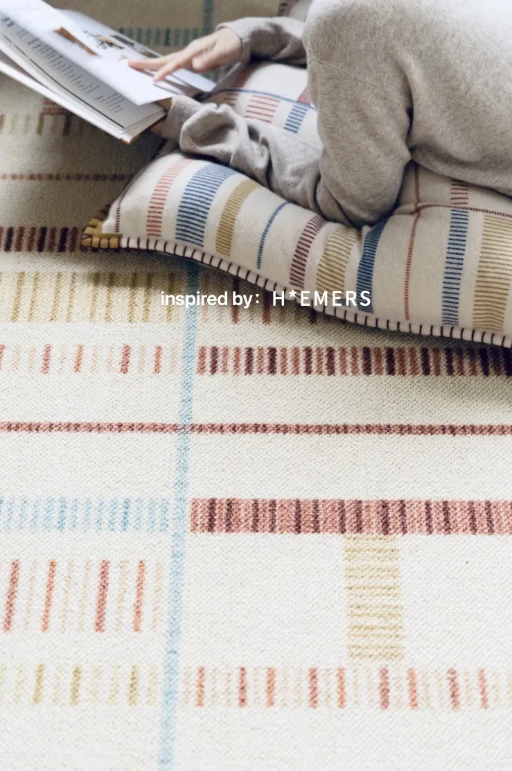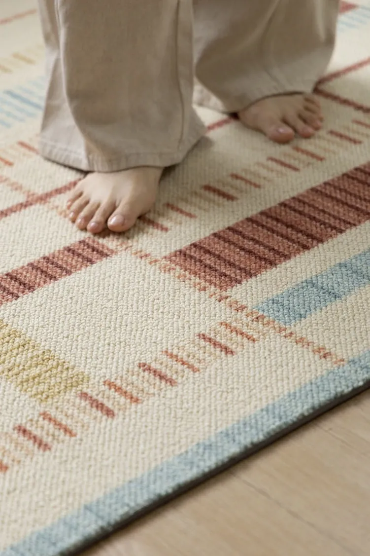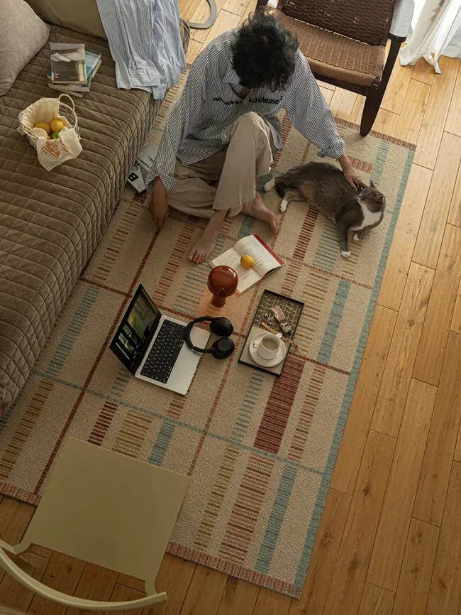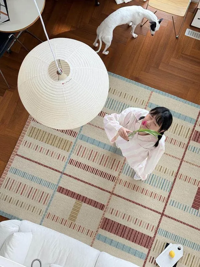 若奈ラグ H Deco「カラフルリズム」輸入ウールの大地ラグ - 四季折々の温かみあふれるリビングに最適!