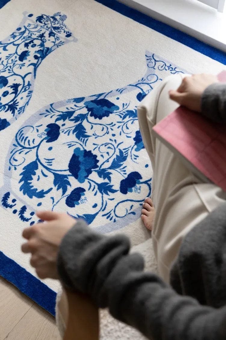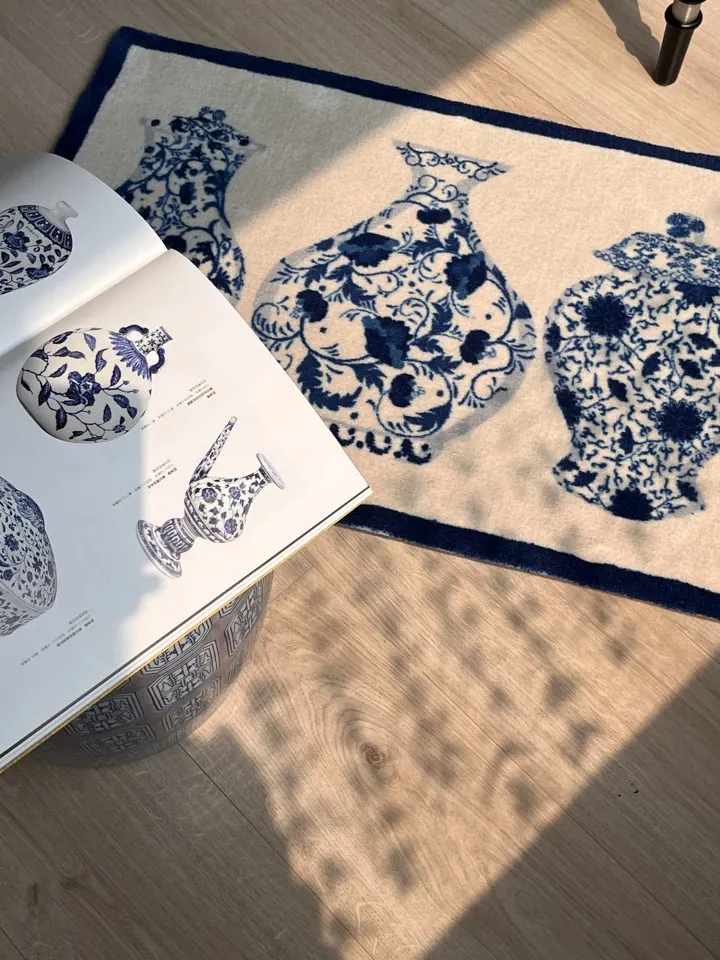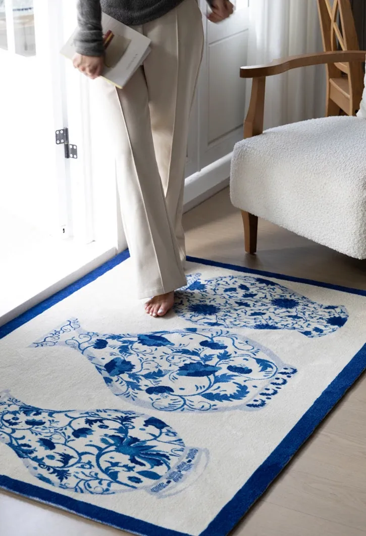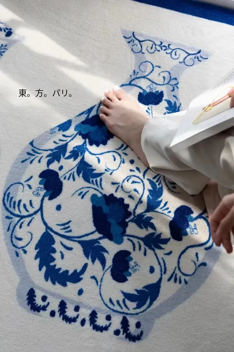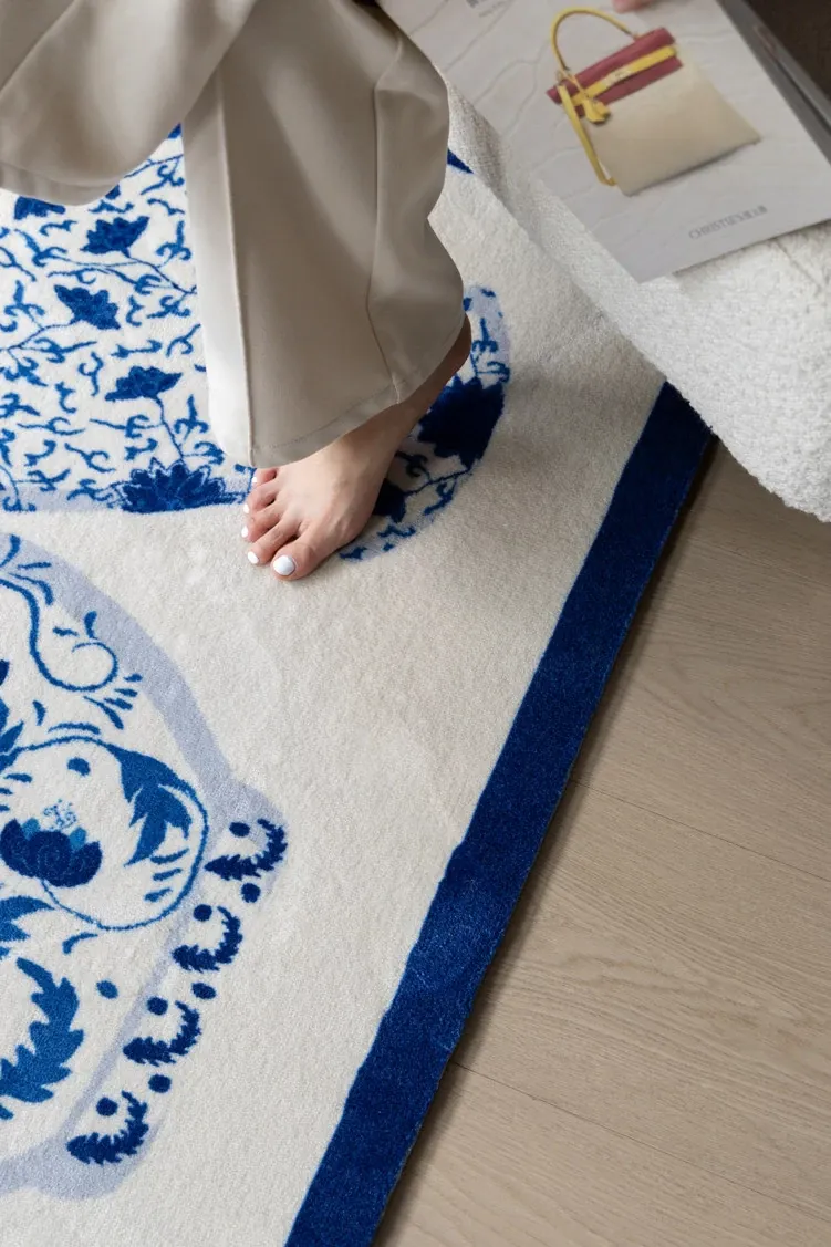 若奈ラグ 東方パリ「步青花」平安玄関マット 青藍色 ベッドサイドラグ - おしゃれで安心な空間を演出する、心地よい触感のマットで、毎日の暮らしを彩ります。