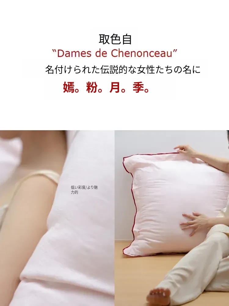 若奈 Chenonceau. 月季ピンク/PureFlex南フランスリネン大クッションベッドサイド抱き枕 - 高級感あふれるデザイン、心地よい肌触りで、あなたの寝室を華やかに彩ります。
