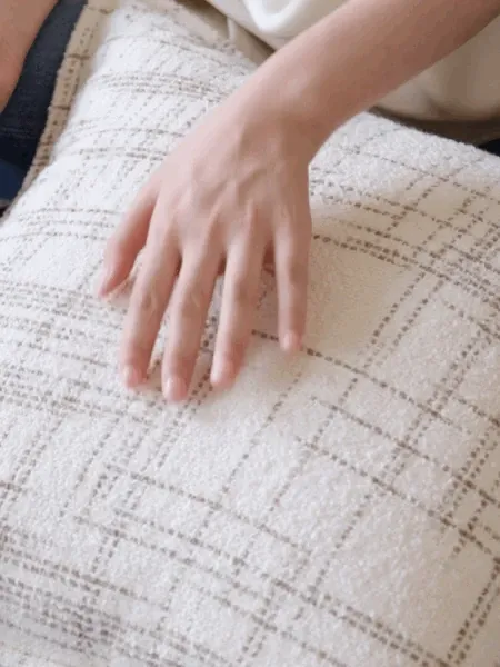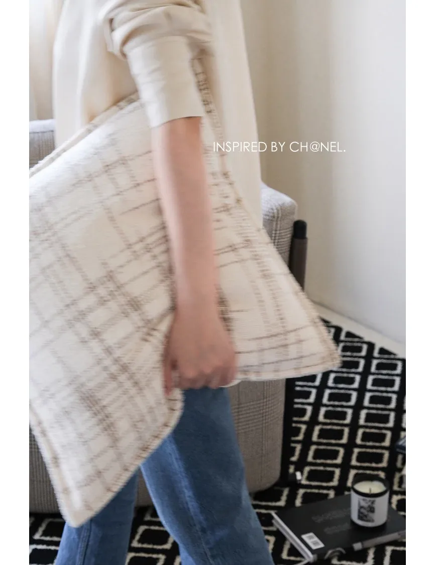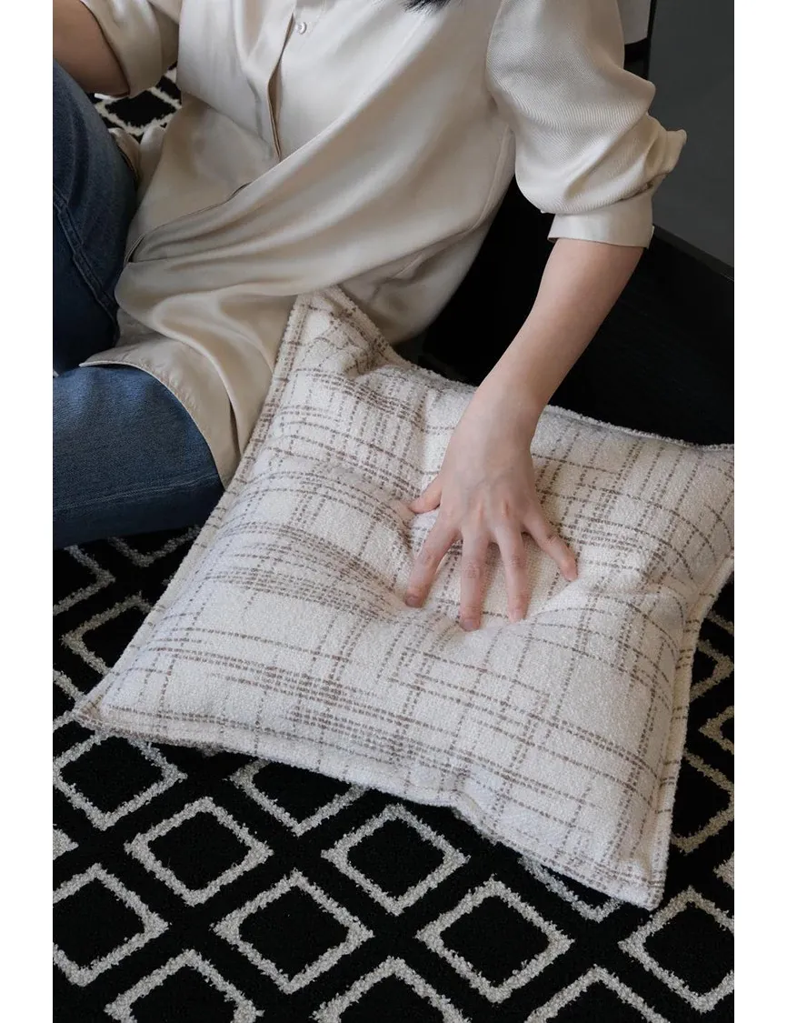 若奈CH@NELクロスフラワー柄クッション / フレンチニットのホワイトラムウールクリームクッション、リビングや寝室にぴったりの柔らかさとおしゃれさを兼ね備えたアイテム!