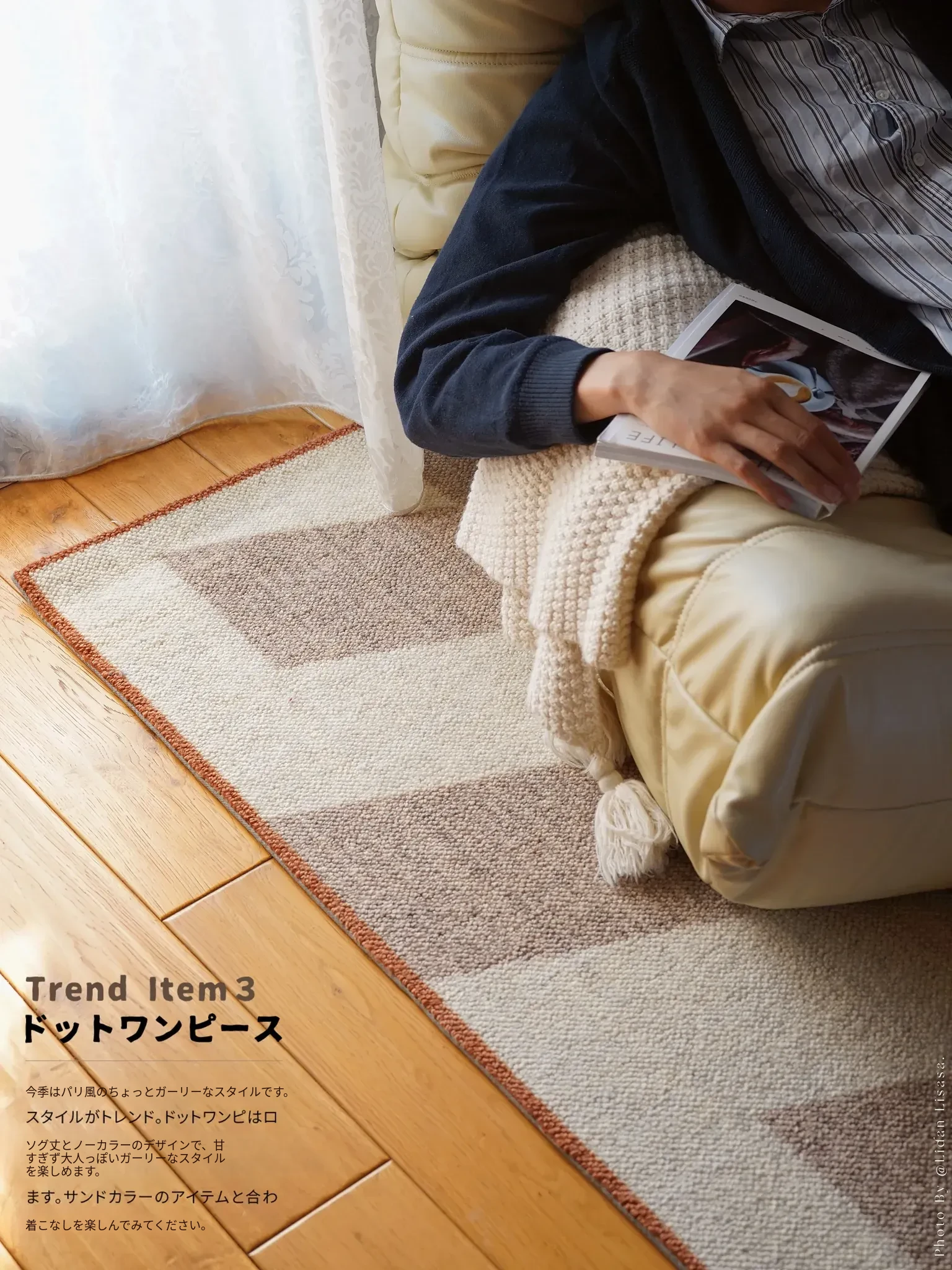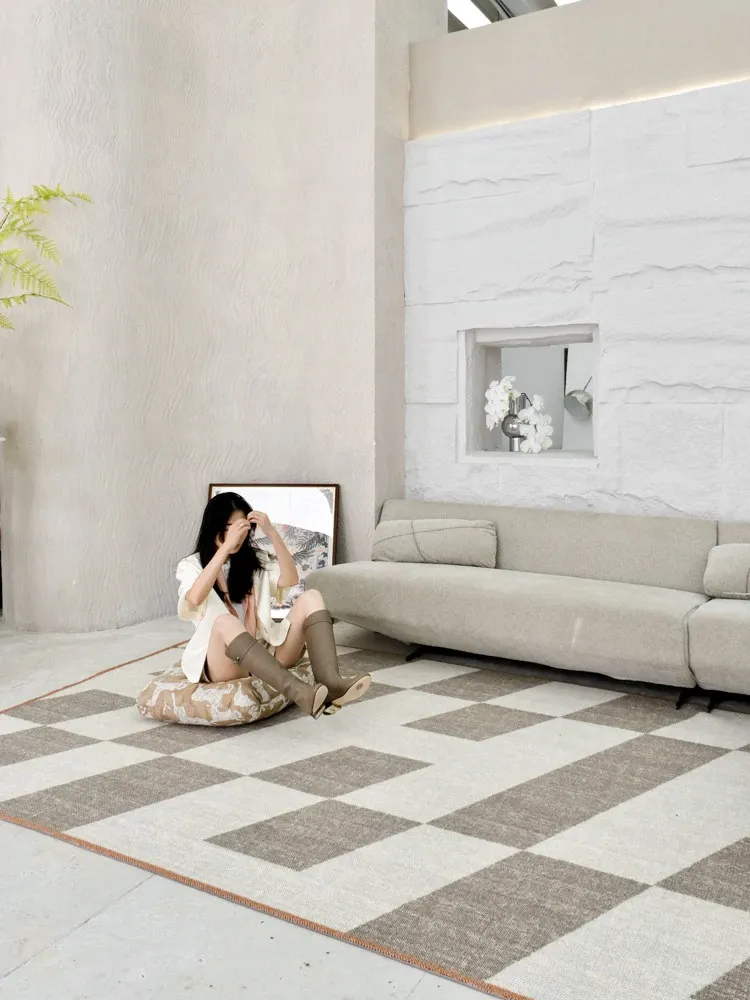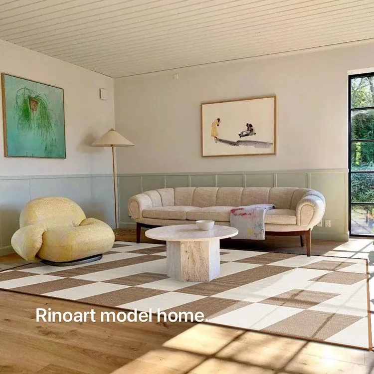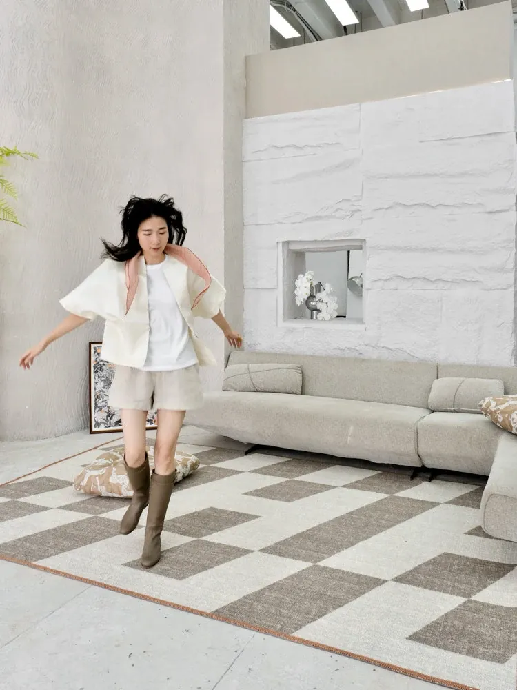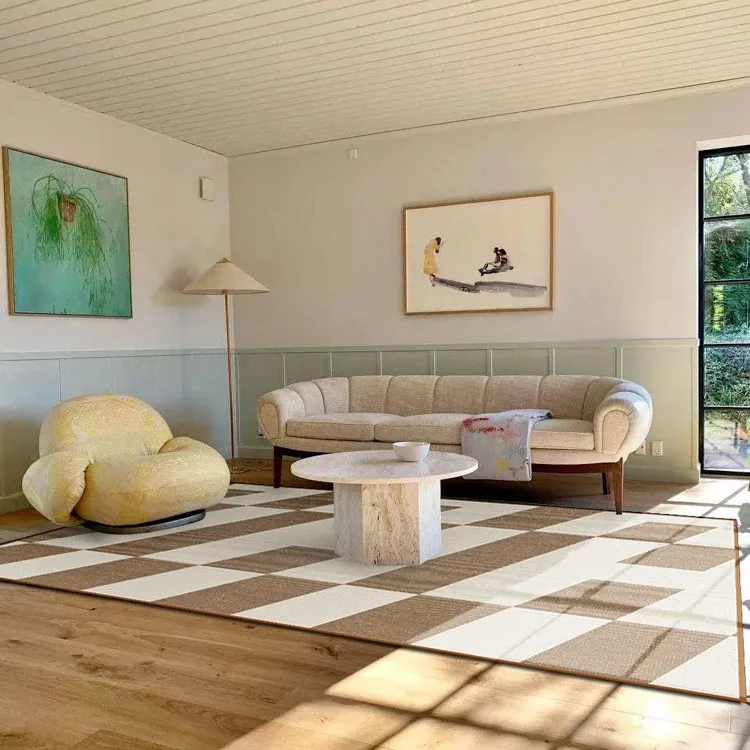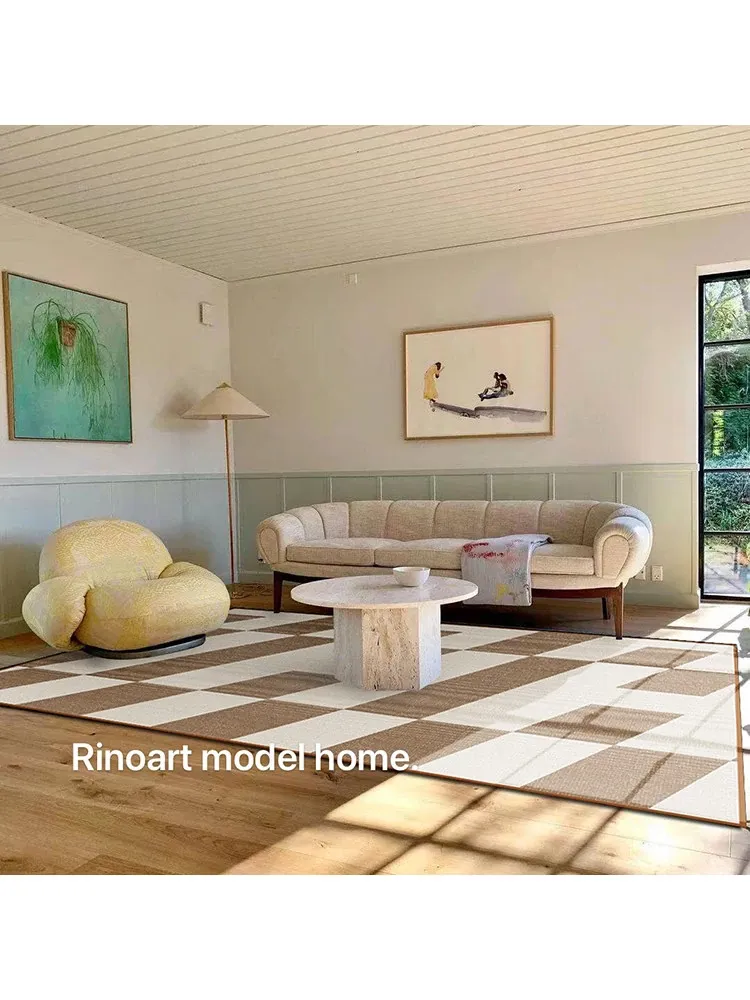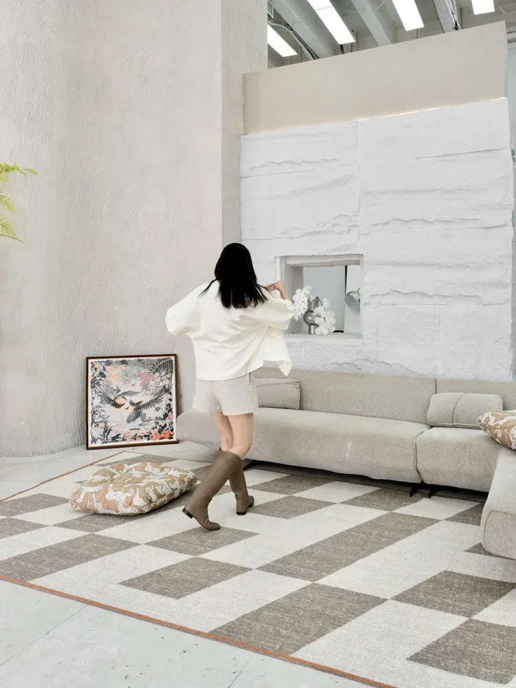 若奈 经典H en biais プレミアムクリーム色フラワータイルデザイン輸入ウールラグ - リビング・寝室にぴったりなアーストーンの魅力!