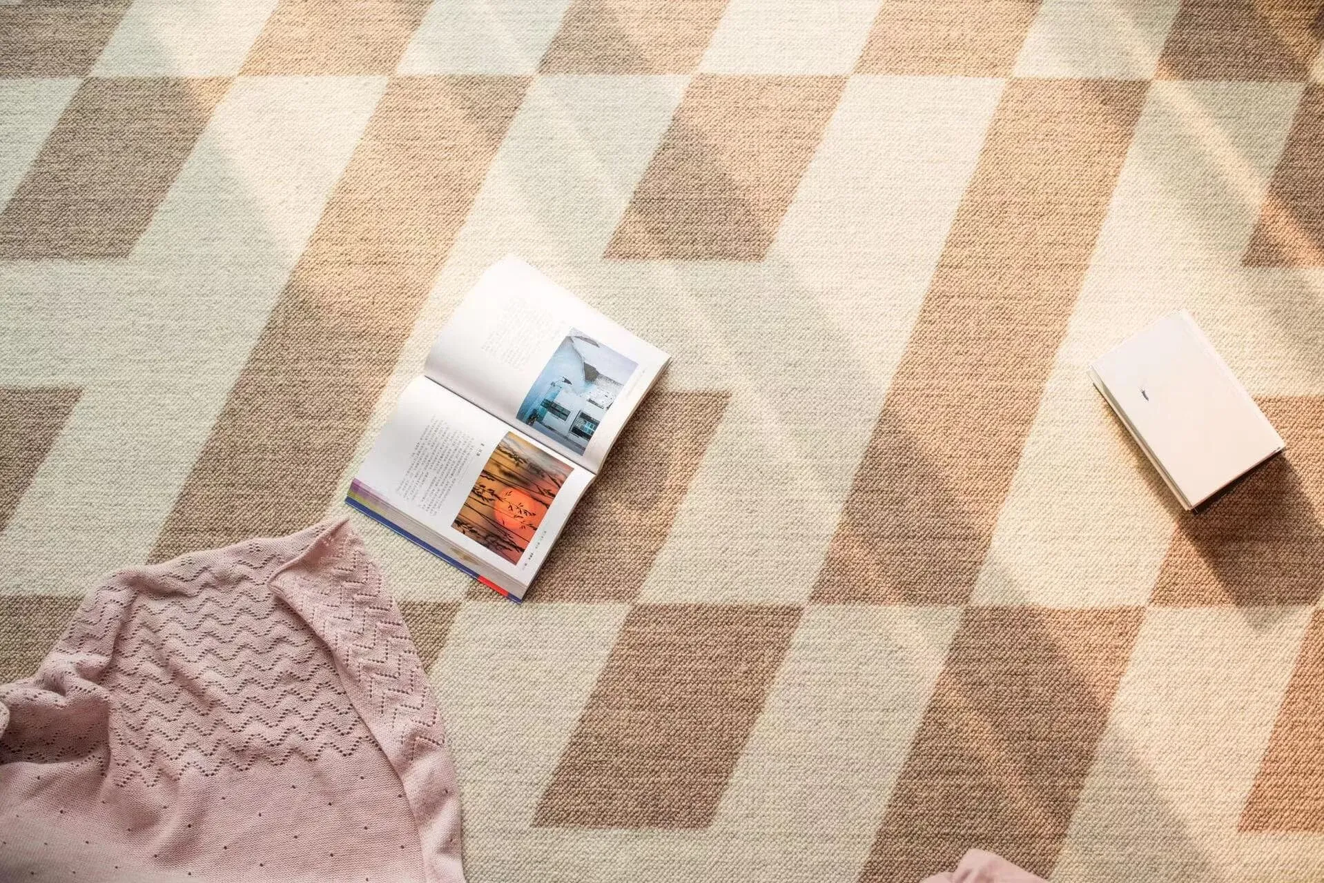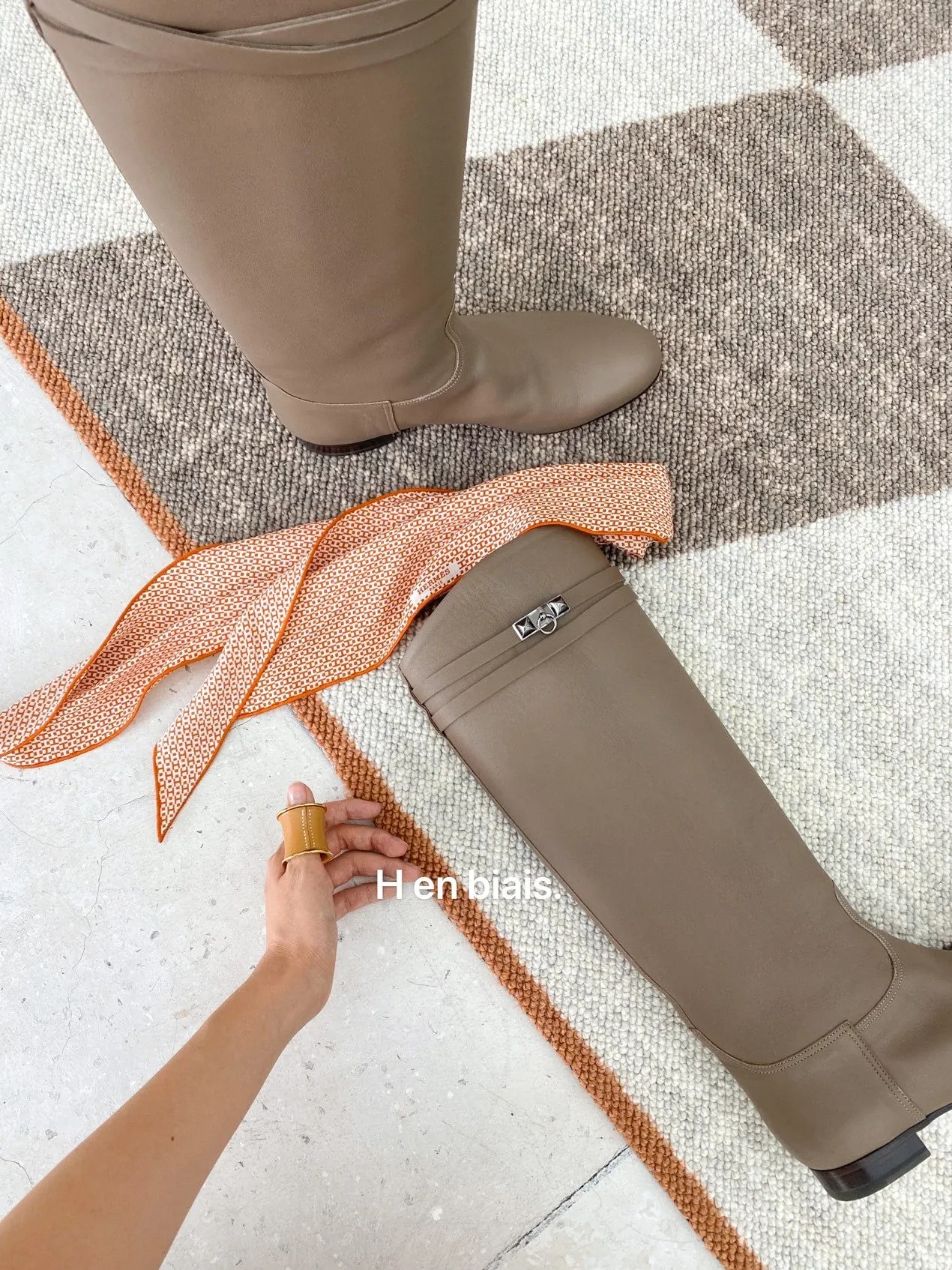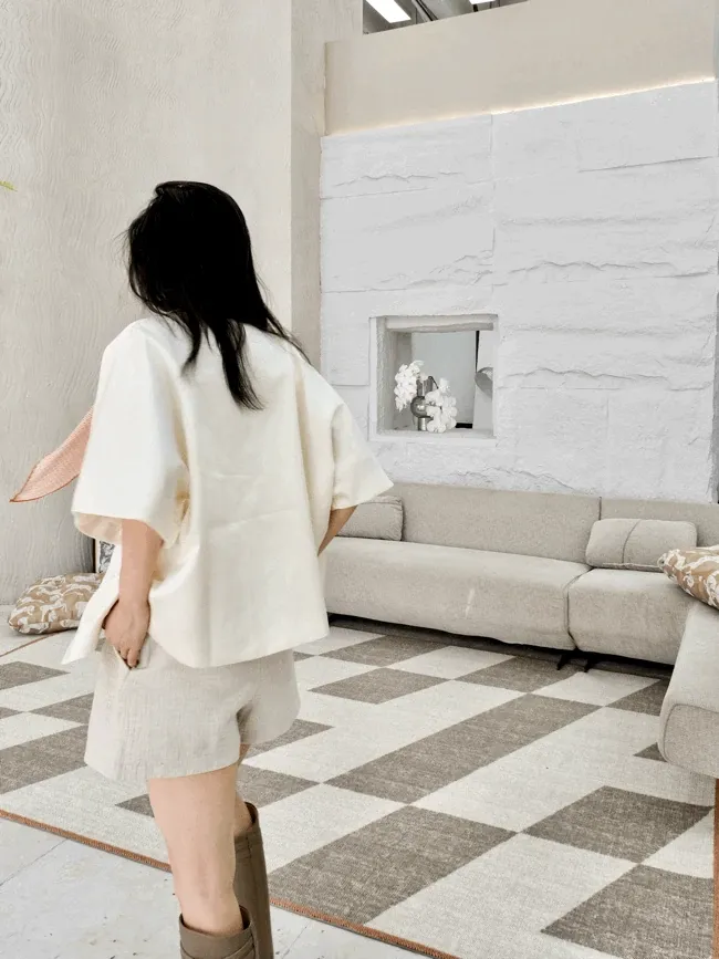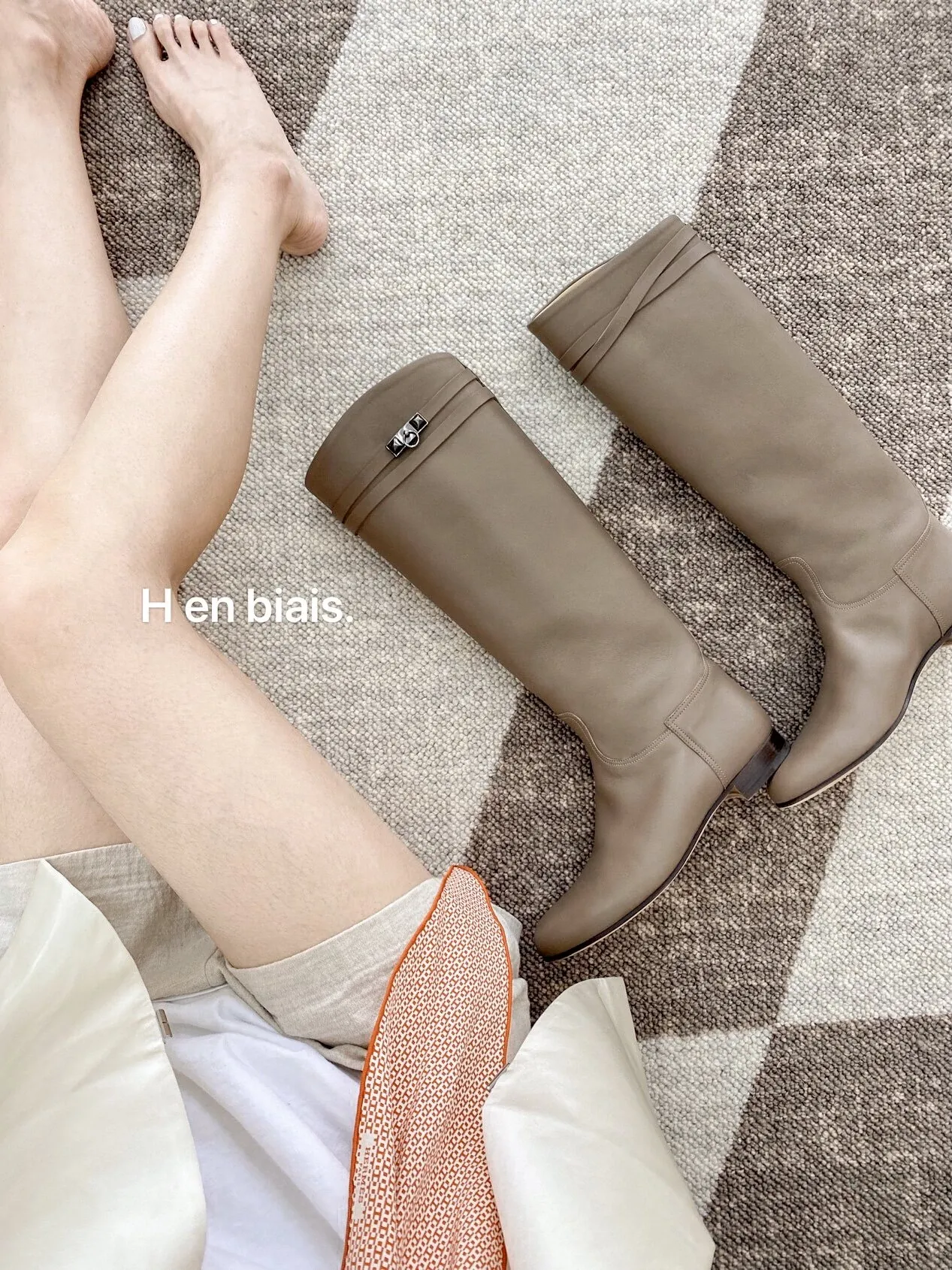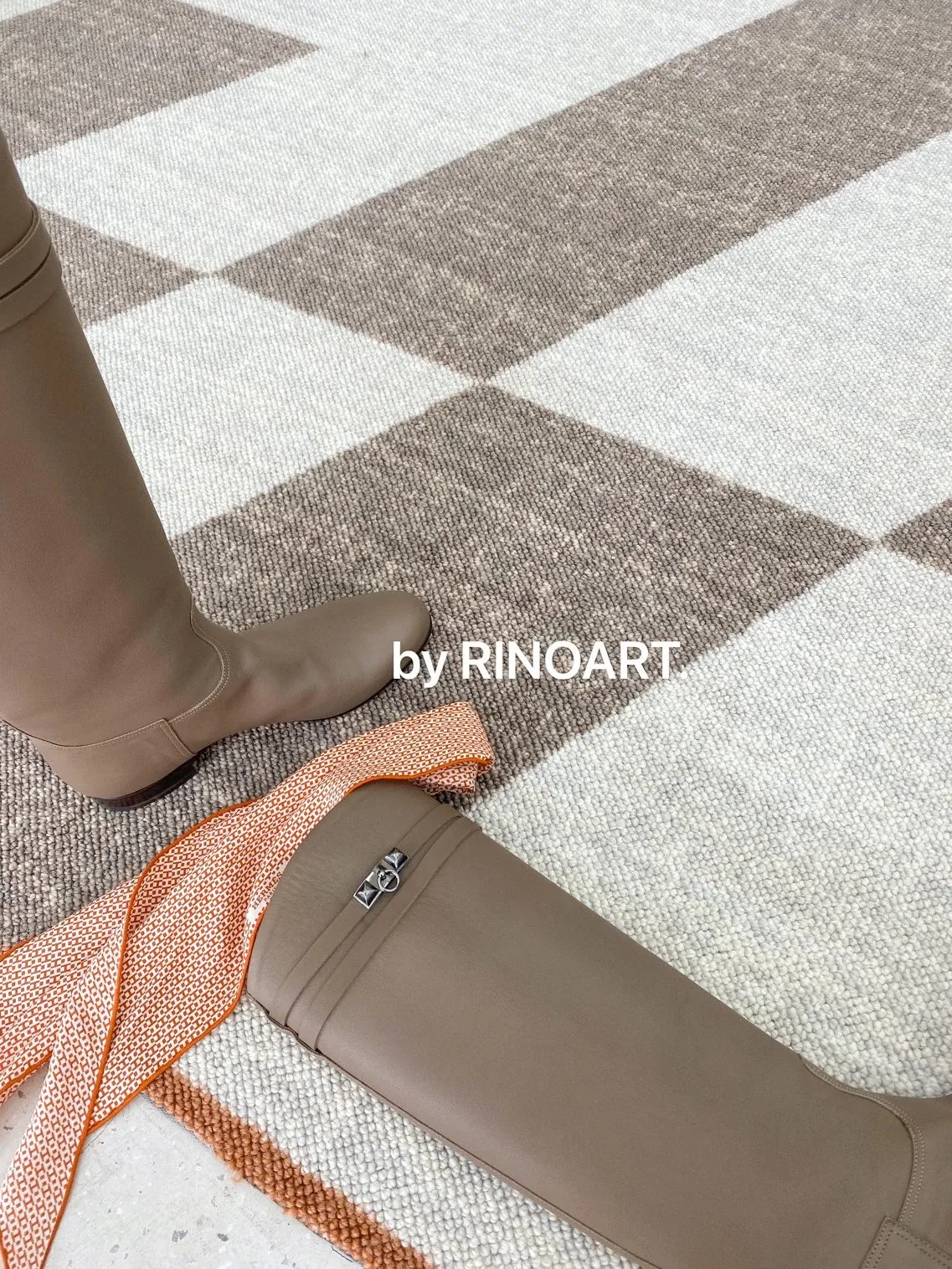 若奈 经典H en biais プレミアムクリーム色フラワータイルデザイン輸入ウールラグ - リビング・寝室にぴったりなアーストーンの魅力!