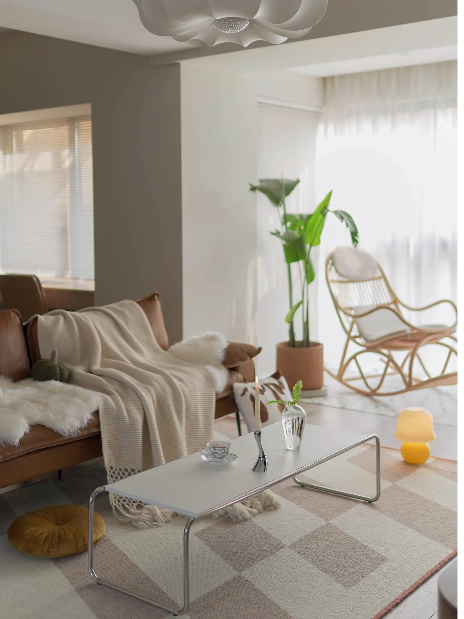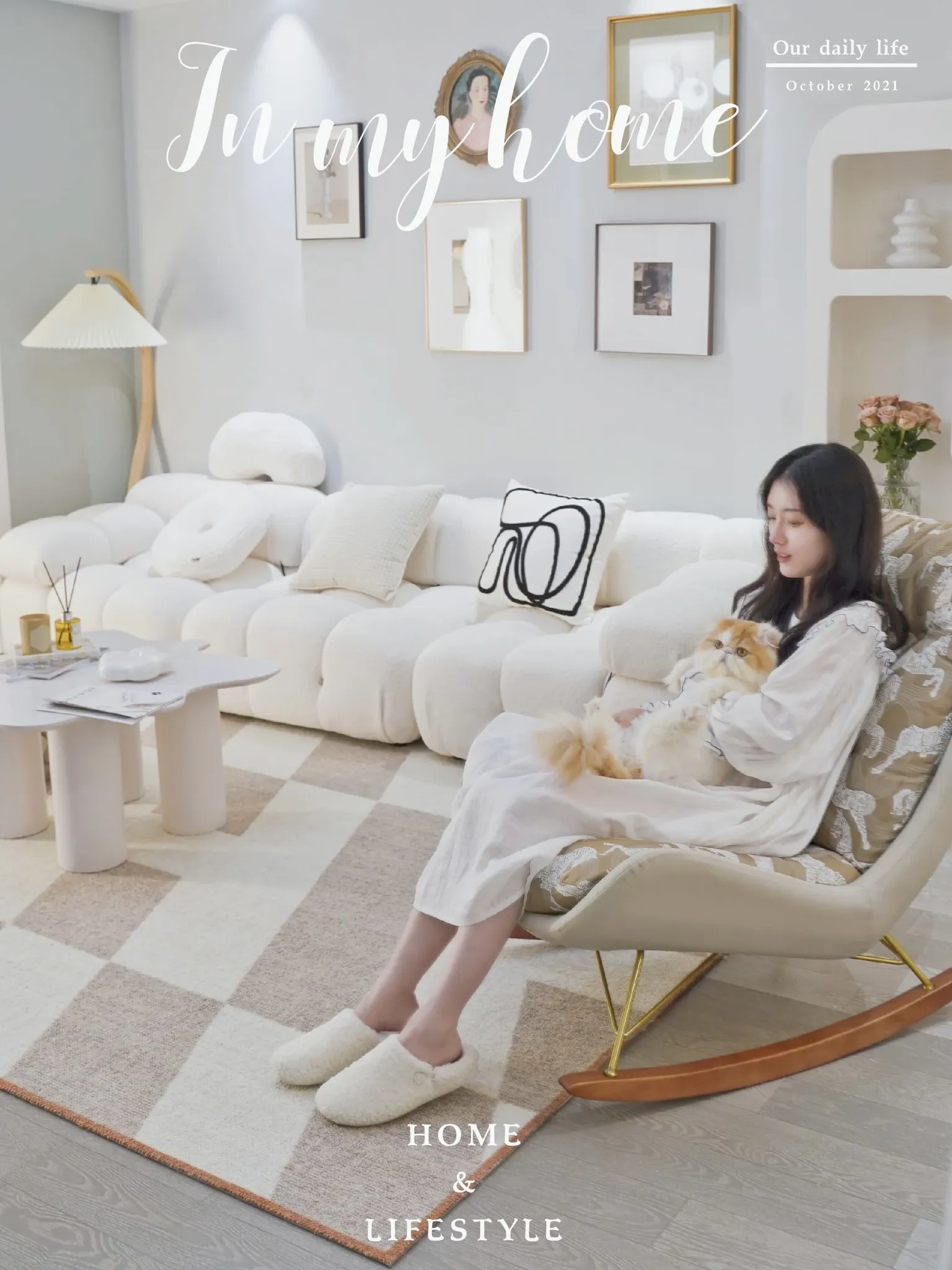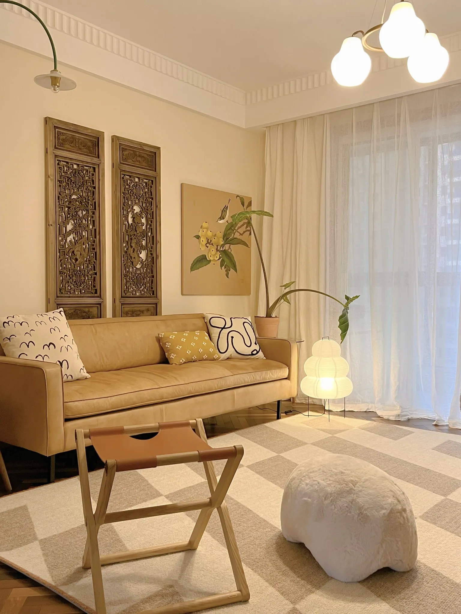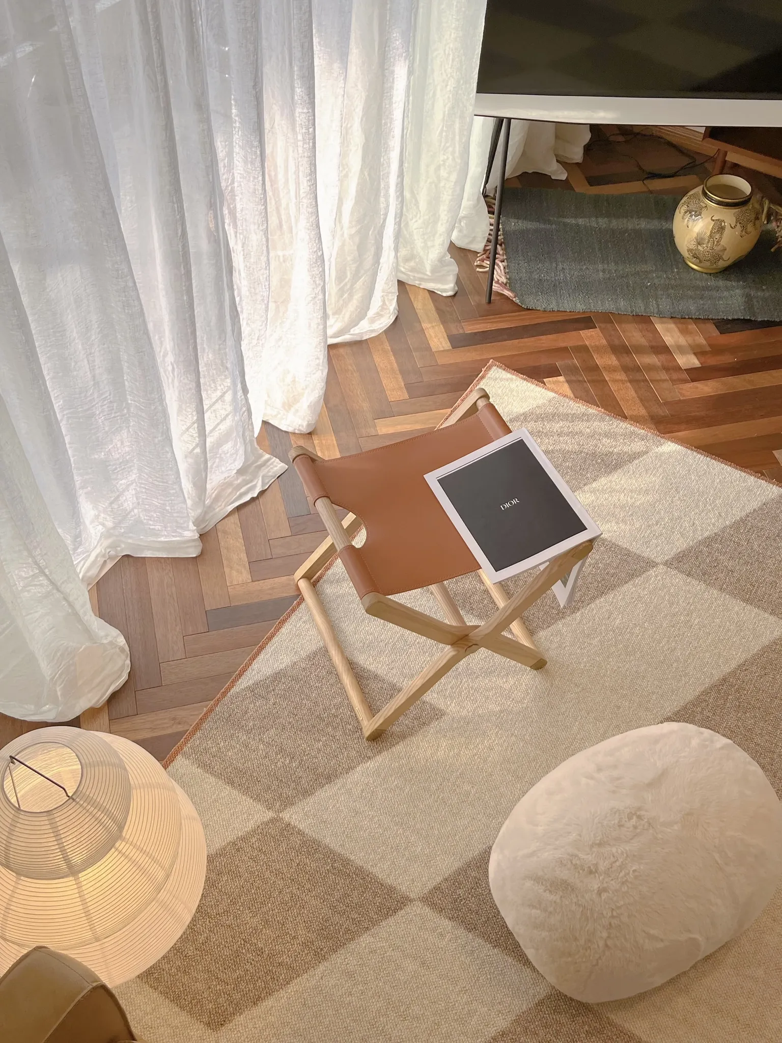 若奈 经典H en biais プレミアムクリーム色フラワータイルデザイン輸入ウールラグ - リビング・寝室にぴったりなアーストーンの魅力!