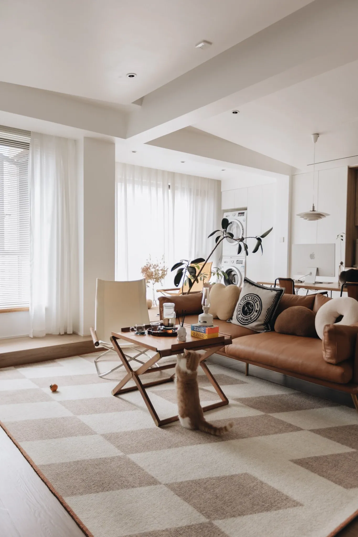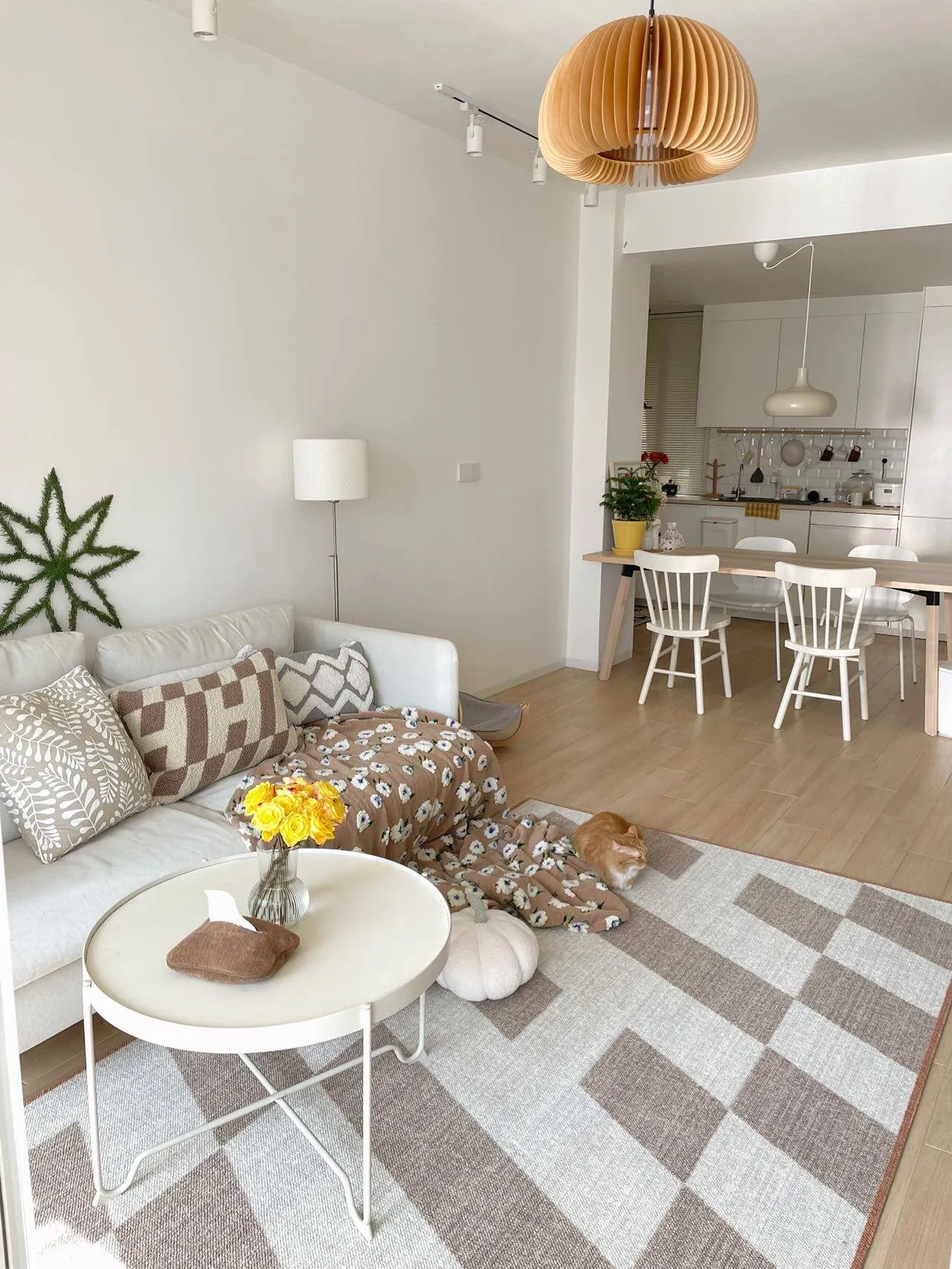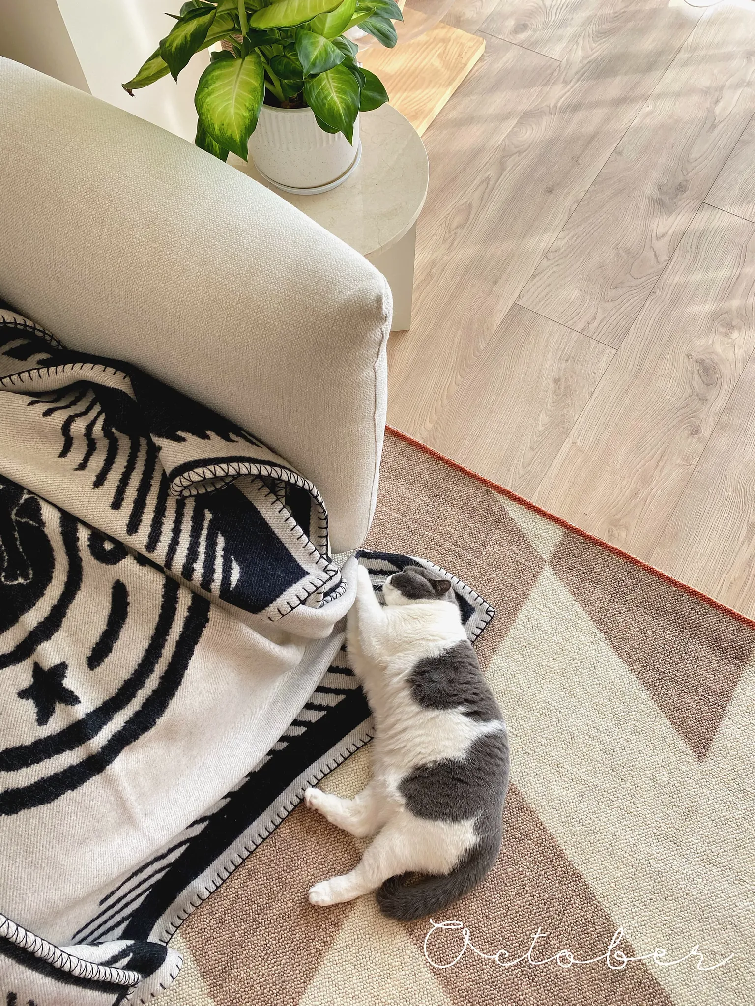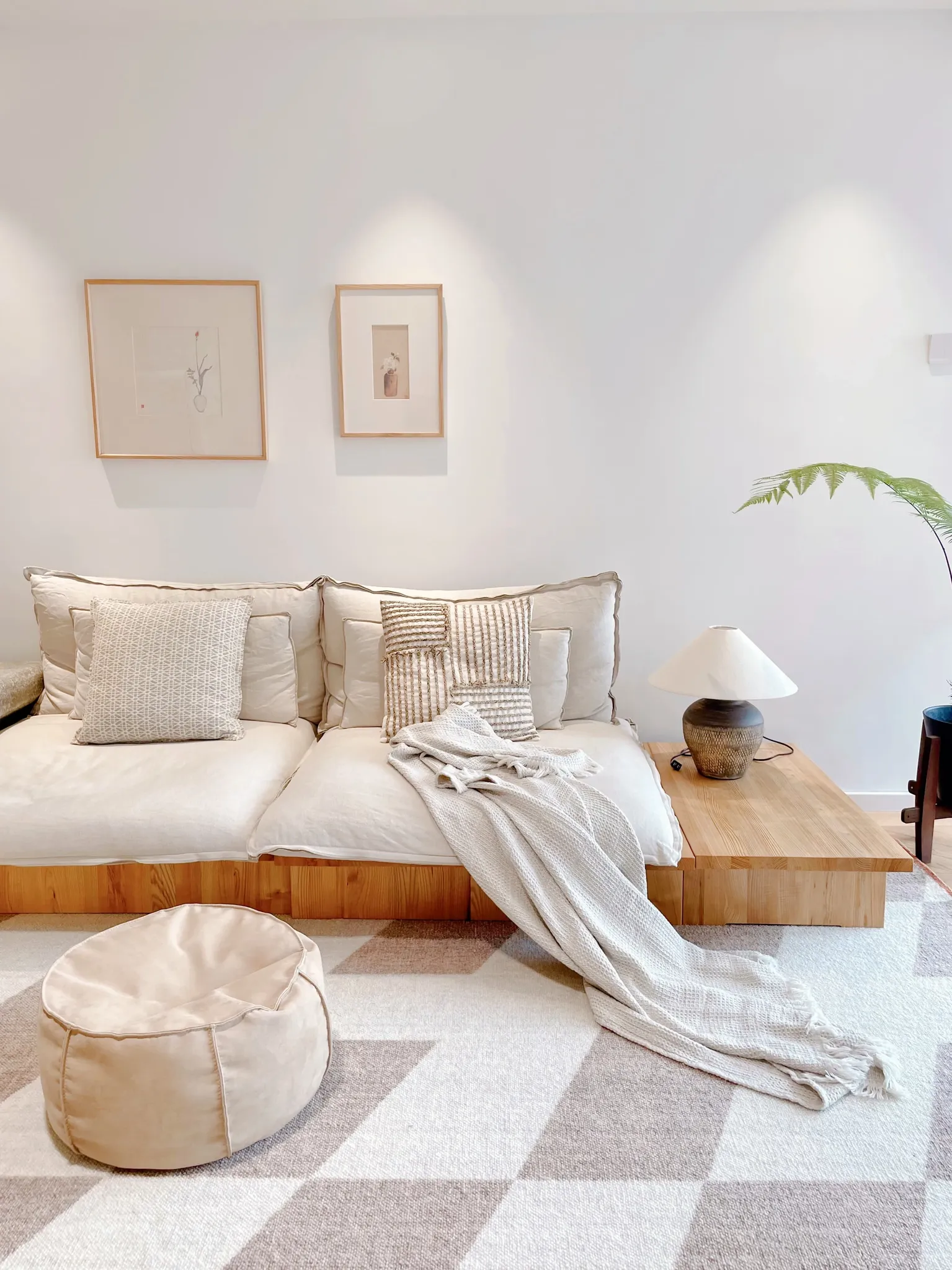 若奈 经典H en biais プレミアムクリーム色フラワータイルデザイン輸入ウールラグ - リビング・寝室にぴったりなアーストーンの魅力!