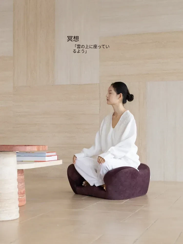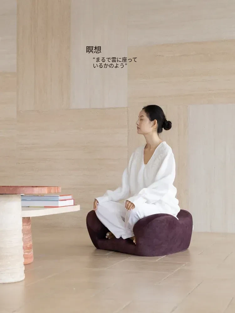 若奈の「小元宝」海葵紫色メディテーションスツール - 高反発ウレタン製、快適な座り心地でリラックス!和室やリビングにぴったりなタタミスタイルのソファチェア。