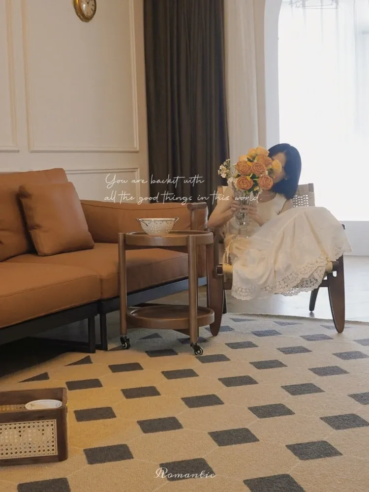 若奈ココパリアパートメントフラワータイルシリーズ輸入ウールベルギーラグ、リビングルームソファ・クローゼットにぴったり!高品質な羊毛が生み出す優雅な空間を演出します。
