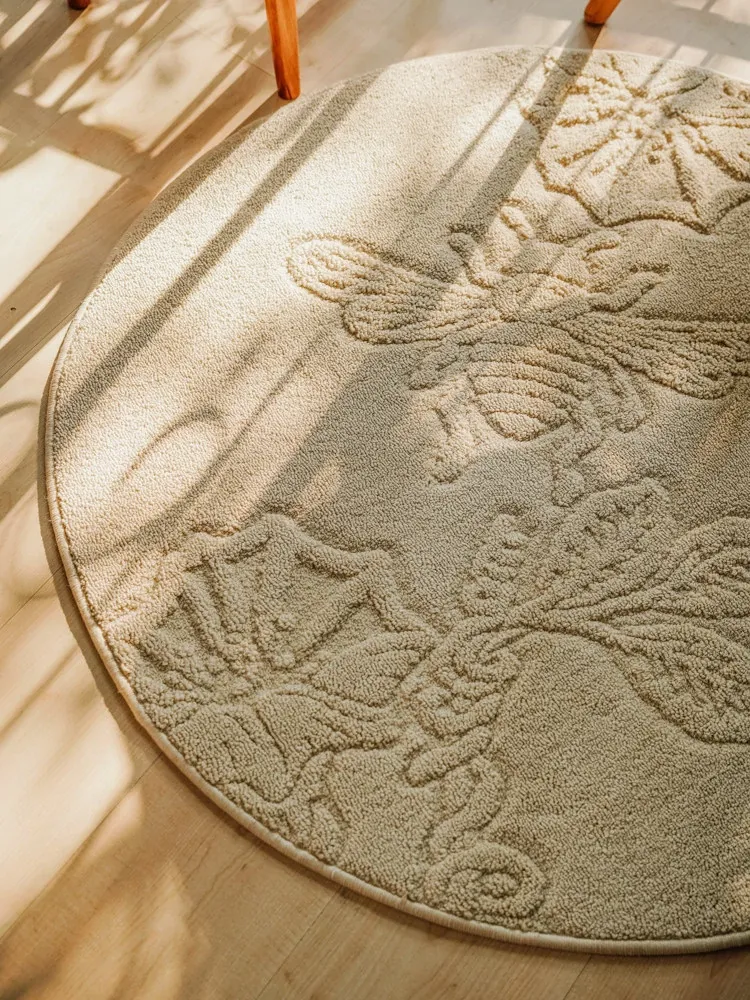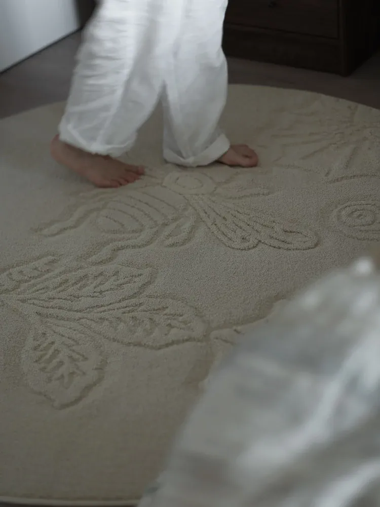 若奈 Di@r Maison 小蜜蜂立体浮雕「防水加工」ベッドサイドカーペット、丸型デザインでお部屋を華やかに演出!快適な肌触りとおしゃれなデザインで、あなたの空間を特別なものに。