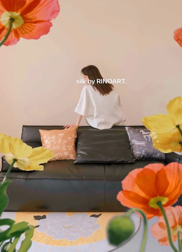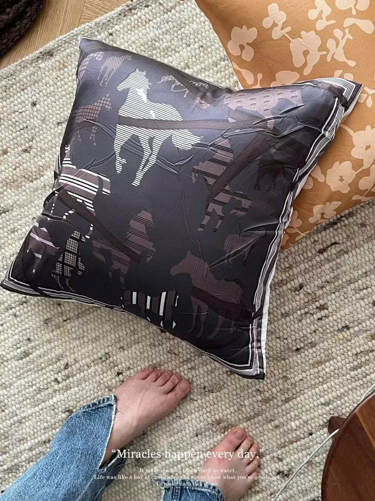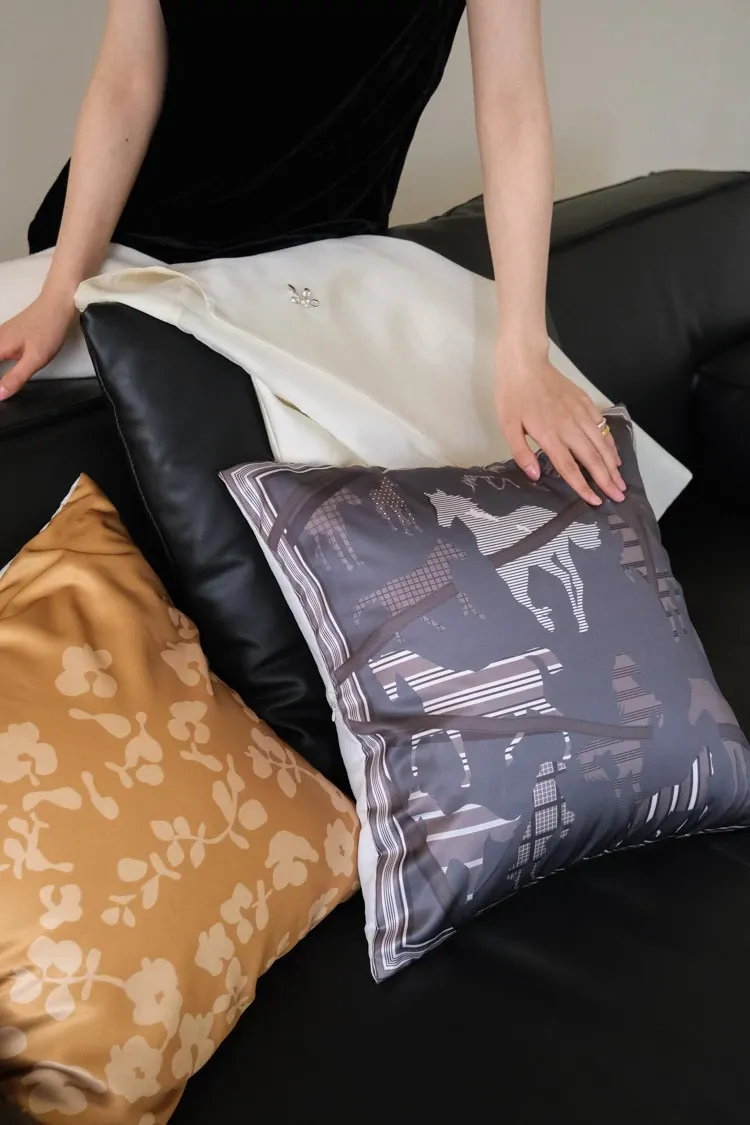 若奈 東方シルクサテン「馬踏春花」シリーズ シルクスカーフ ソファクッション ライノライフ 抱き枕セット - 優雅なデザインで、あなたの空間を華やかに彩ります!