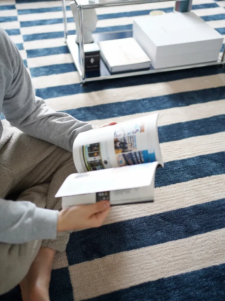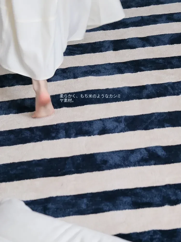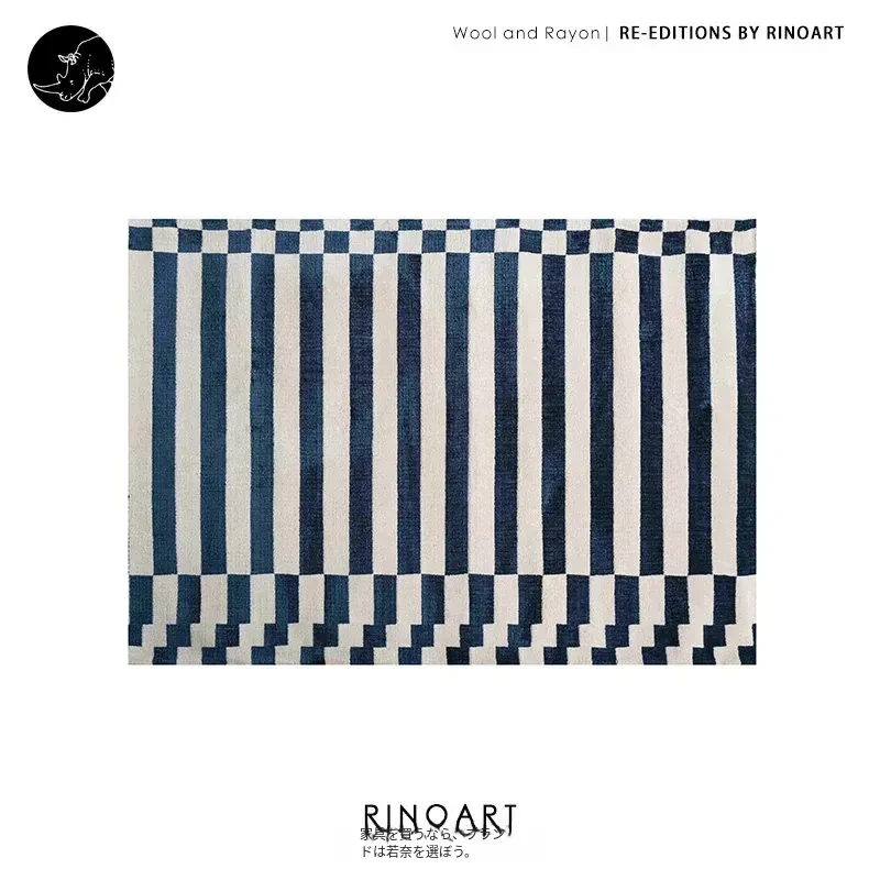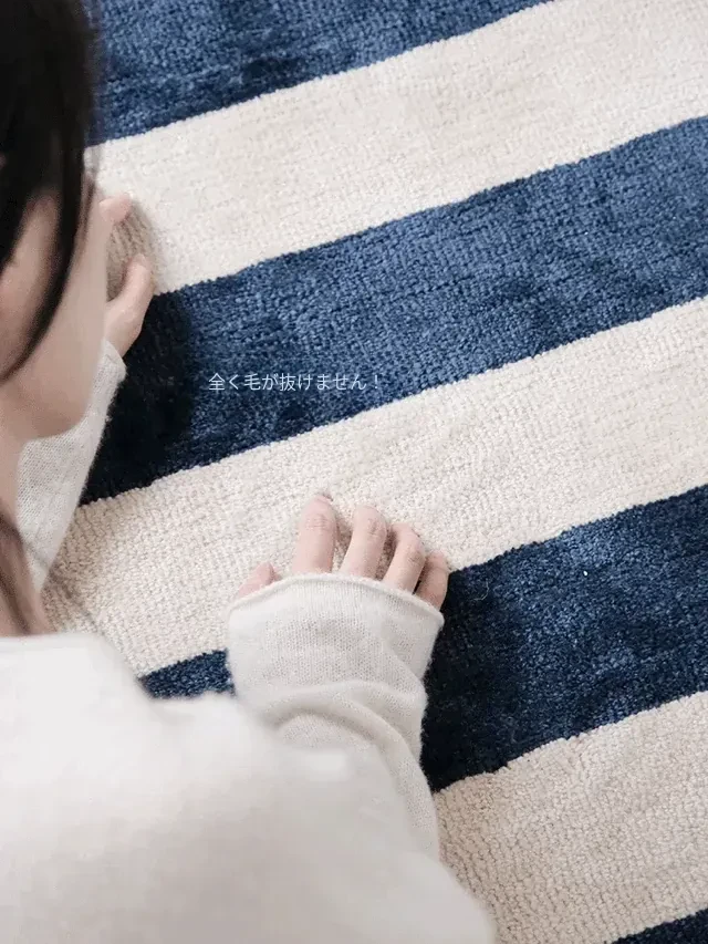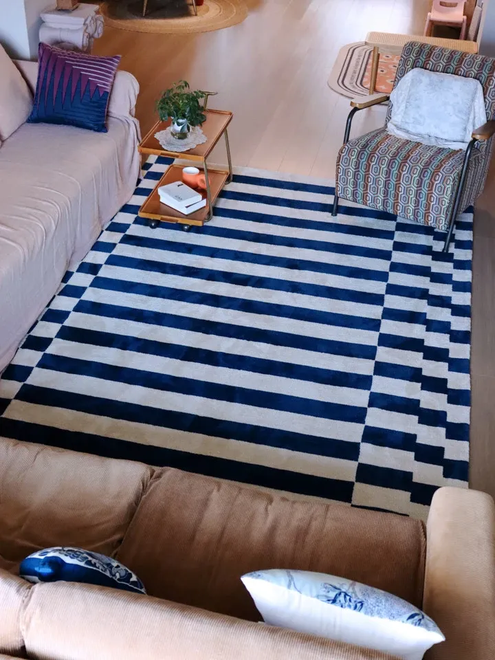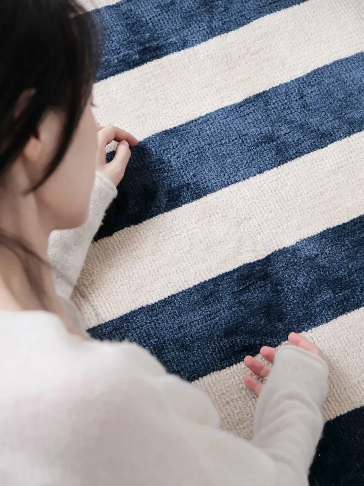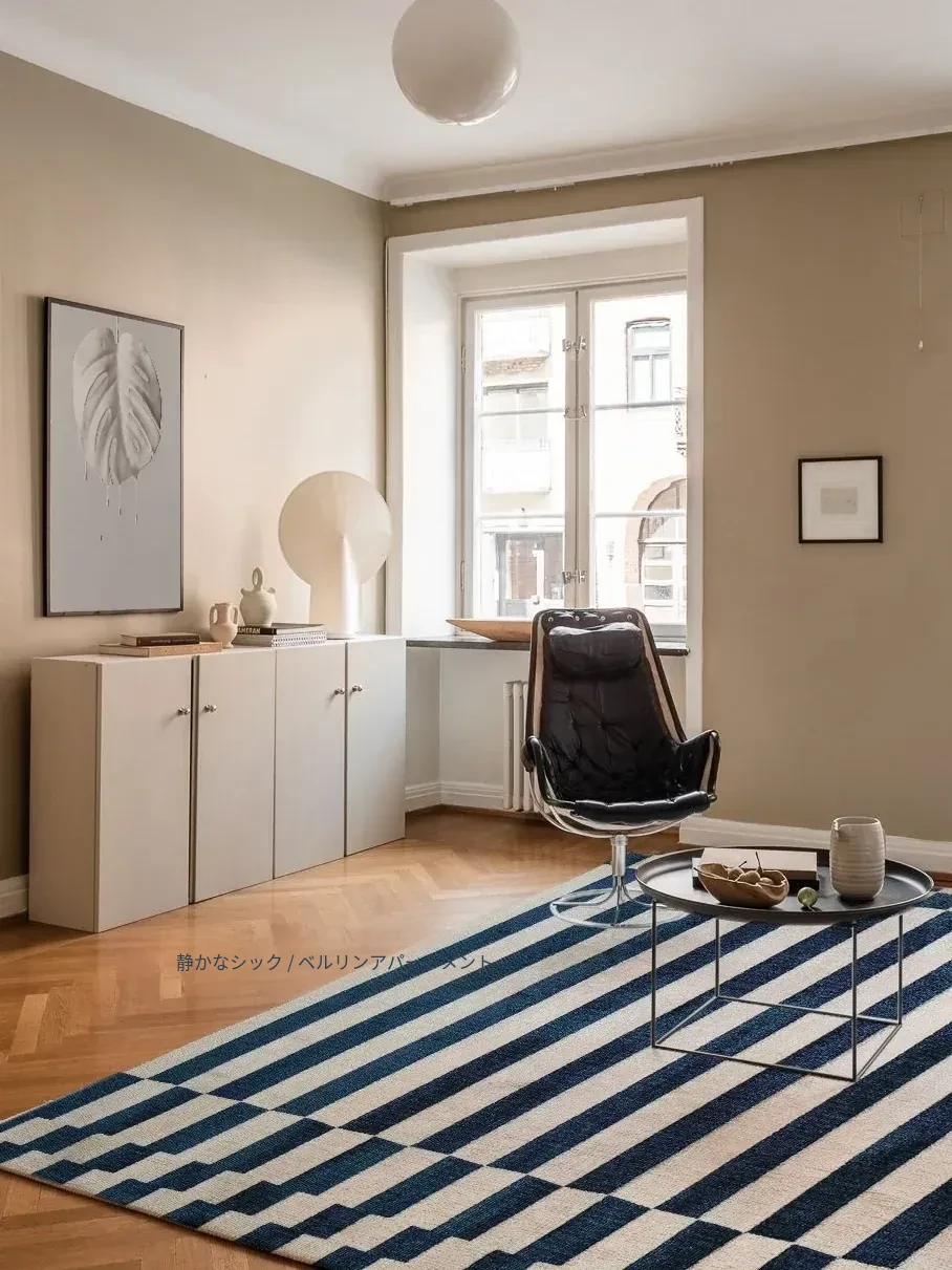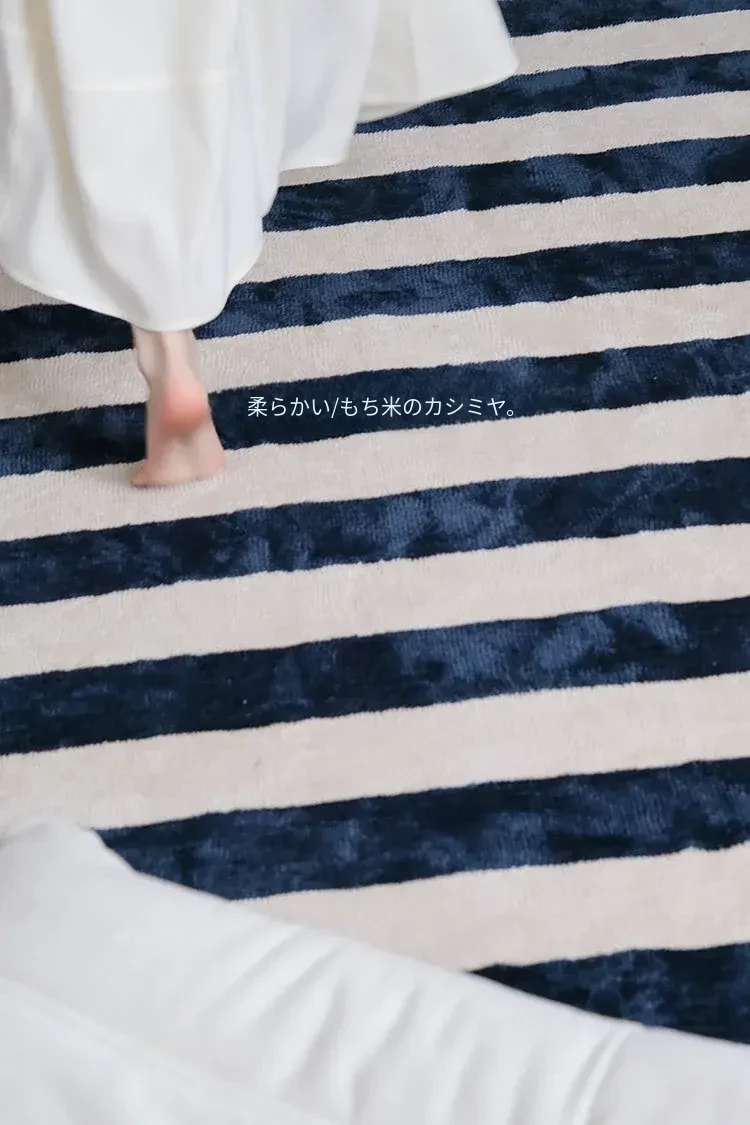 若奈 FEND* ベルリンブルー「段々高く」おしゃれストライプカーペット 四季折々使えるリビング用ラグ