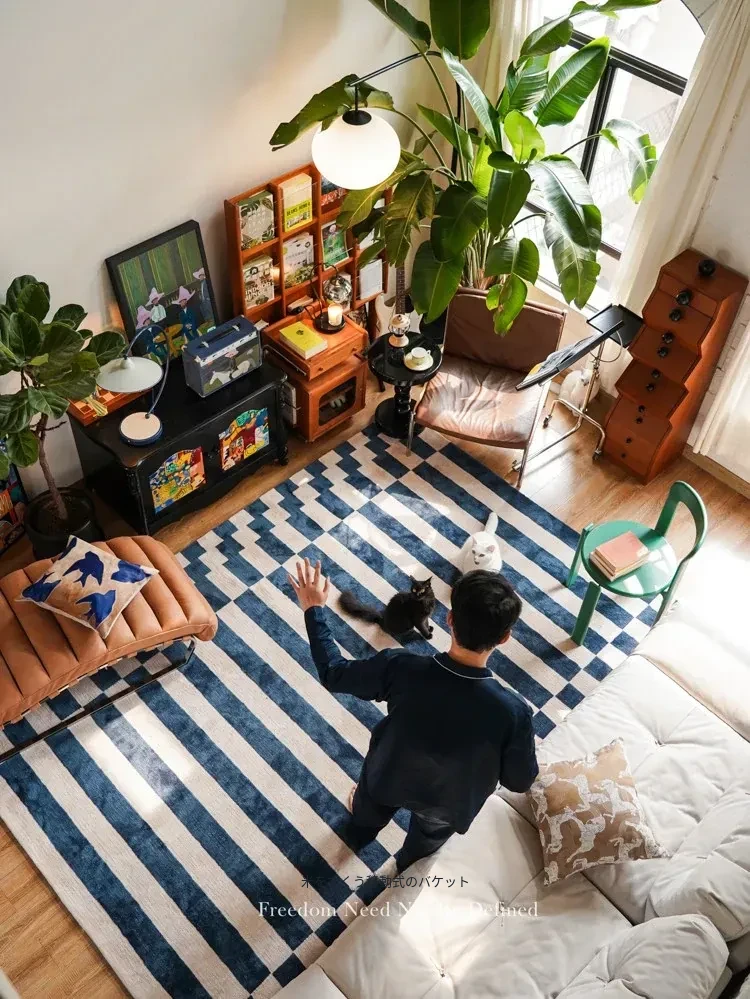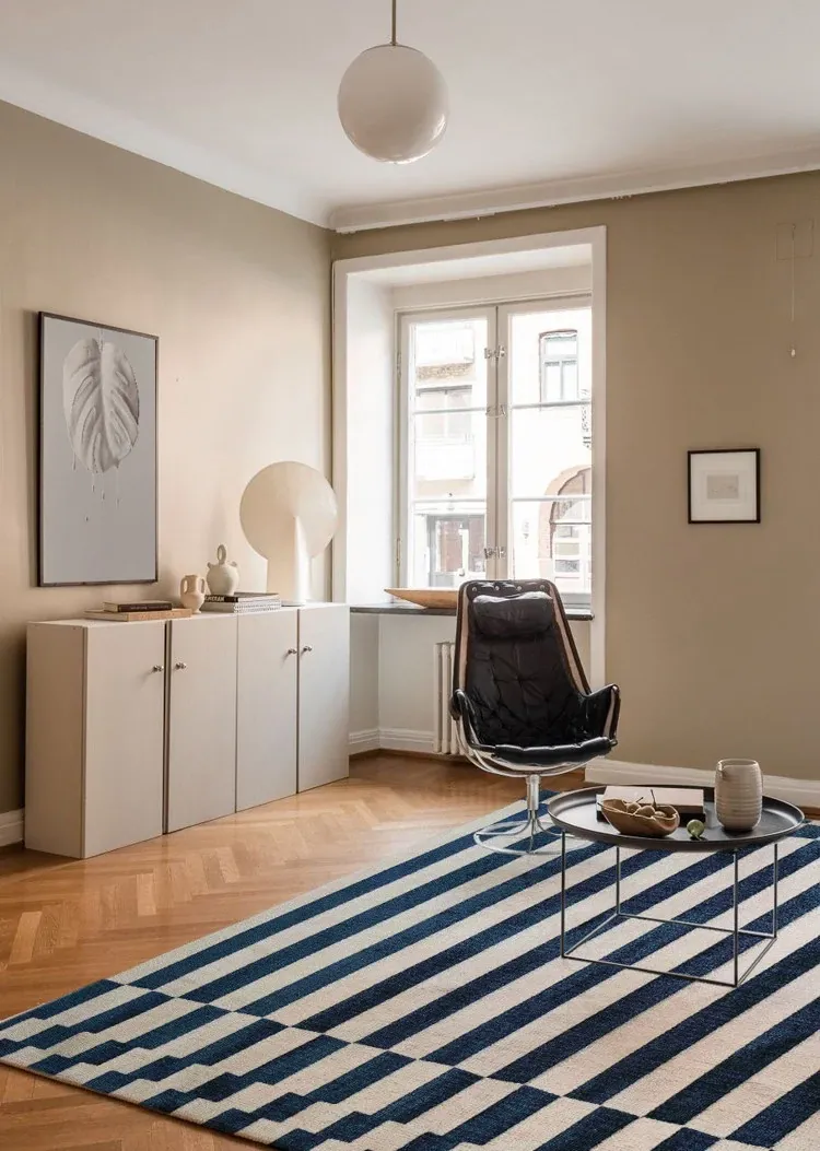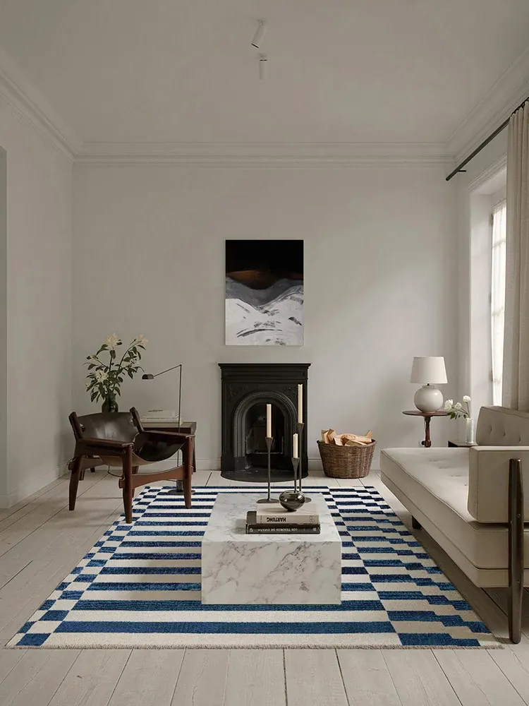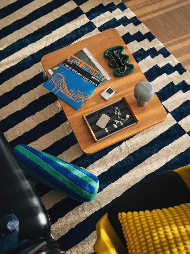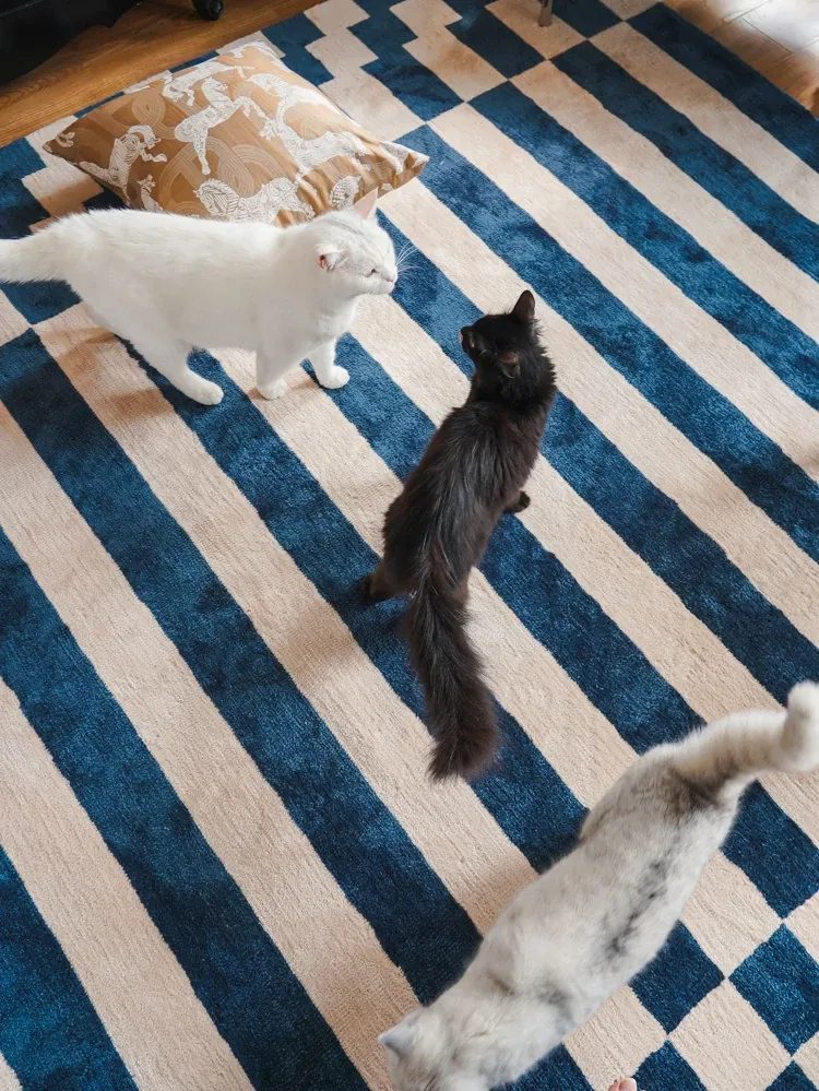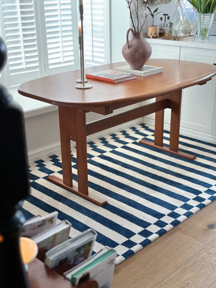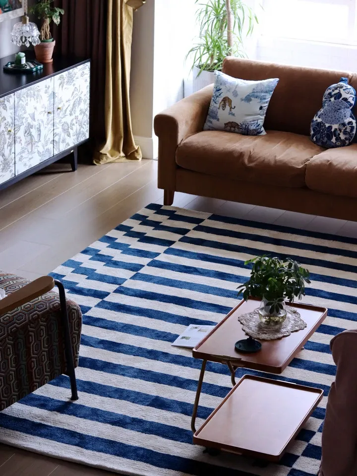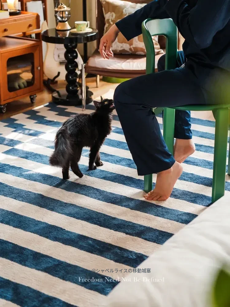若奈 FEND* ベルリンブルー「段々高く」おしゃれストライプカーペット 四季折々使えるリビング用ラグ