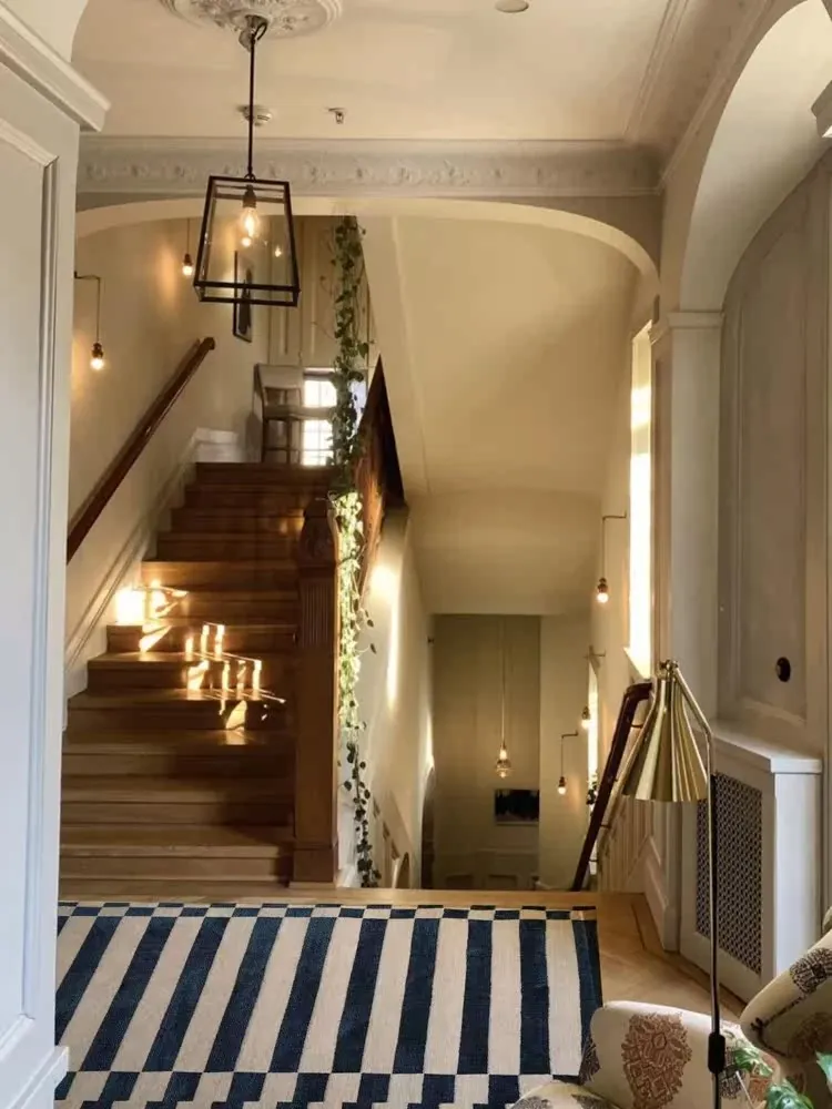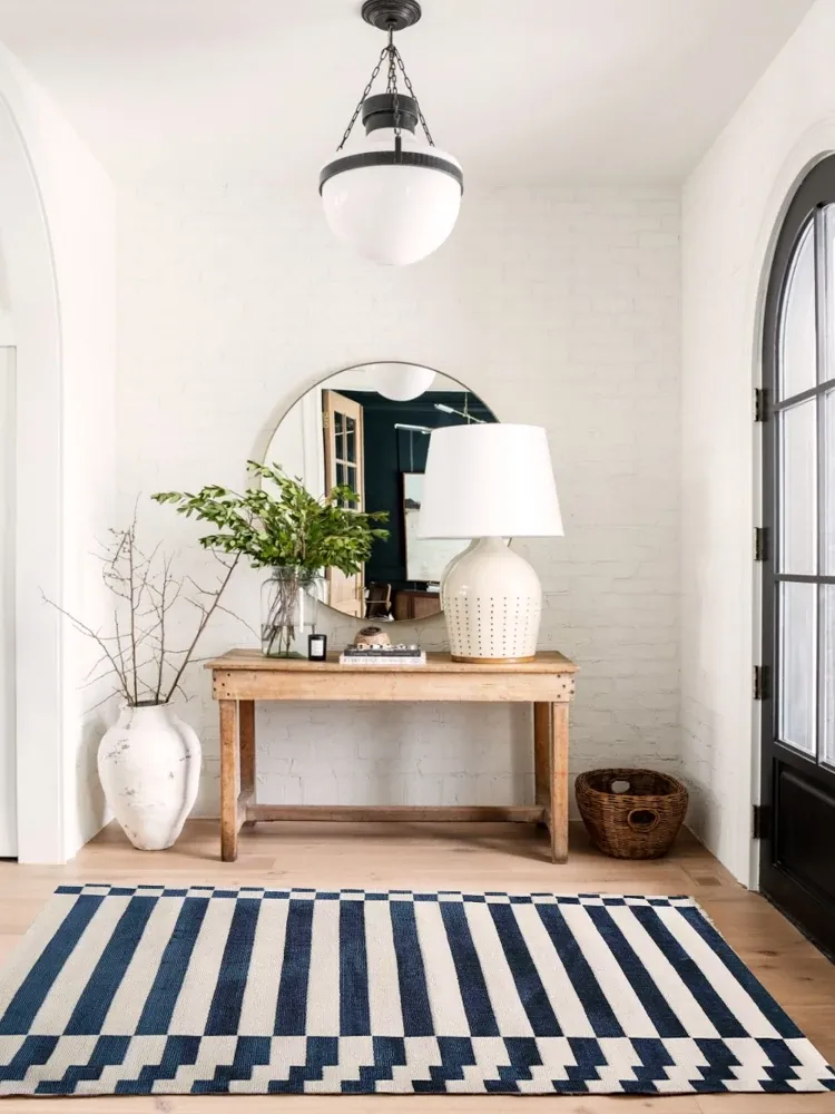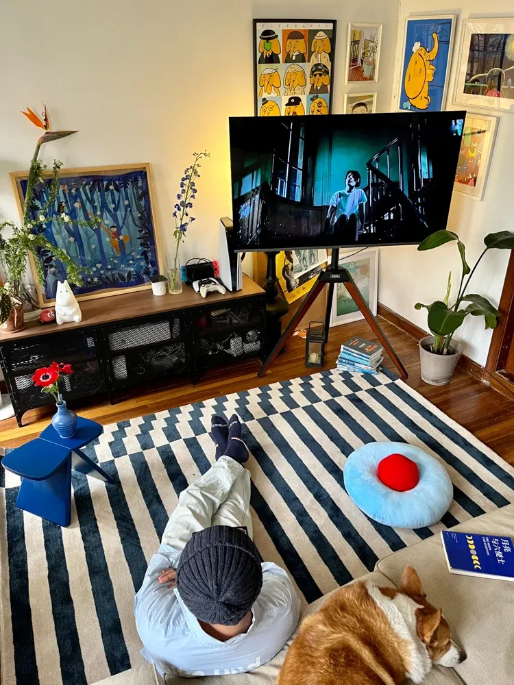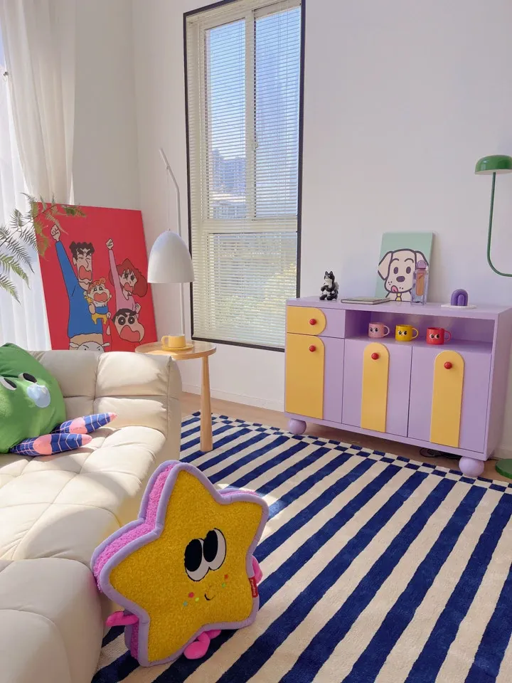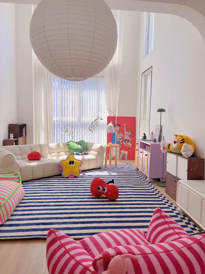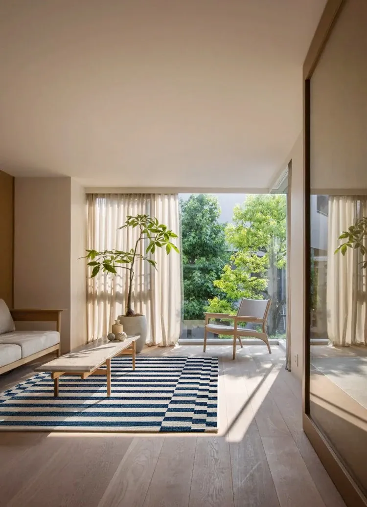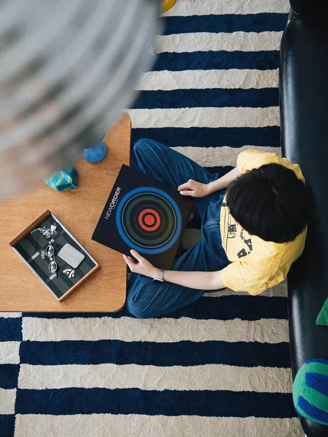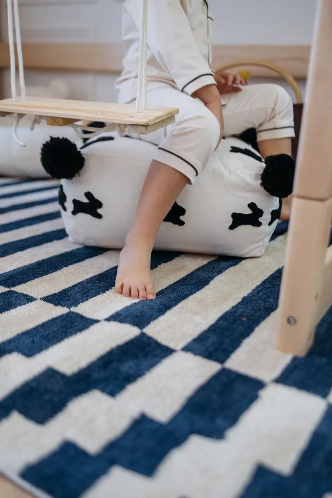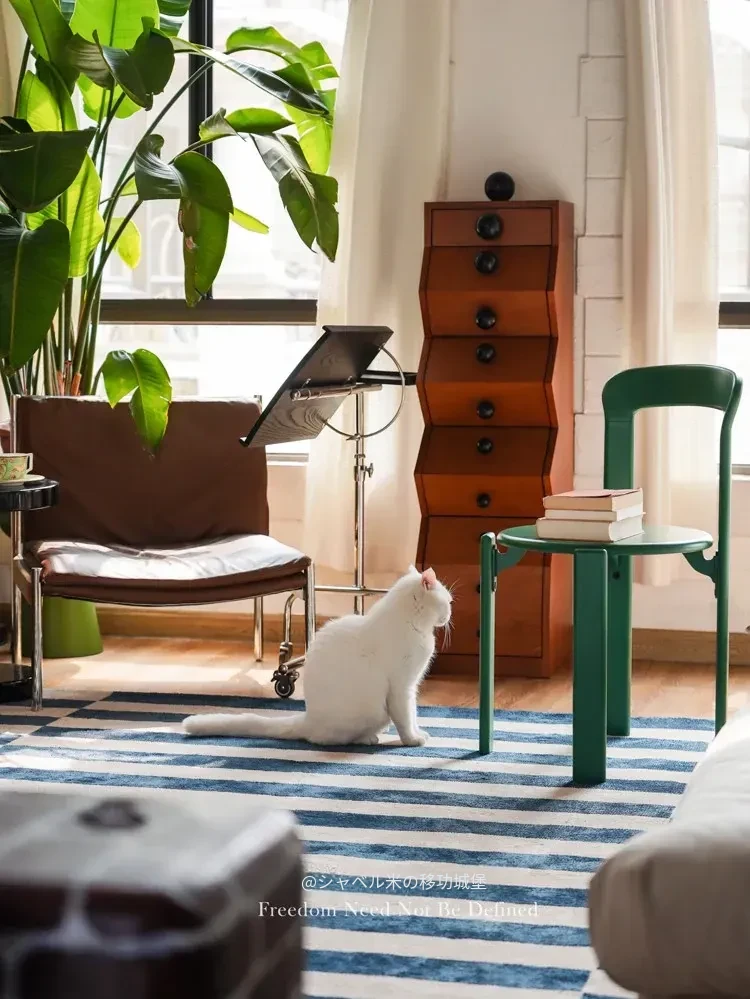 若奈 FEND* ベルリンブルー「段々高く」おしゃれストライプカーペット 四季折々使えるリビング用ラグ