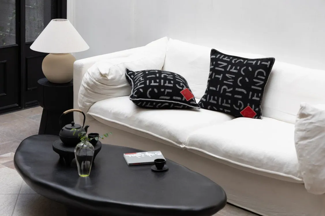 若奈の四季のカシミヤ!Byred@白芮德のオートミール/イギリスグレーのツートンカラーカシミヤウールクッション。贅沢な触り心地と洗練されたデザインで、あなたのリビングに温かさとスタイルをプラス!
