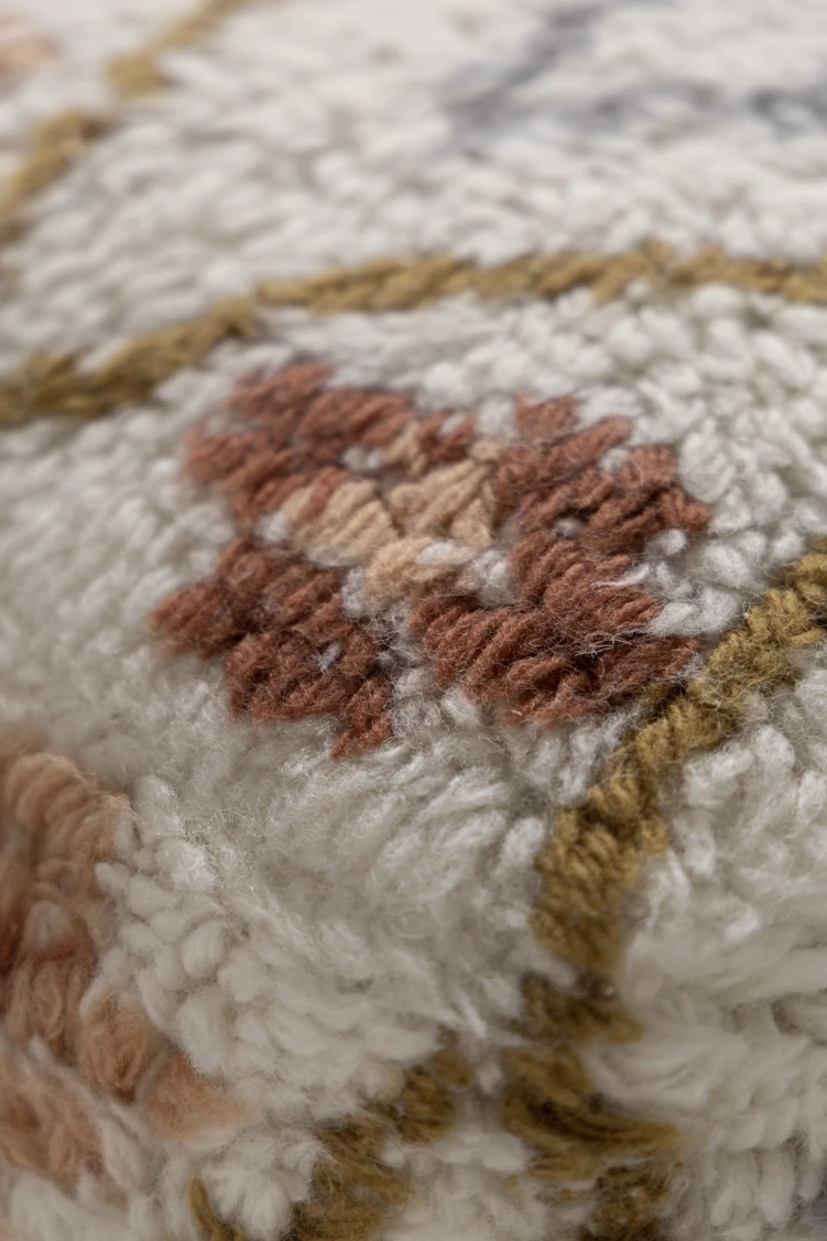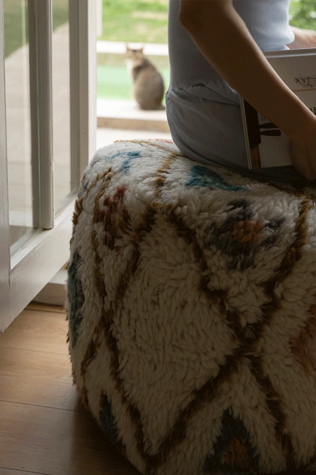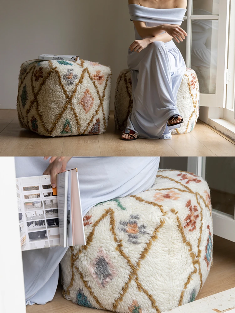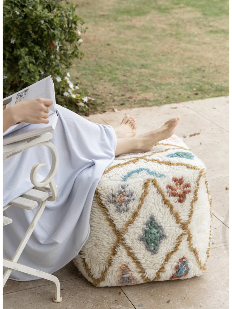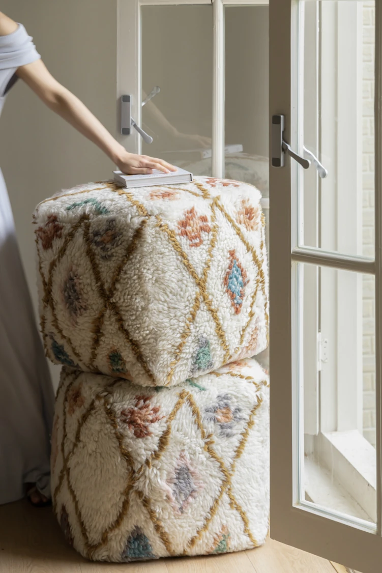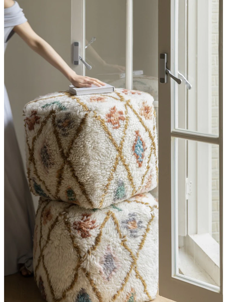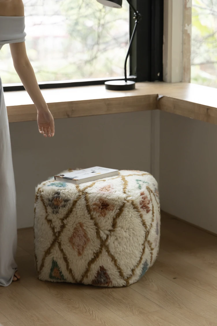 若奈のインド手織り!%ニュージーランドウールのフェアアイランド模様のクッション、リビングや玄関、寝室にぴったりの魅力的なアイテム!