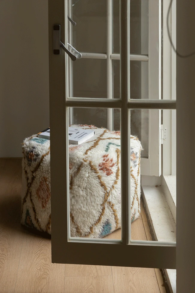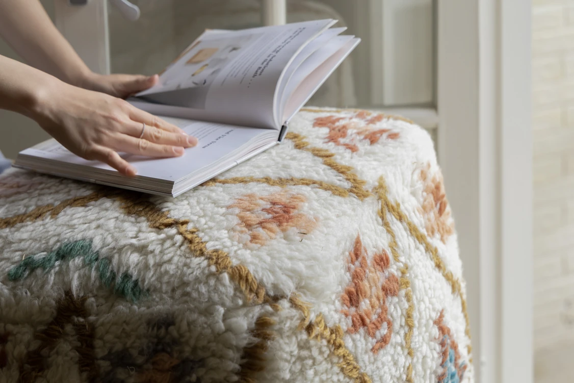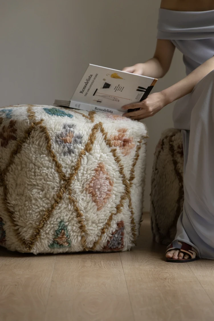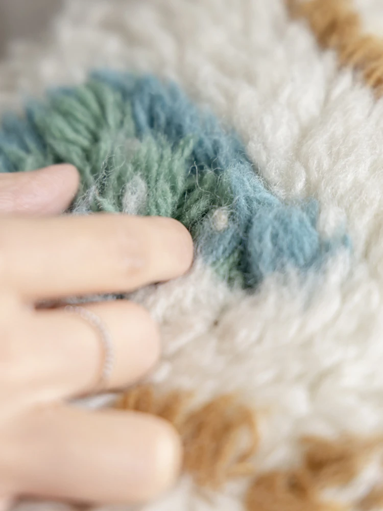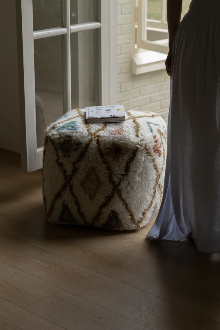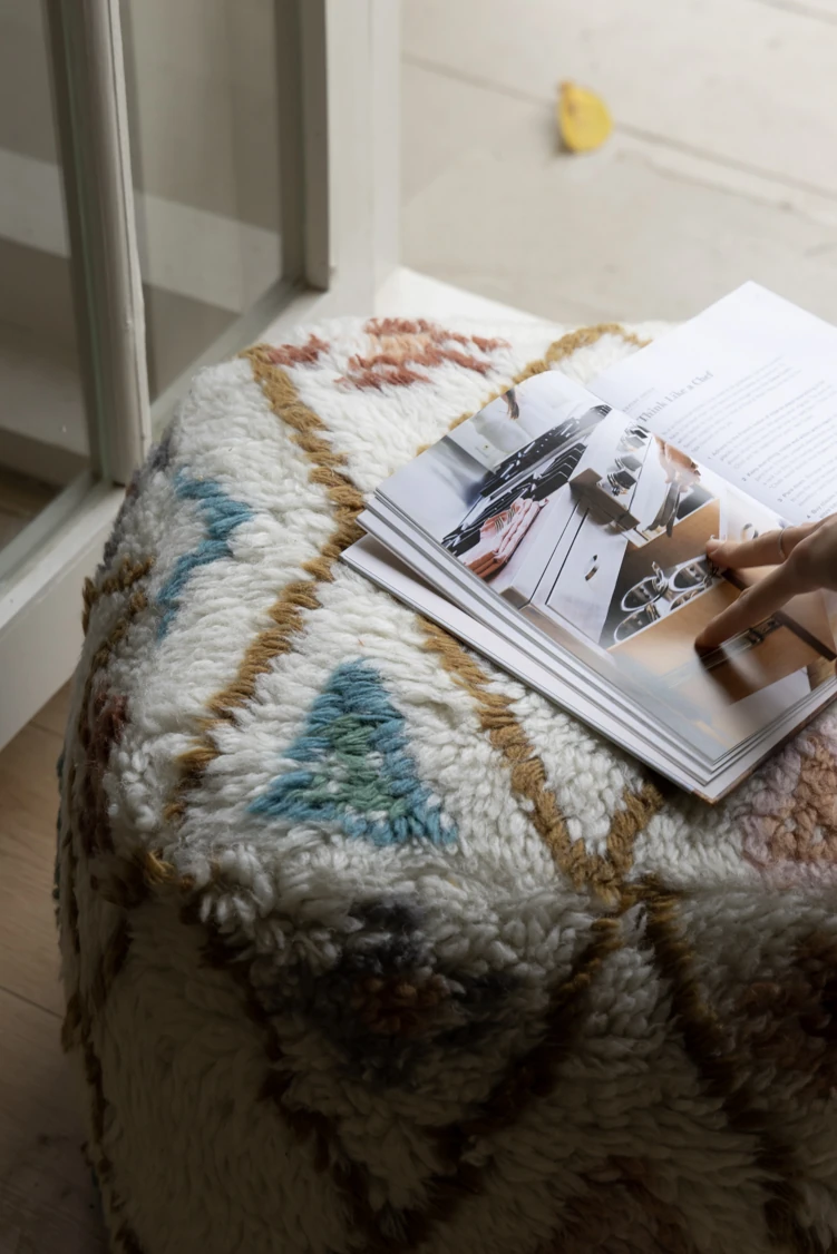 若奈のインド手織り!%ニュージーランドウールのフェアアイランド模様のクッション、リビングや玄関、寝室にぴったりの魅力的なアイテム!