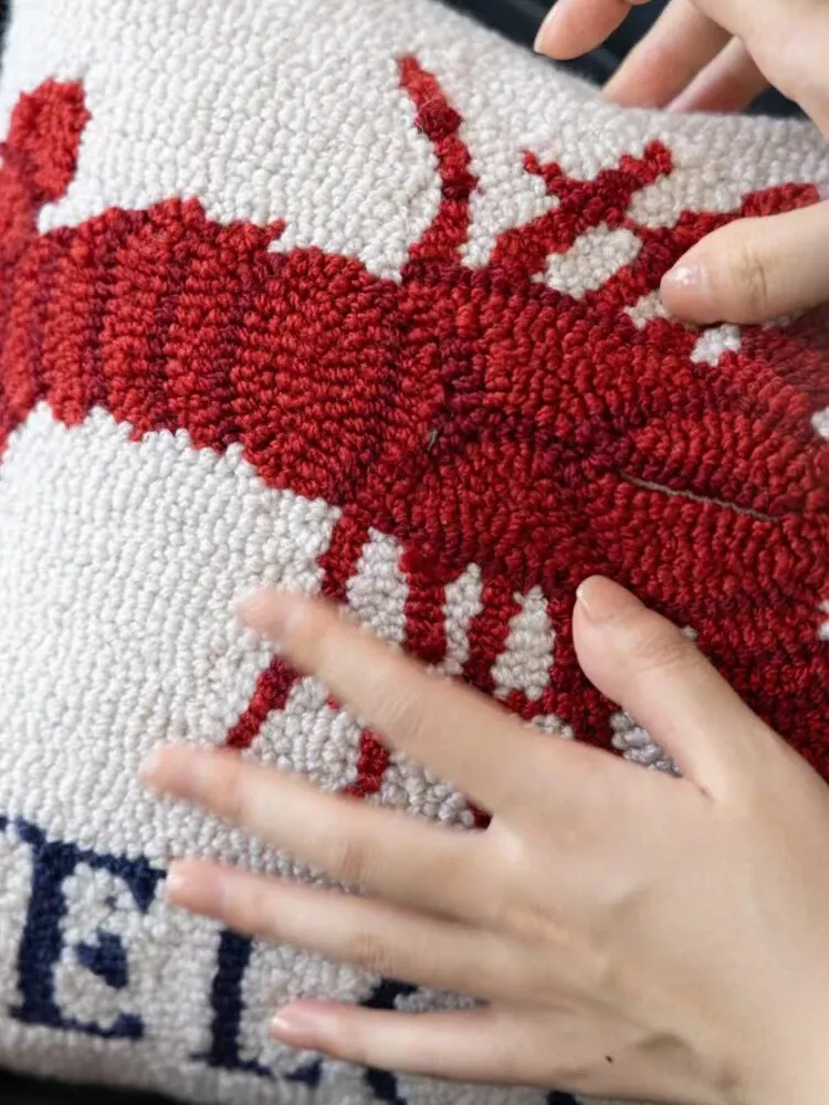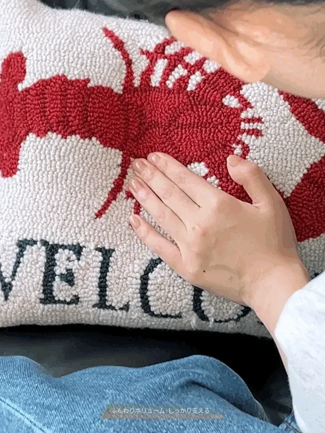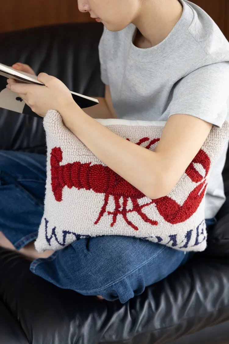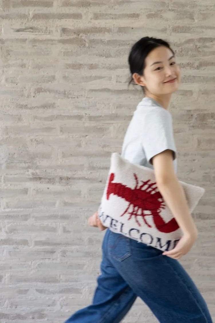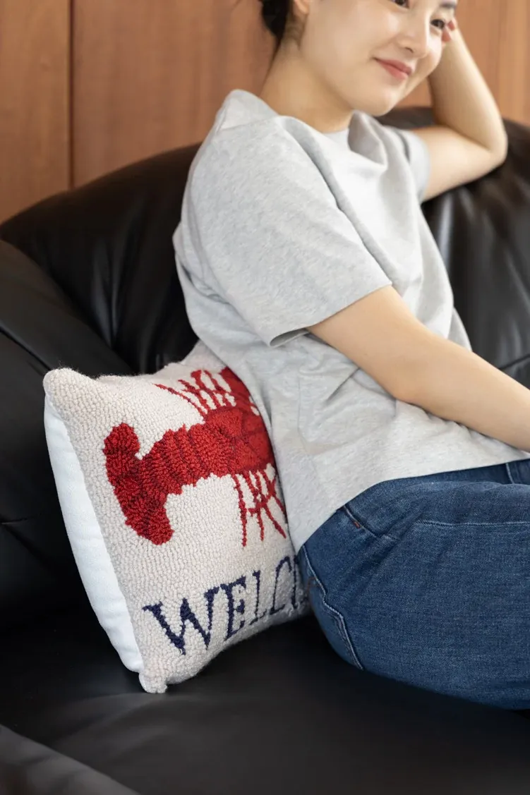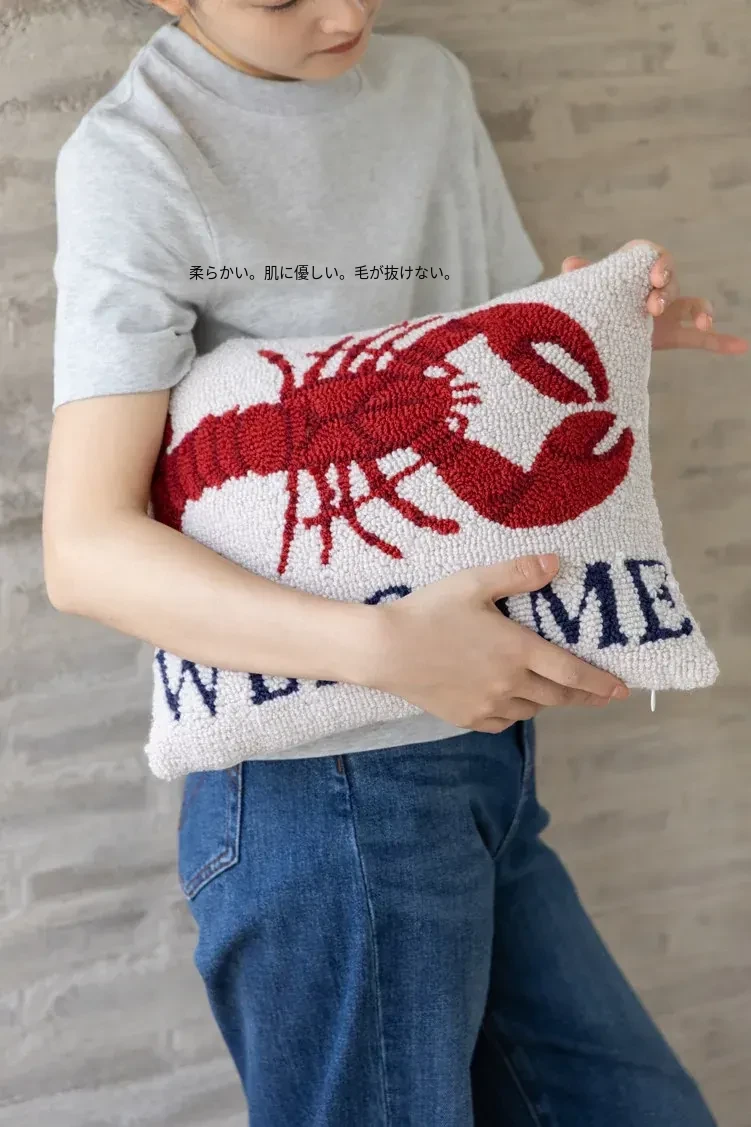 若奈ホーム Schiap@relli 手刺繍「ロブスター・ミスター」クッション 腰枕 洗える抱き枕でおしゃれな空間を演出!