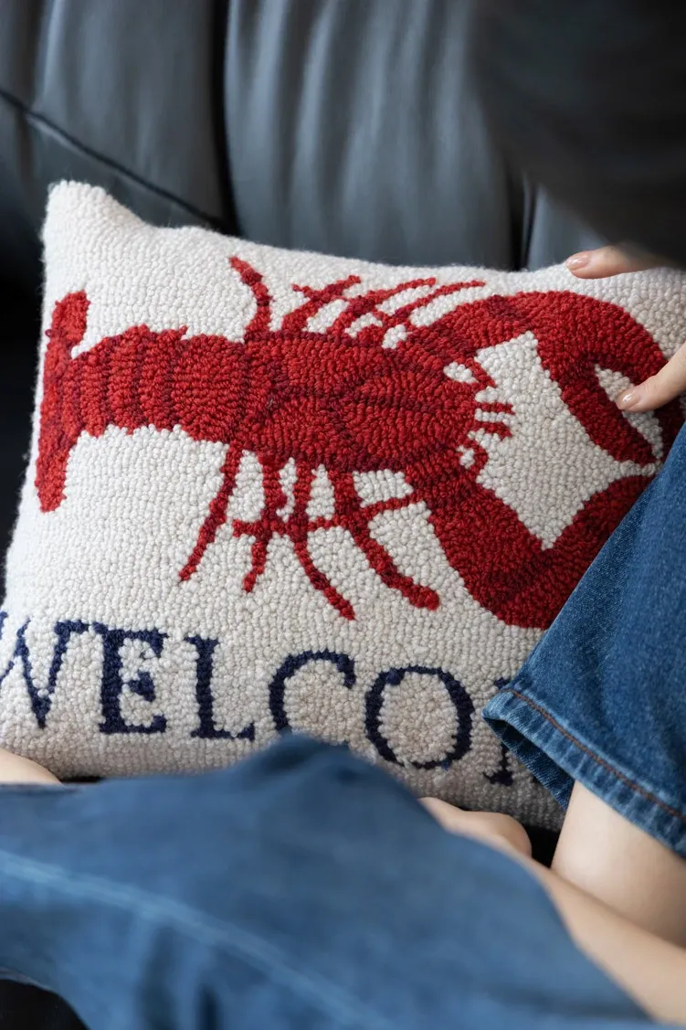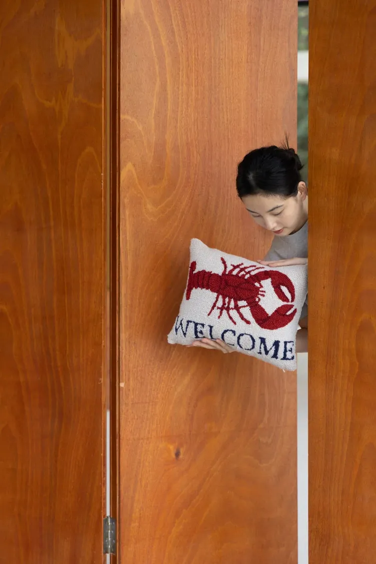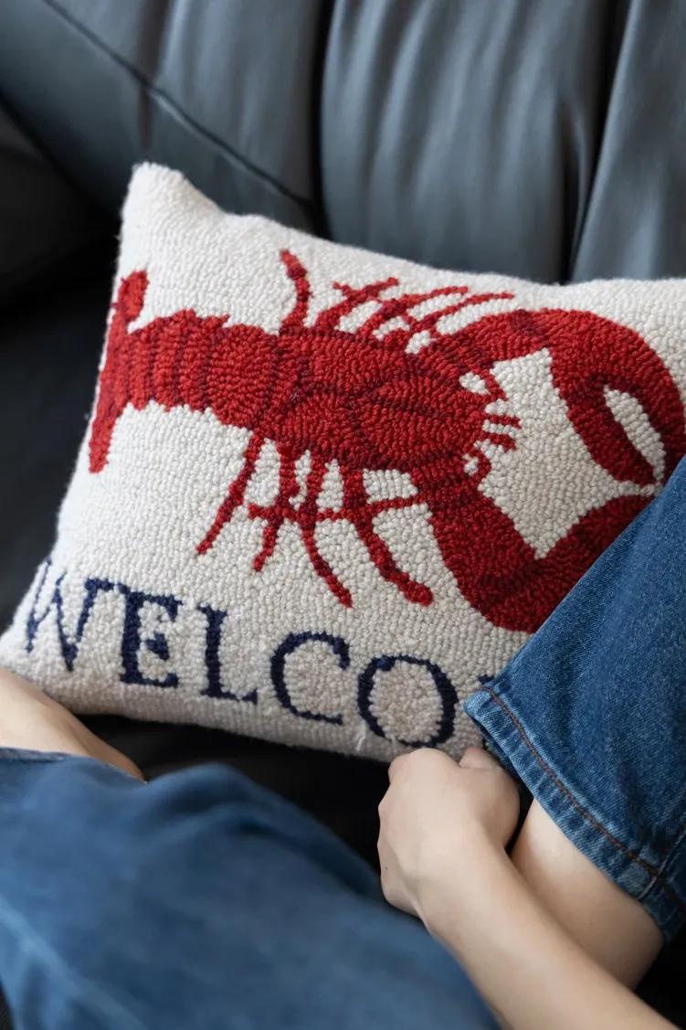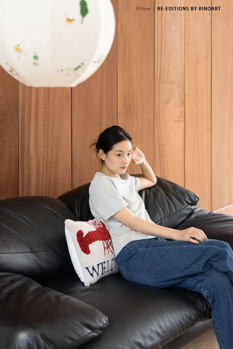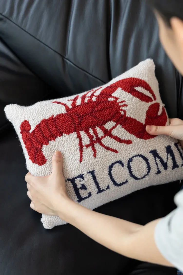 若奈ホーム Schiap@relli 手刺繍「ロブスター・ミスター」クッション 腰枕 洗える抱き枕でおしゃれな空間を演出!