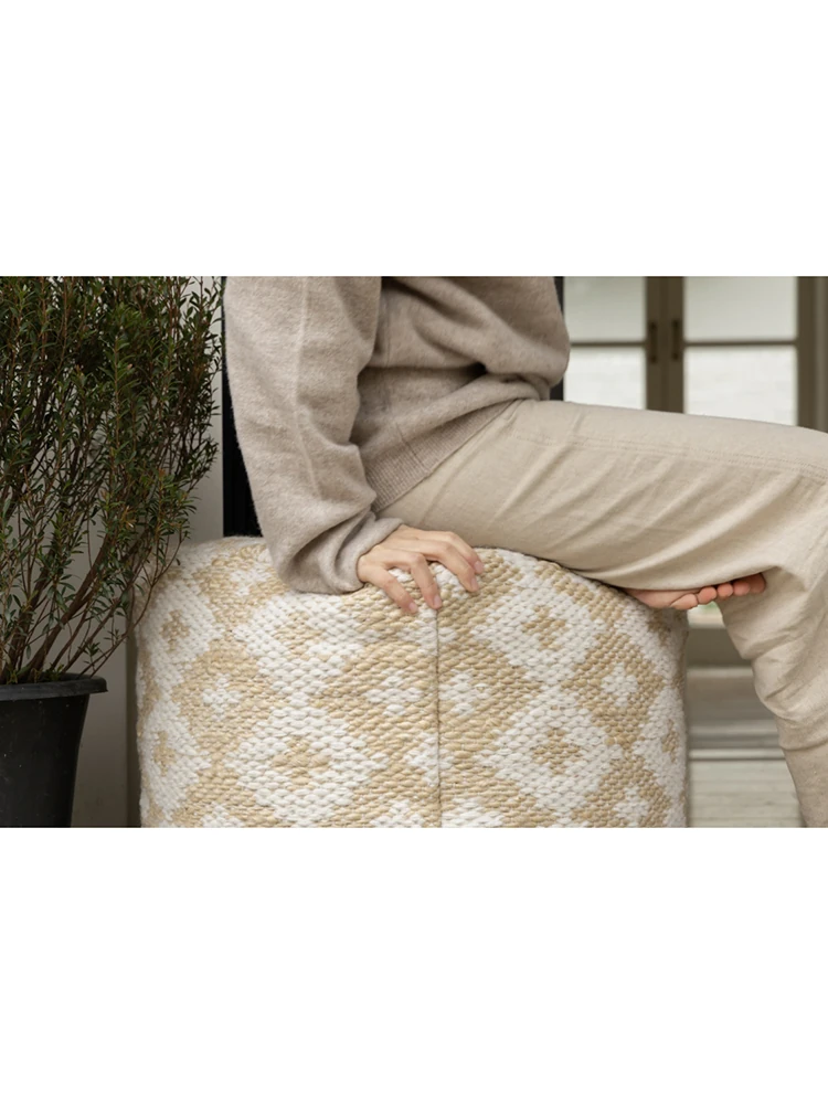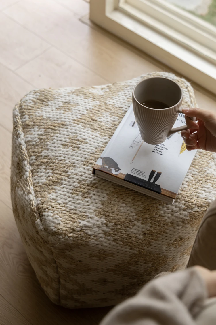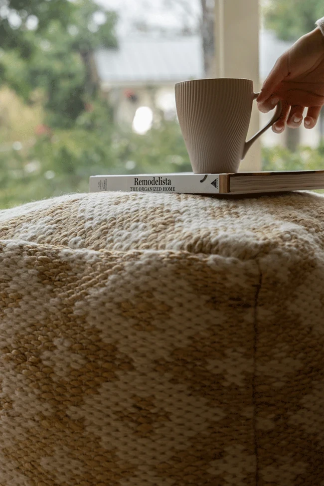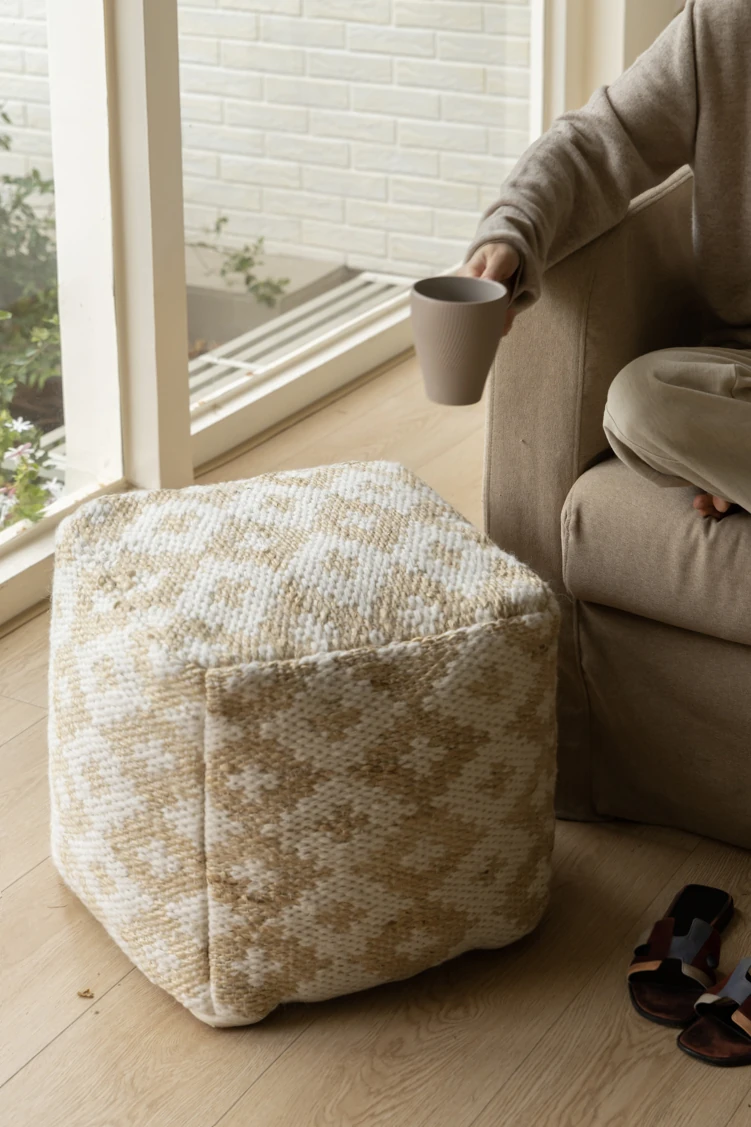 若奈の家庭珍品!ニュージーランド産ウールとジュートのダイヤモンド模様の取り外し可能なスツール・シューズチェンジ用オットマンで、快適さとスタイルを両立!