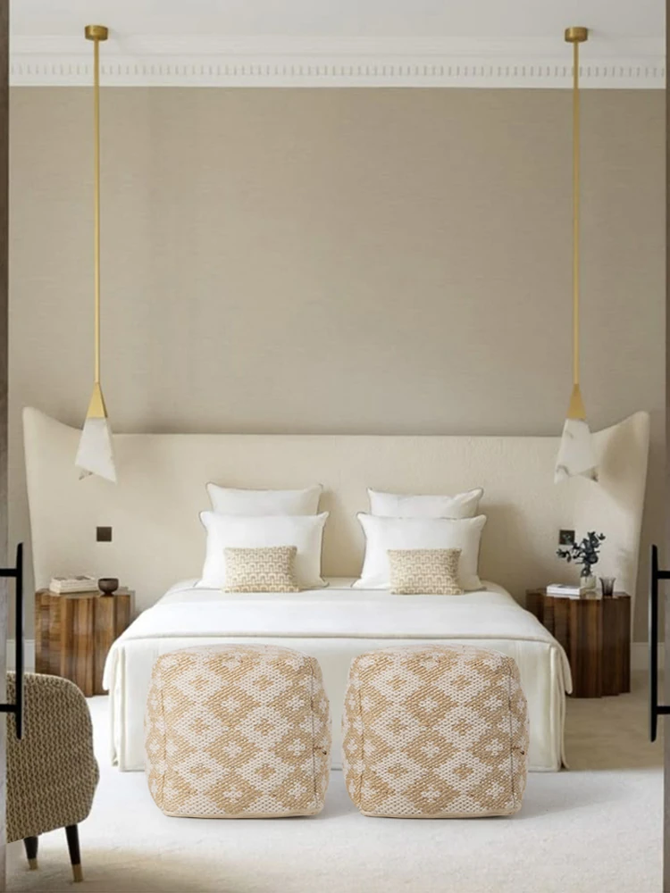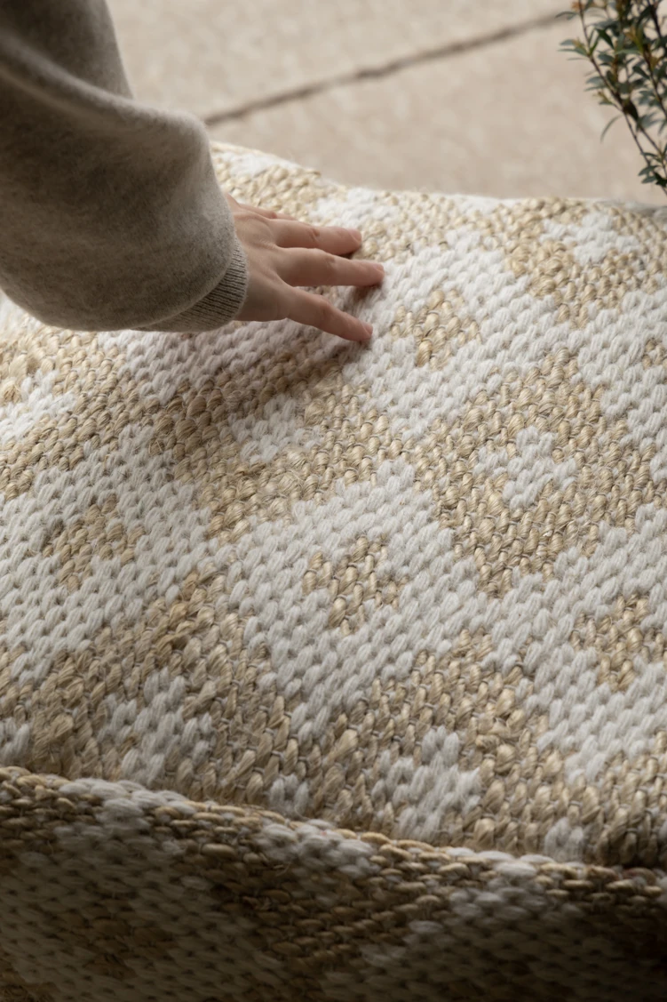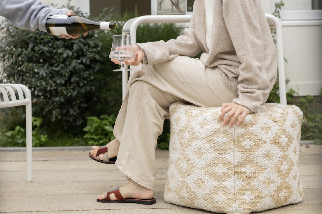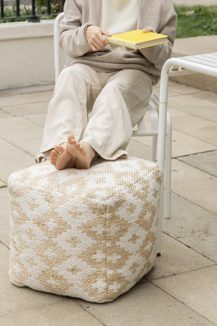 若奈の家庭珍品!ニュージーランド産ウールとジュートのダイヤモンド模様の取り外し可能なスツール・シューズチェンジ用オットマンで、快適さとスタイルを両立!