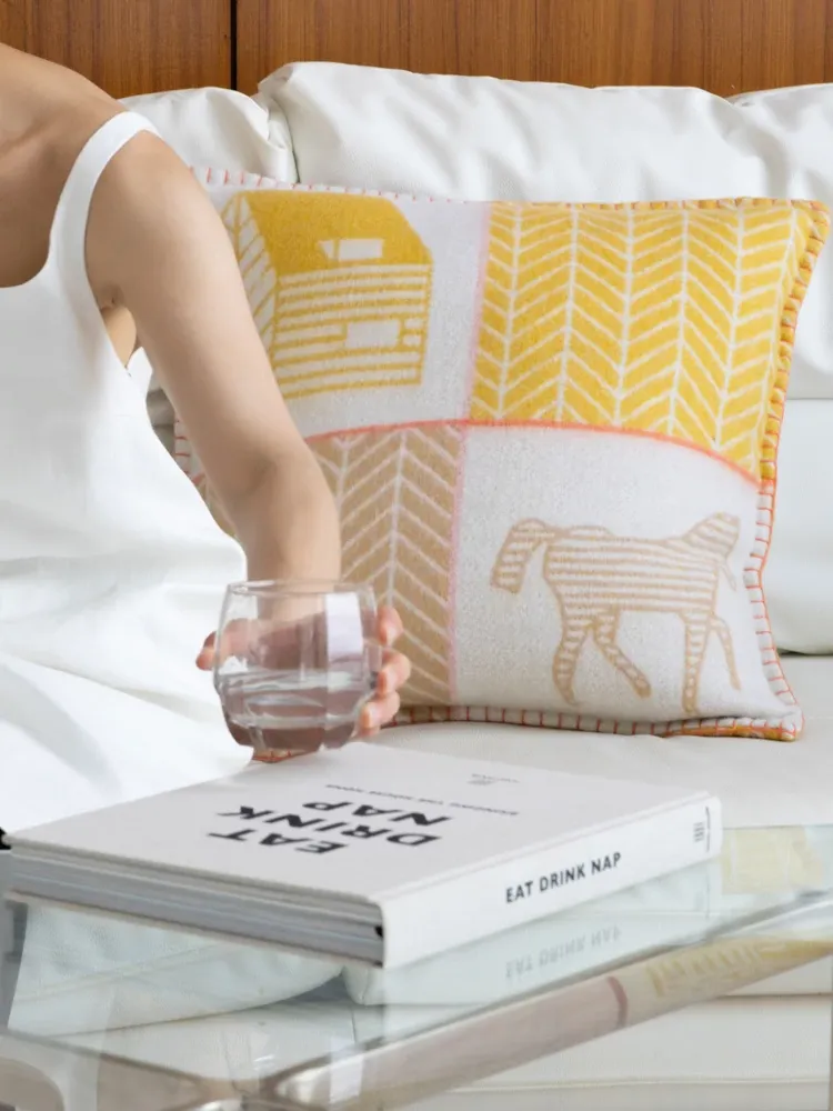 若奈H@rmes「庄园紋章」天然ラムウール&カシミヤクッション(中身付き)|四季折々に使えるカラフルな抱き枕で、心地よい眠りをお届けします!