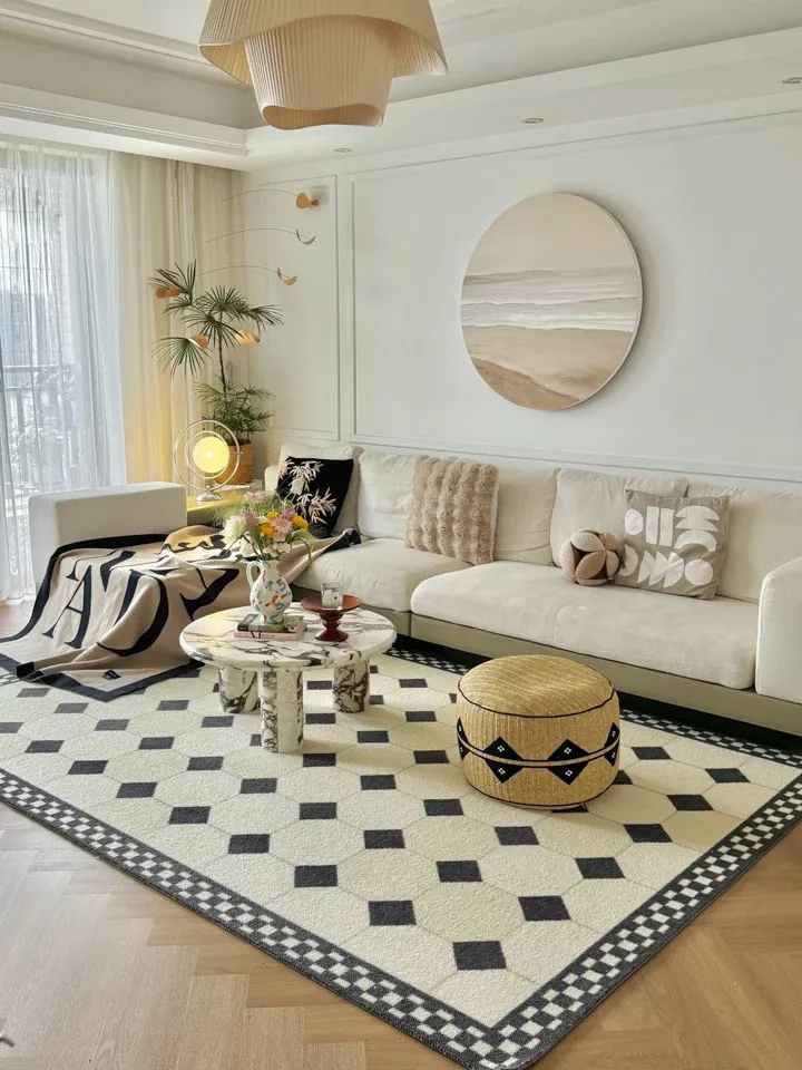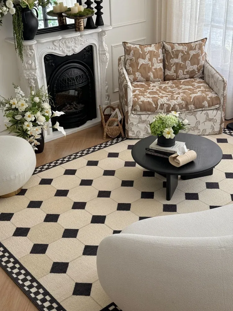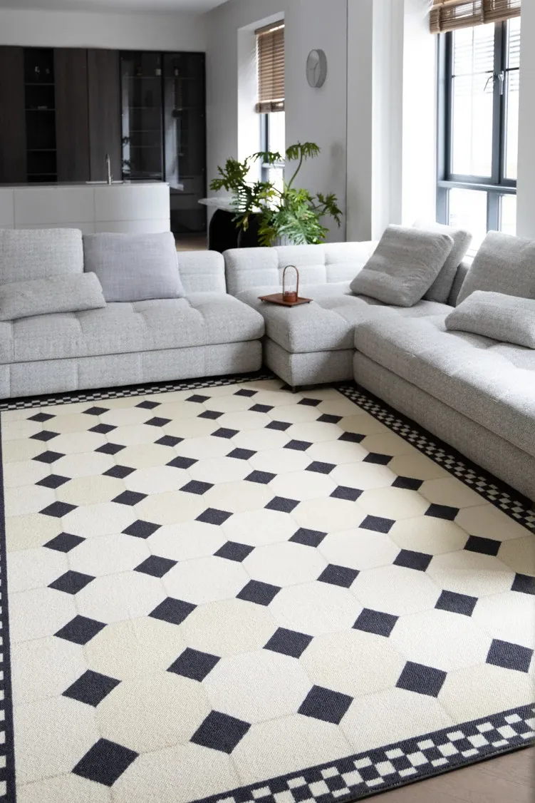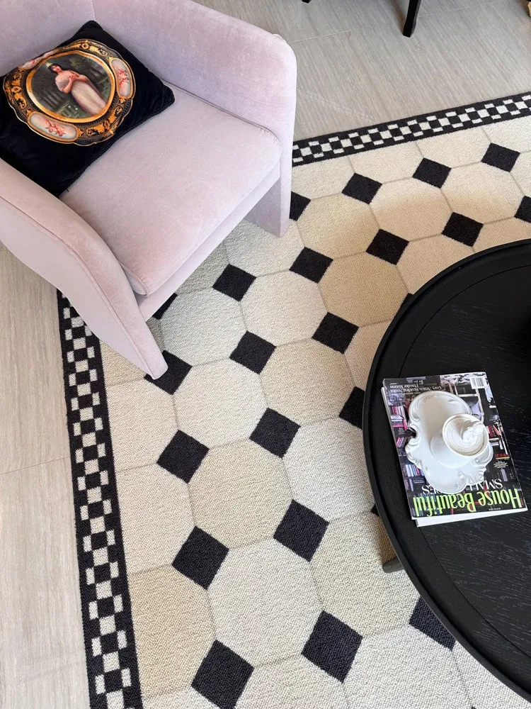 若奈 インポートウールカーペット / ヴィクトリアンレトロモザイクタイルカーペット - 高級感溢れるデザインで、どんなインテリアにもぴったりフィット!心地よい肌触りと温かさをお楽しみください。